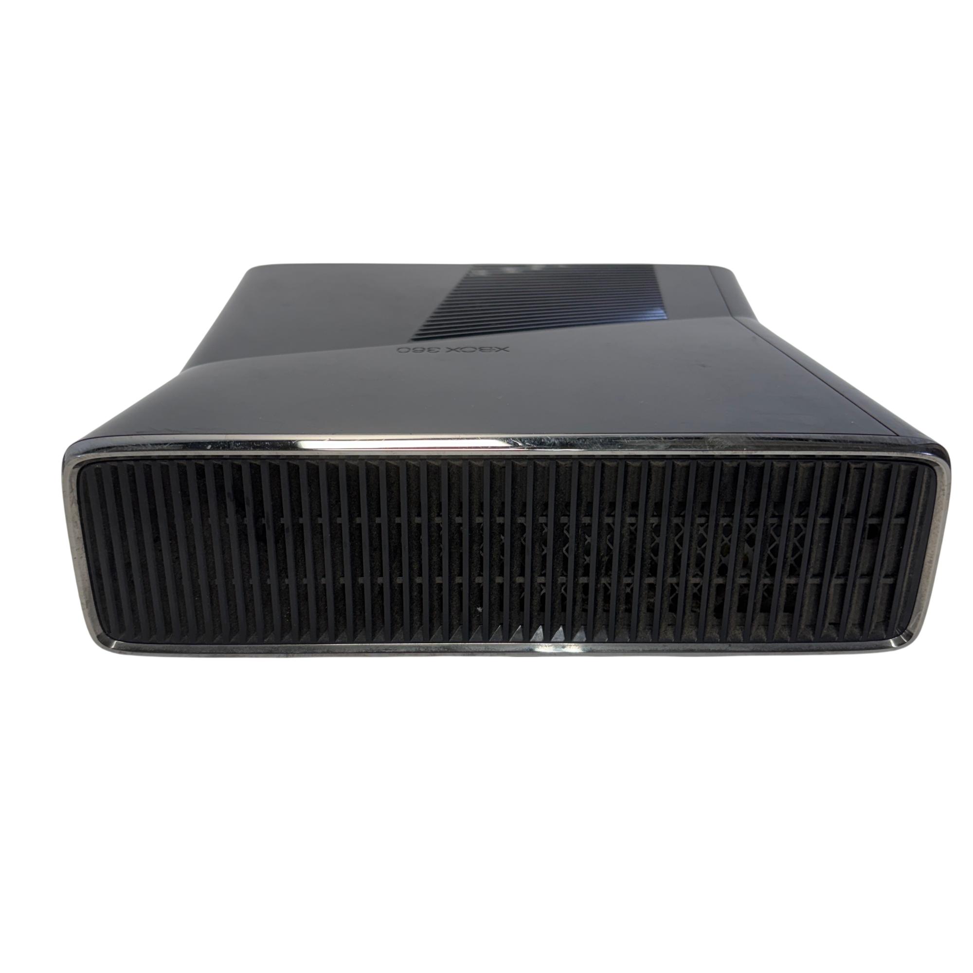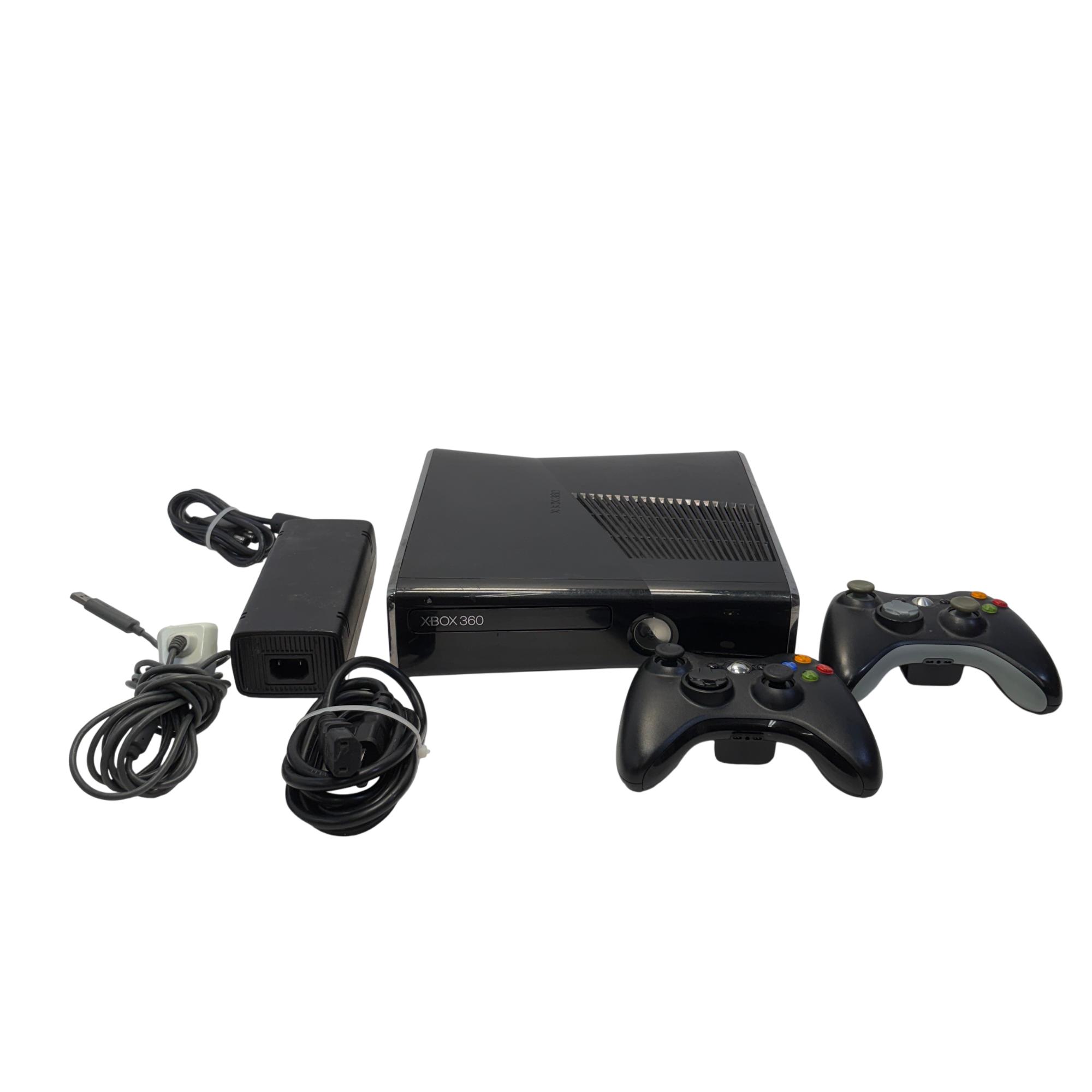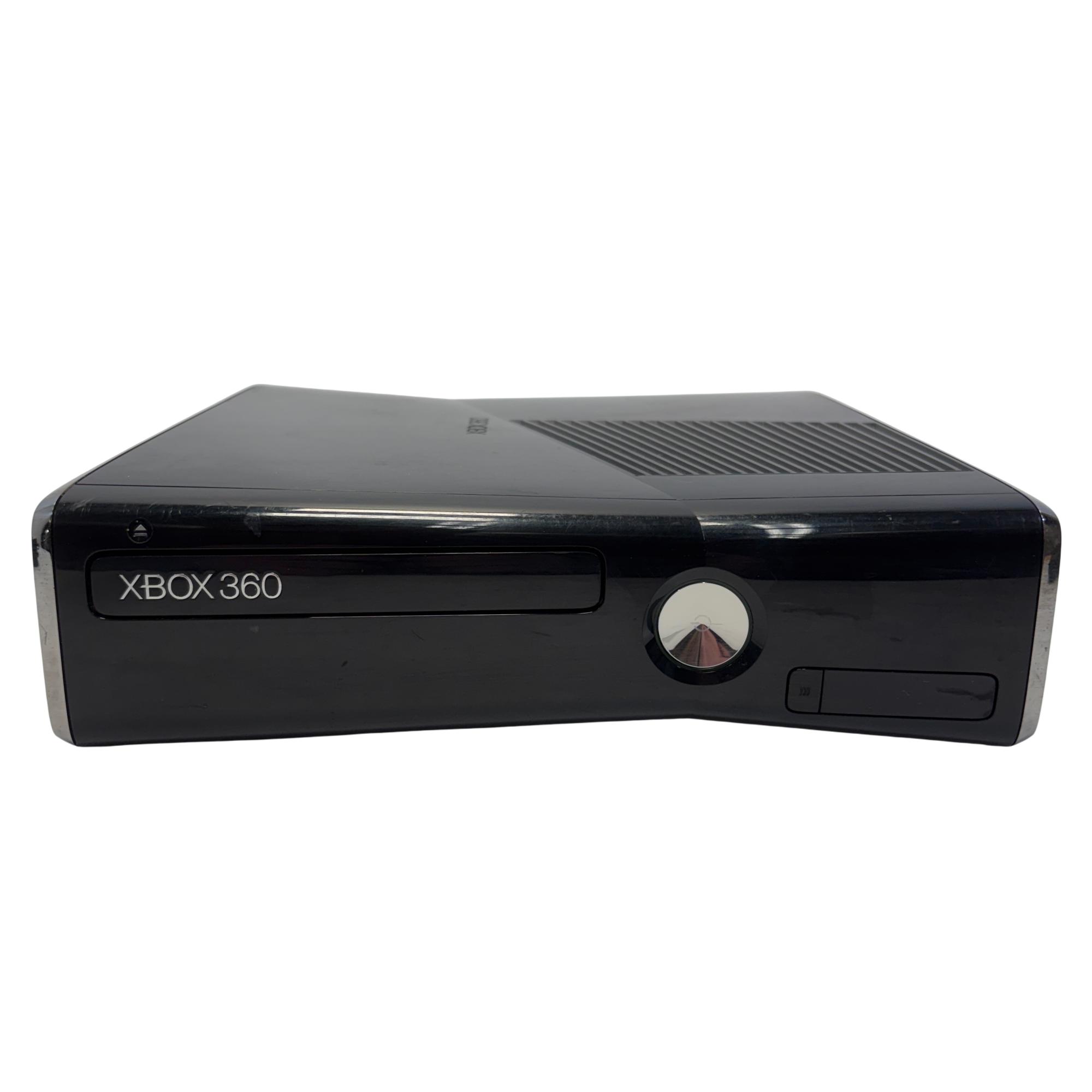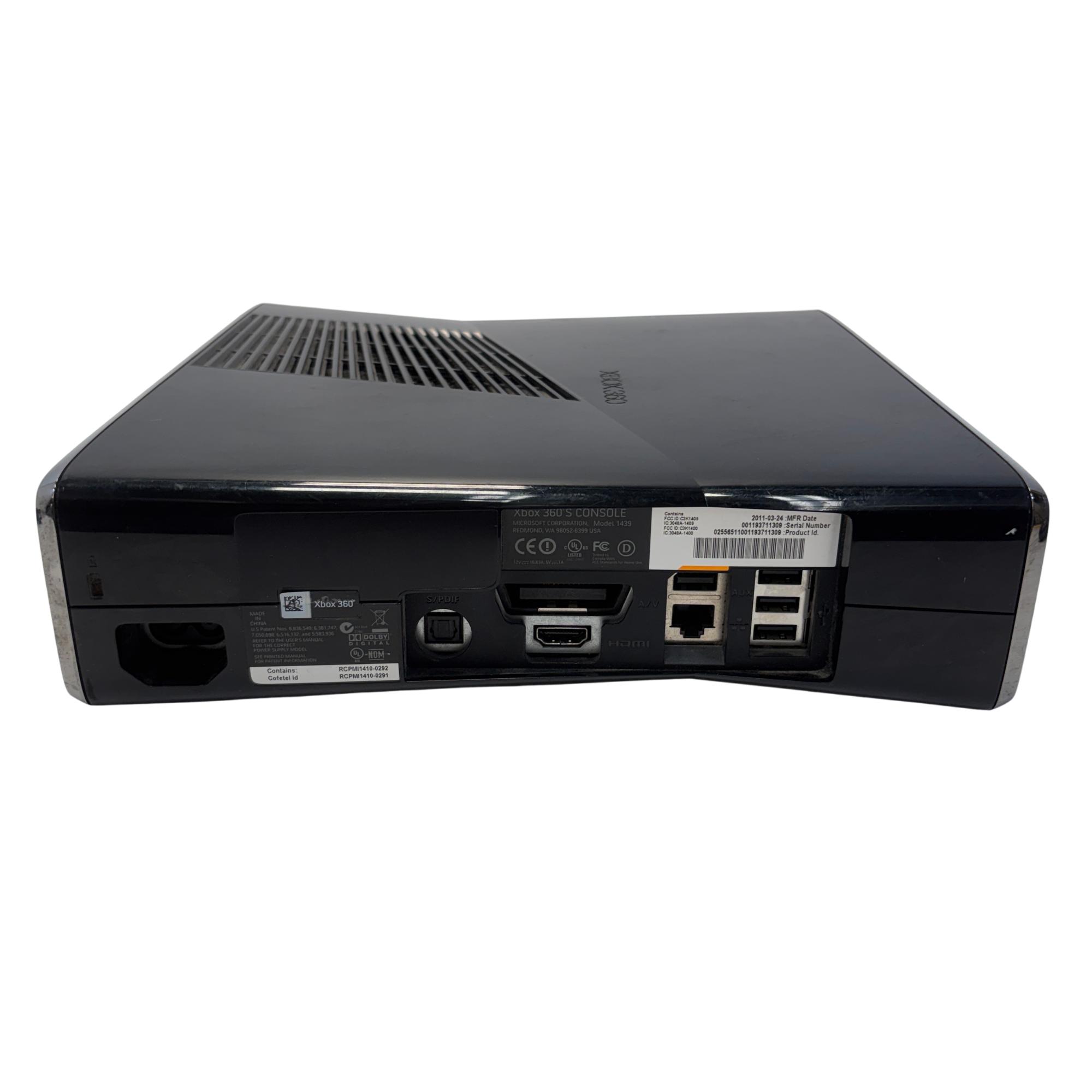 The Microsoft Xbox 360 S features a sleek black design and includes a built-in 250GB hard drive for ample game and media storage. This slim video game console supports high-definition gaming and multimedia playback, offering multiple ports including S/PDIF for enhanced audio connectivity. Its compact form factor and advanced cooling vents ensure efficient performance during extended play sessions.