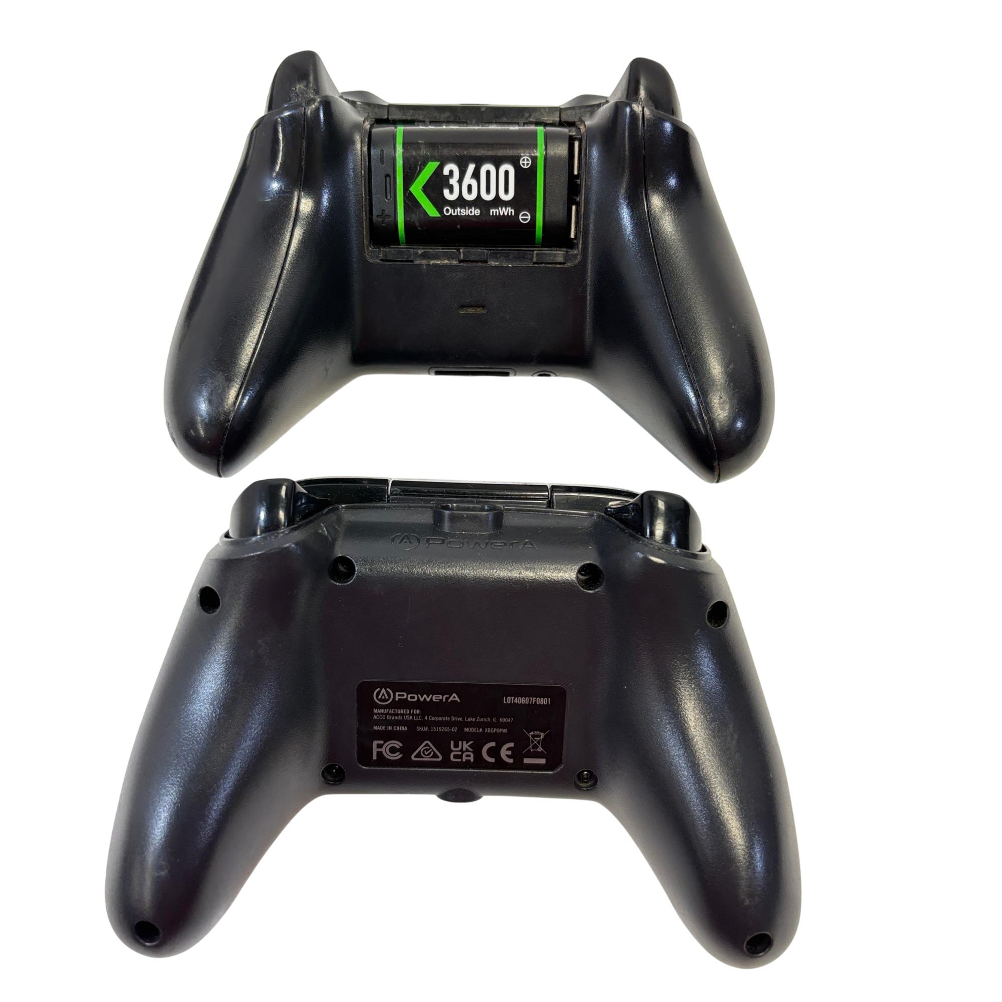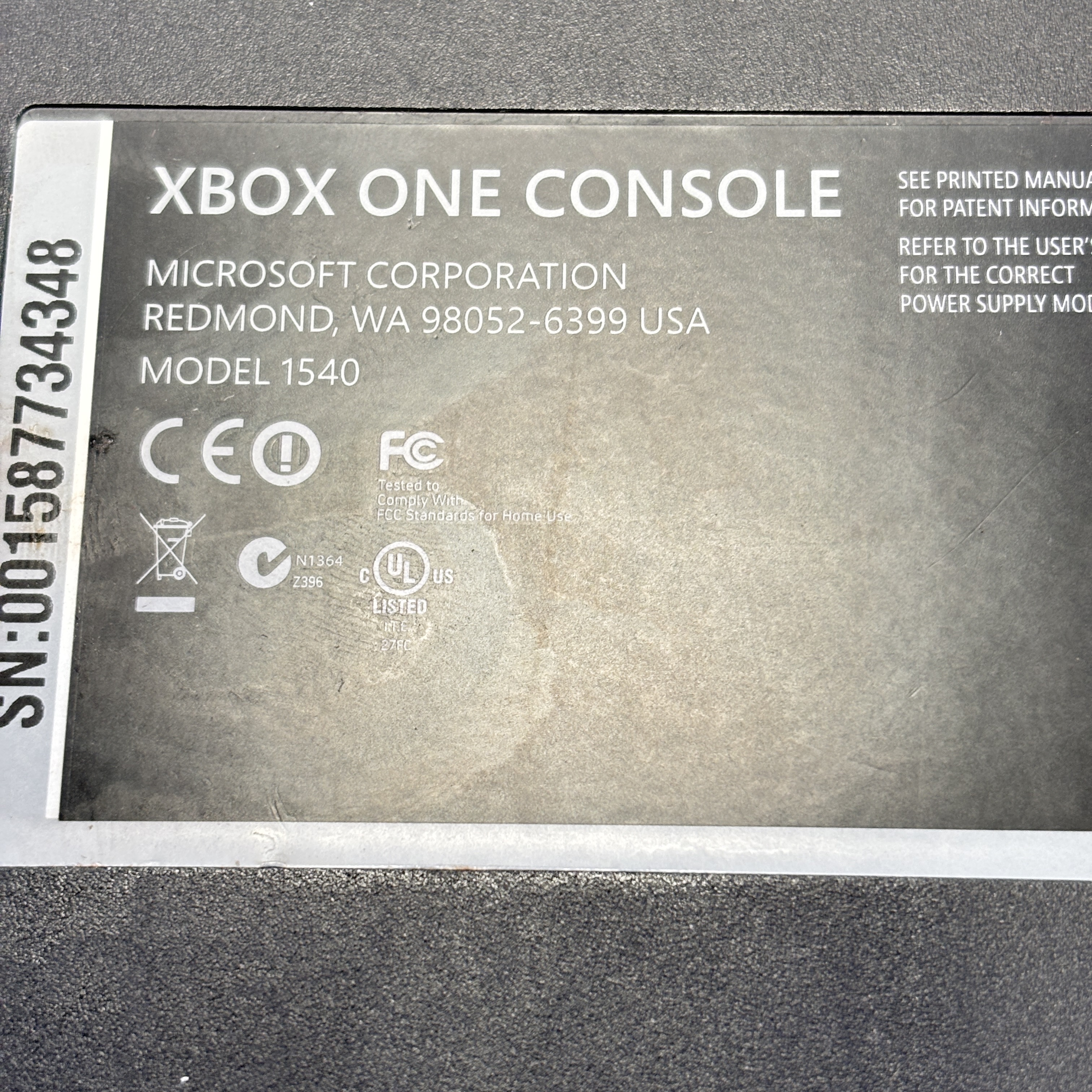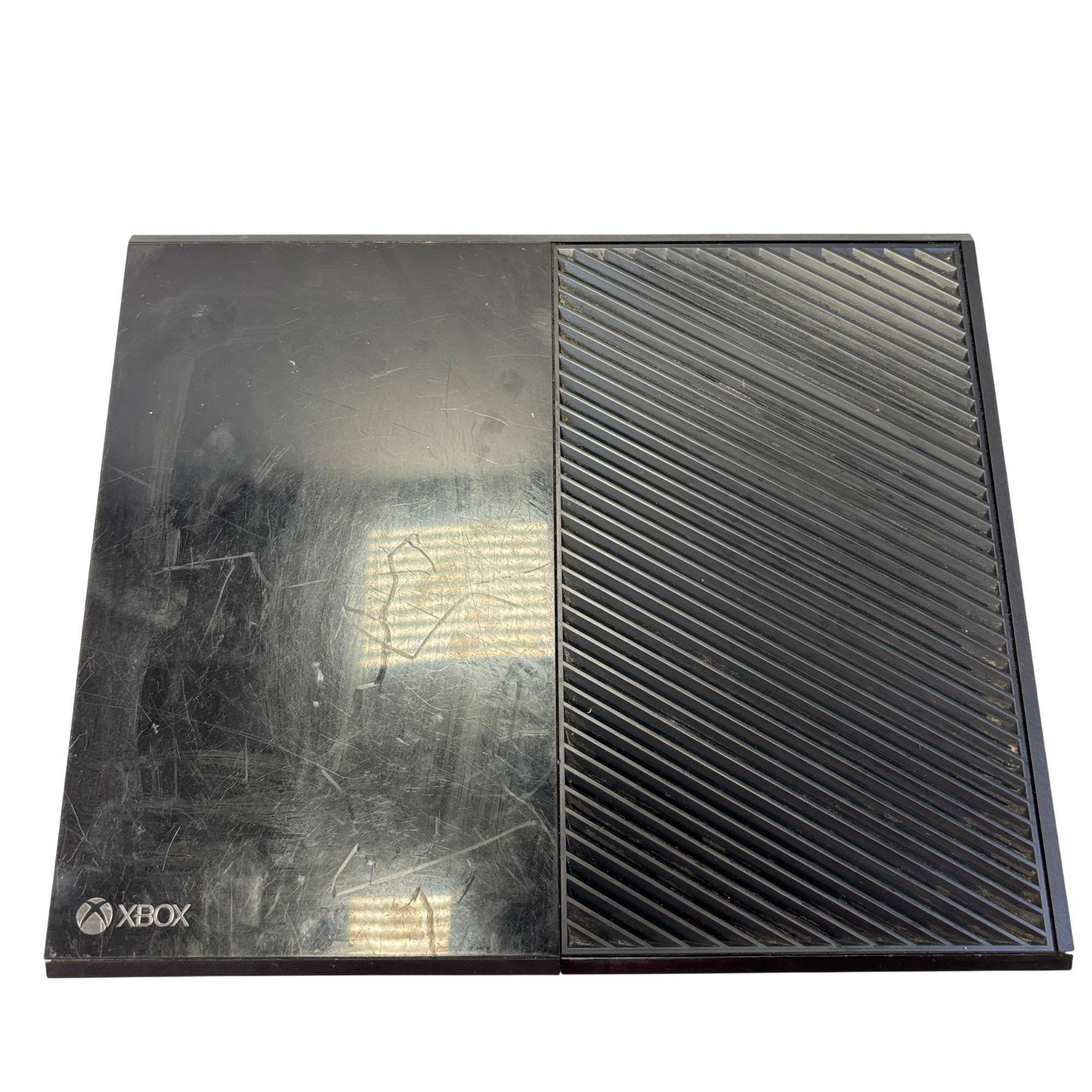 The Microsoft Xbox One features a sleek black rectangular design with multiple ports including HDMI in and out for seamless connectivity to your TV and other devices. This gaming console supports high-definition video output and offers robust performance for immersive gameplay experiences.