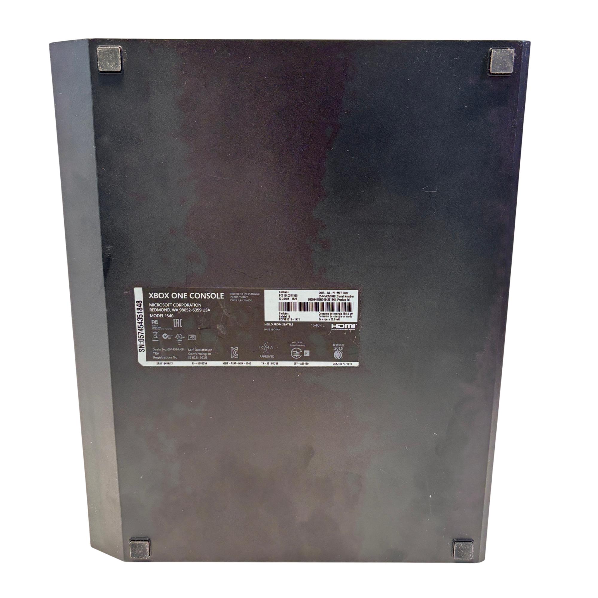 The Microsoft Xbox One 500GB Console Model 1540 offers a sleek black design featuring HDMI connectivity and reliable multimedia interface capabilities. This electronic device includes integrated USB ports and supports immersive gaming experiences with included high-quality gaming headphones and controller. Its compact rectangular form factor is engineered for seamless integration into entertainment setups and enhanced audio performance.