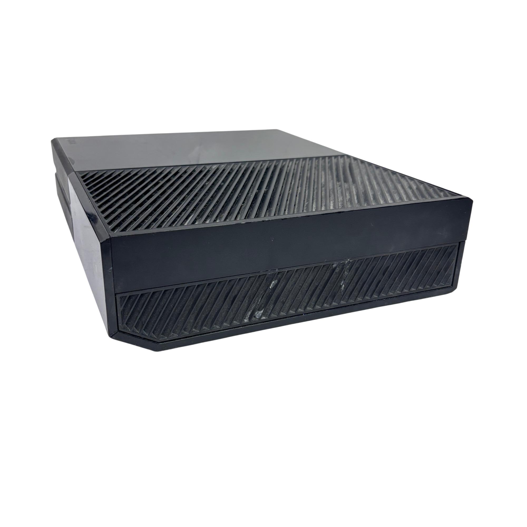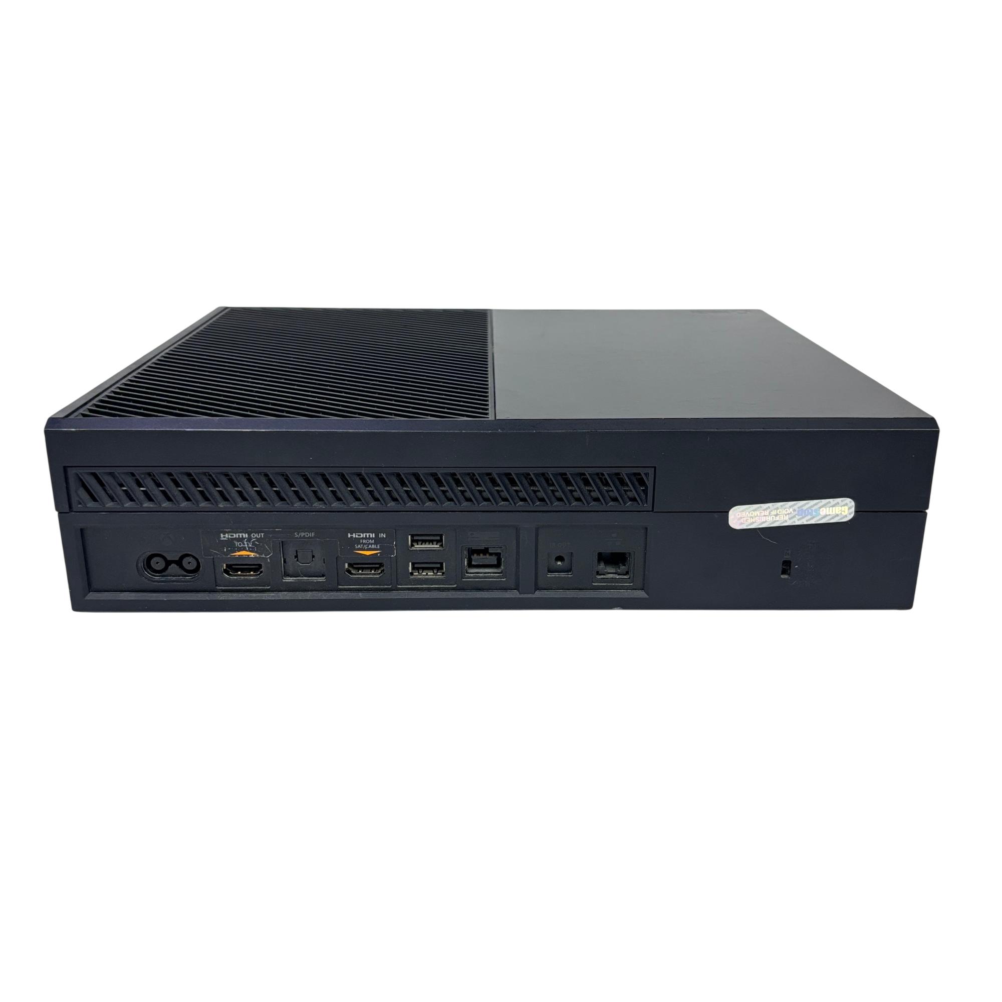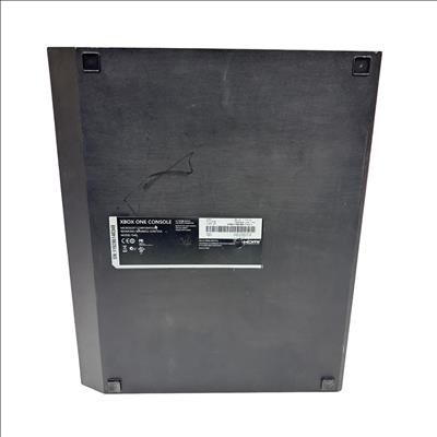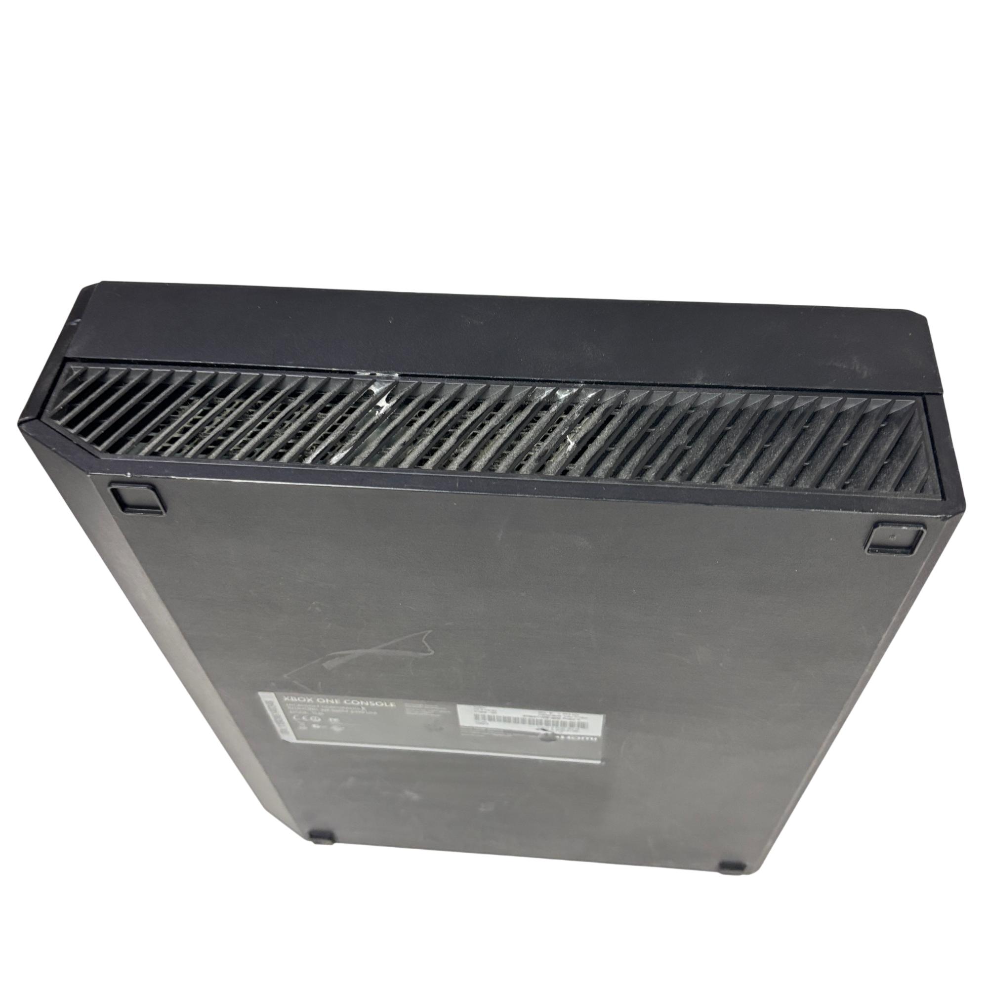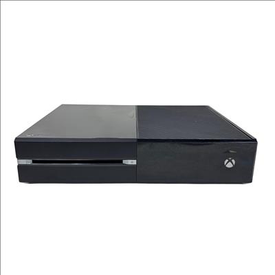 This Microsoft Xbox One is a sleek black gaming console featuring a rectangular design with a USB port and ventilation for cooling. This model offers 500GB of storage capacity and supports HDMI output, making it compatible with a wide range of home entertainment setups. Its minimalist black exterior is designed for indoor use and fits seamlessly into any gaming or media environment.