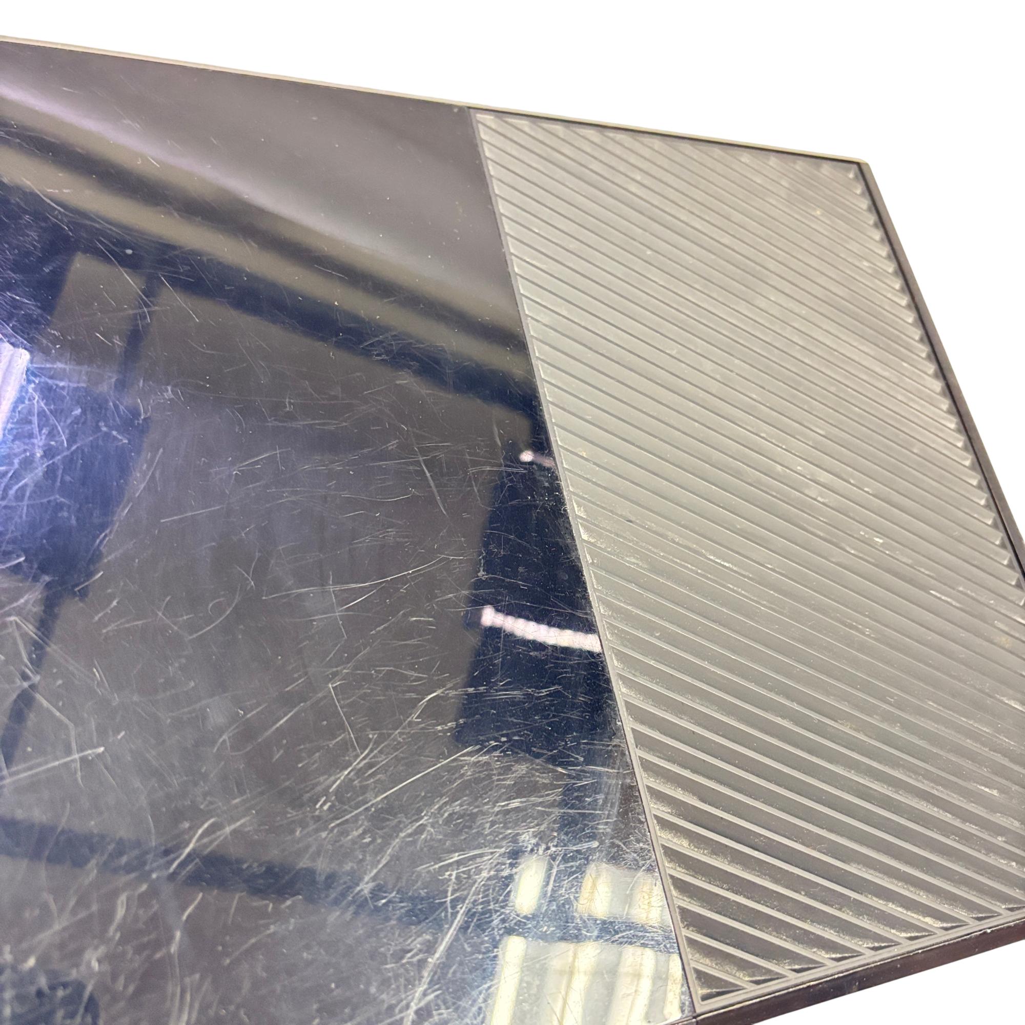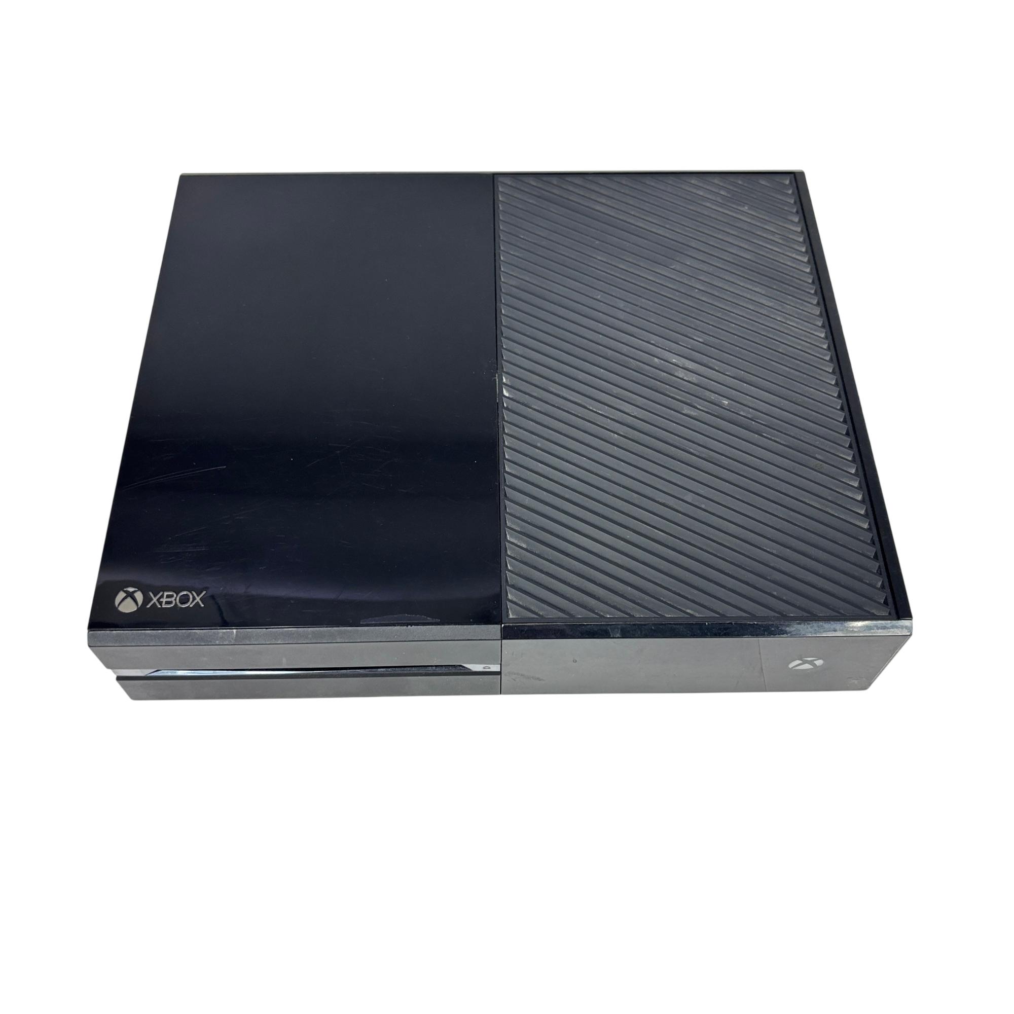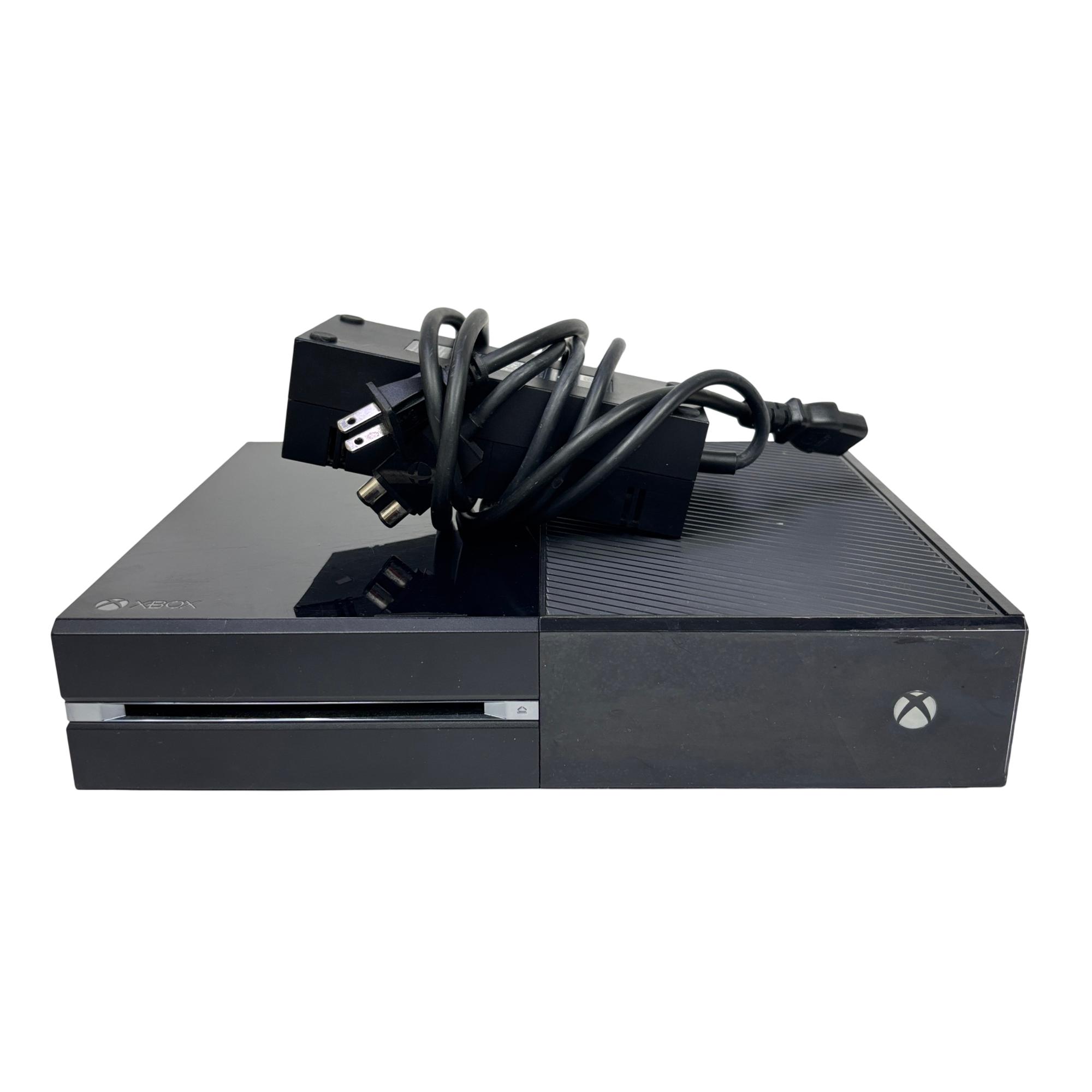 This Microsoft Xbox One is a sleek black gaming console featuring a rectangular design with a USB port and ventilation for cooling. This model offers 500GB of storage capacity and supports HDMI output, making it compatible with a wide range of home entertainment setups. Its minimalist black exterior is designed for indoor use and fits seamlessly into any gaming or media environment.