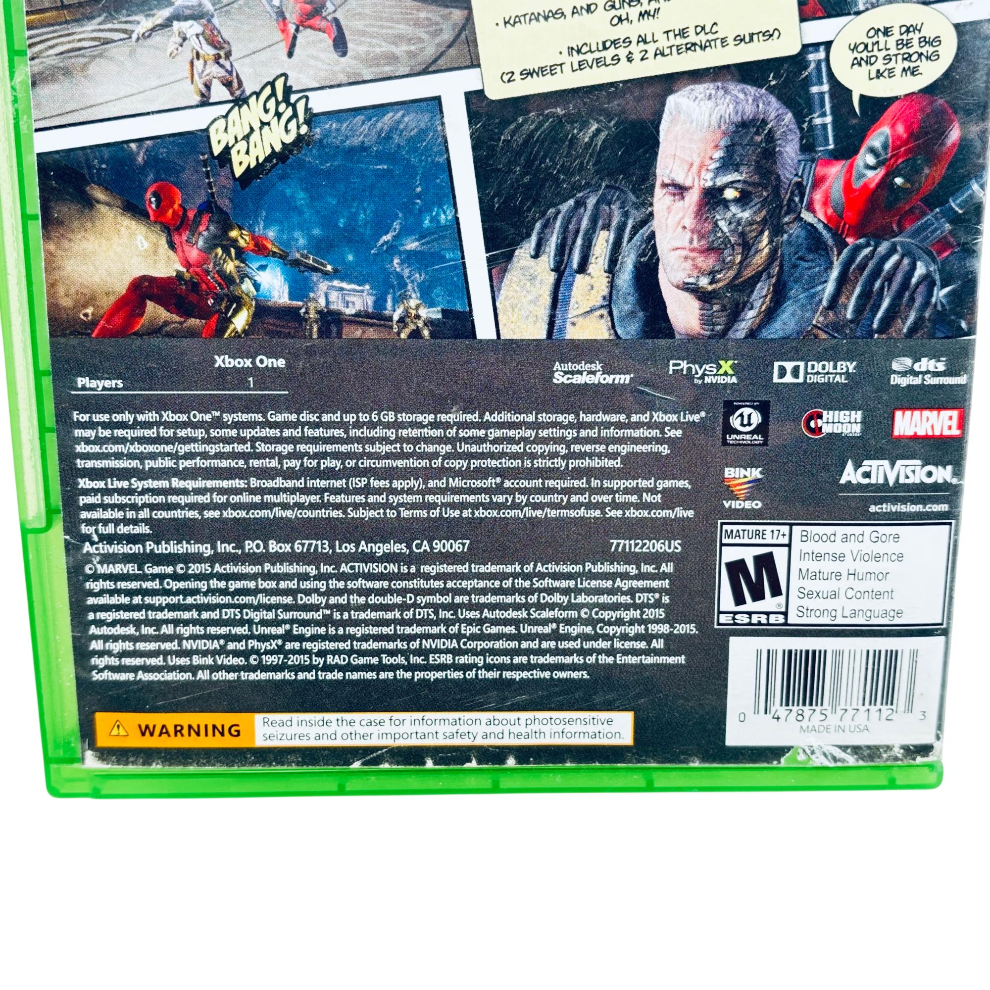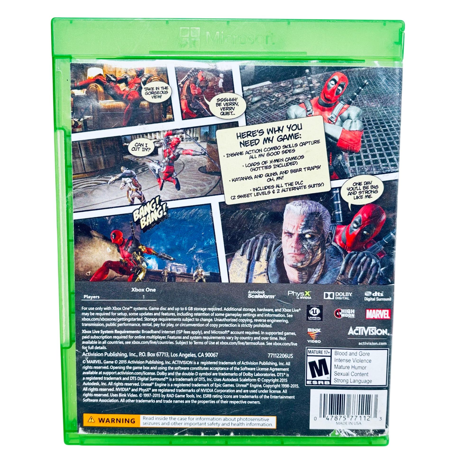 Deadpool (Microsoft Xbox One, 2015) by Marvel / Activision delivers an action-packed experience featuring the iconic Marvel antihero in a humorous, fast-paced third-person shooter format. Players engage in dynamic combat and unique storytelling that blends intense gameplay with Deadpool’s signature wit and irreverent style, optimized for the Xbox One platform.