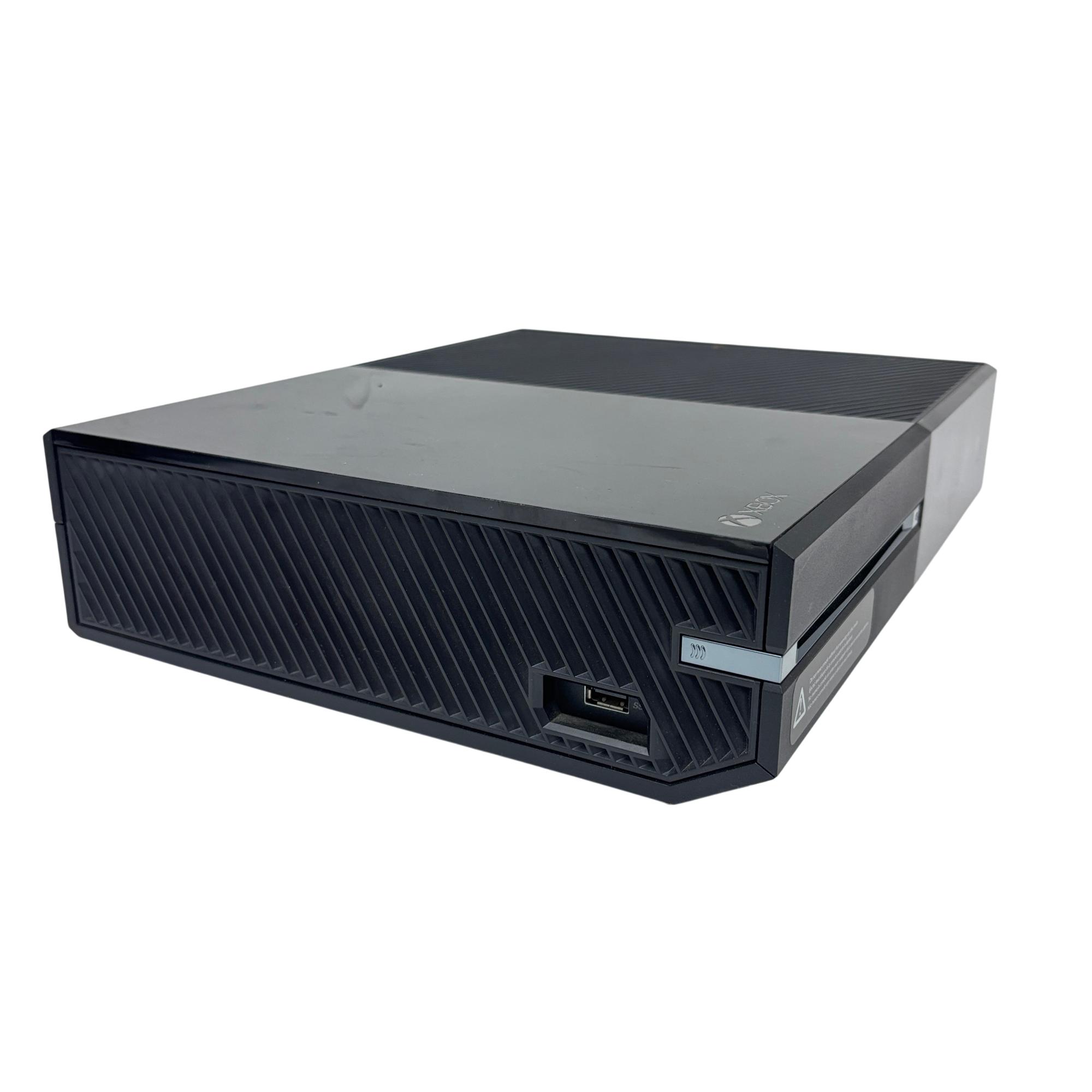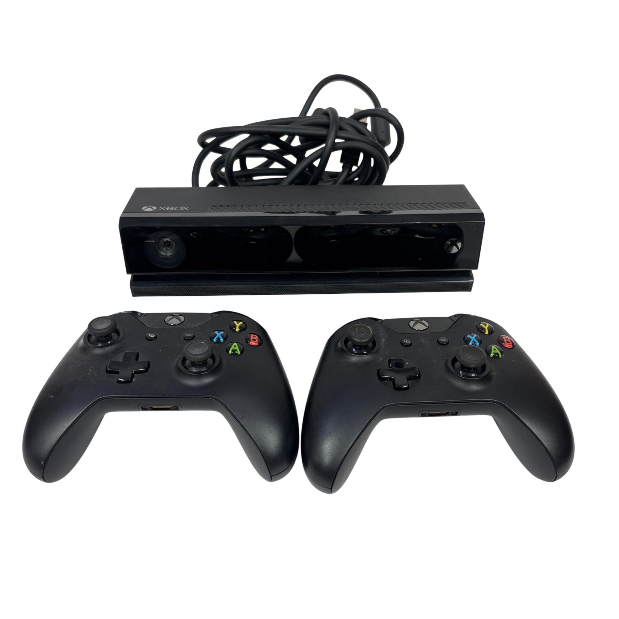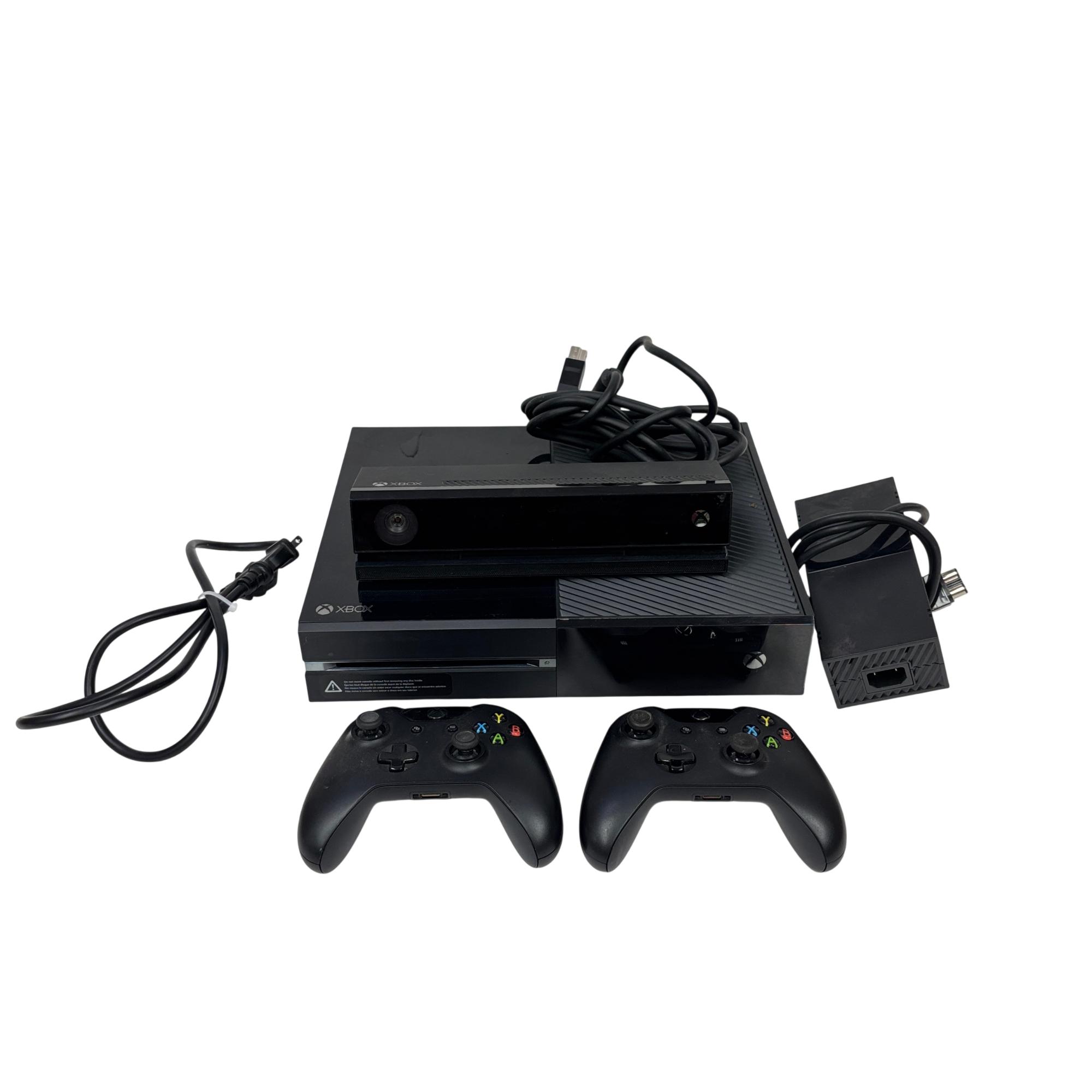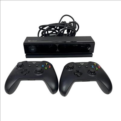 This Microsoft Xbox One features a sleek black design with advanced gaming capabilities. This system includes a built-in Kinect sensor for motion control and comes with two wireless controllers, delivering an immersive and responsive gaming experience optimized for home entertainment.
