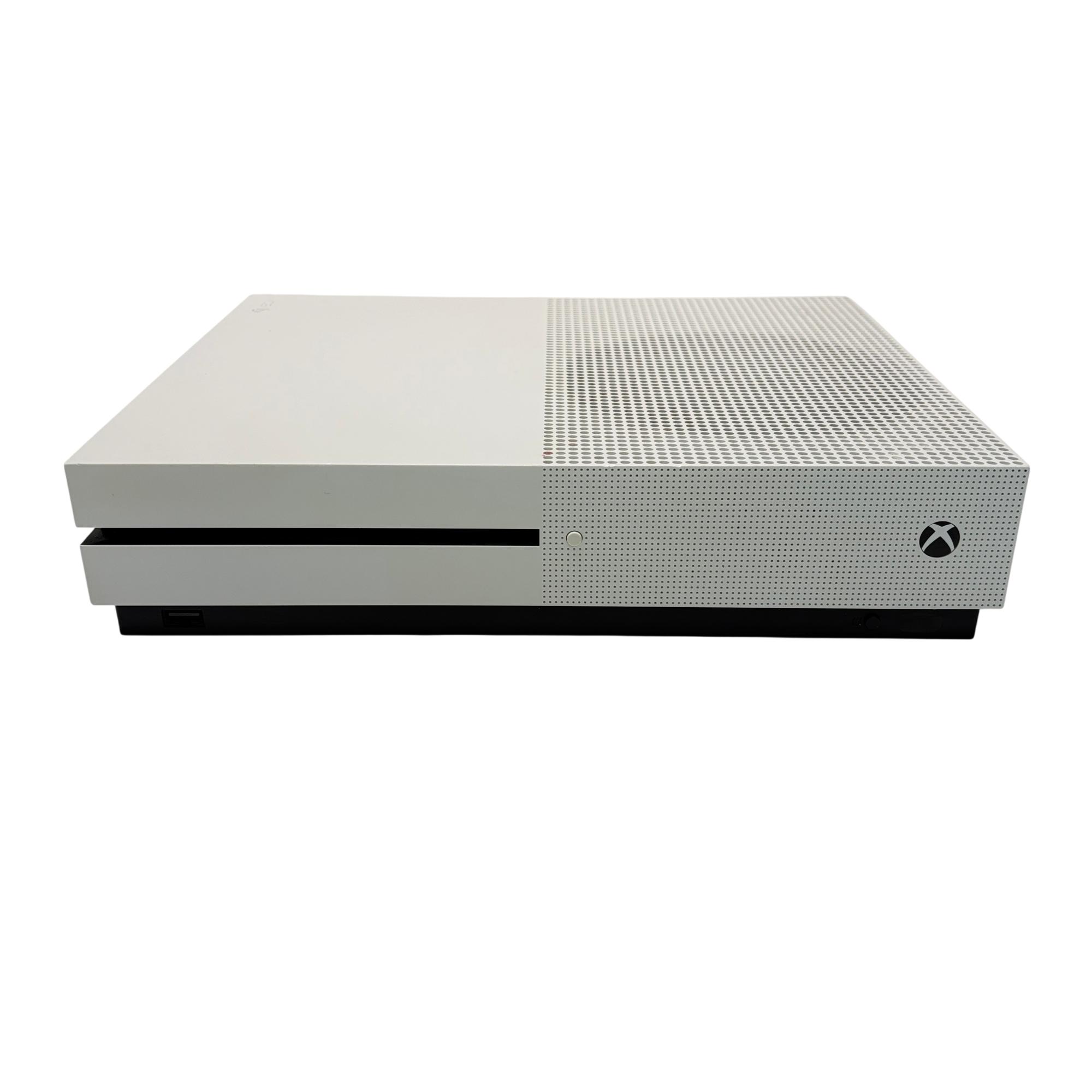 The Microsoft Xbox One S 1TB in white delivers powerful entertainment and gaming in one sleek console. Enjoy 4K Ultra HD streaming and Blu-ray playback with vibrant HDR visuals. Store and play your favorite titles with 1TB of storage, and experience smooth online multiplayer with Xbox Live. Compatible with a wide library of games from Xbox One, Xbox 360, and the original Xbox, the Xbox One S offers a versatile gaming experience for players and media lovers alike.