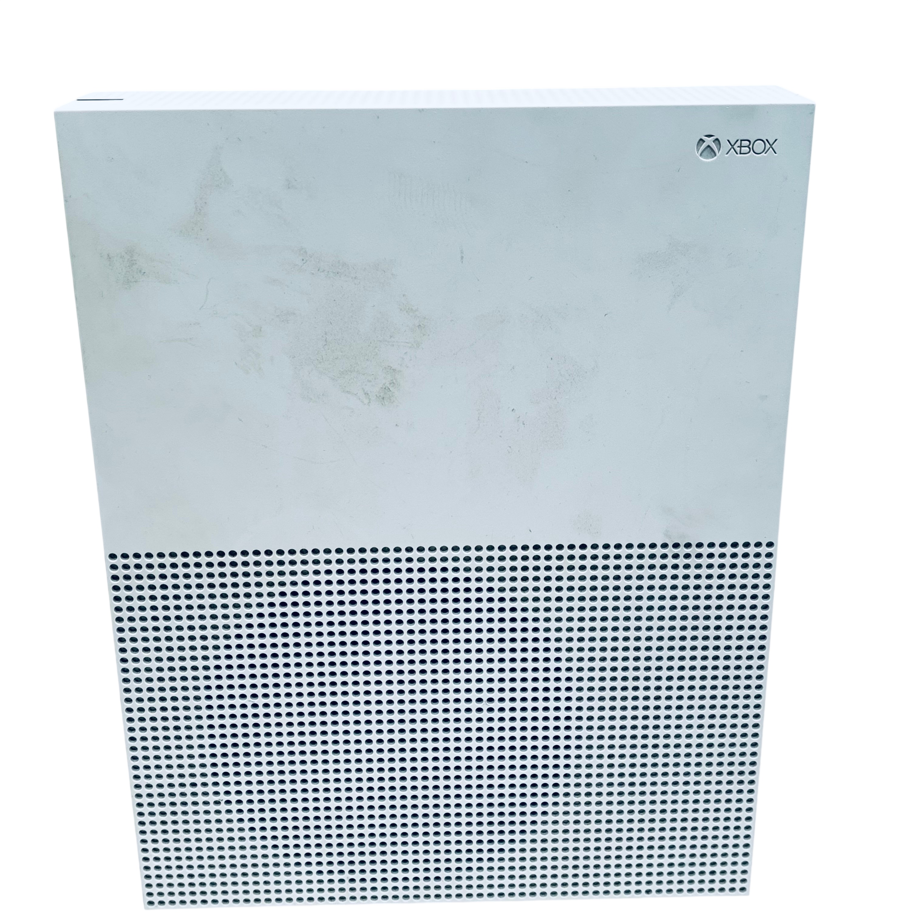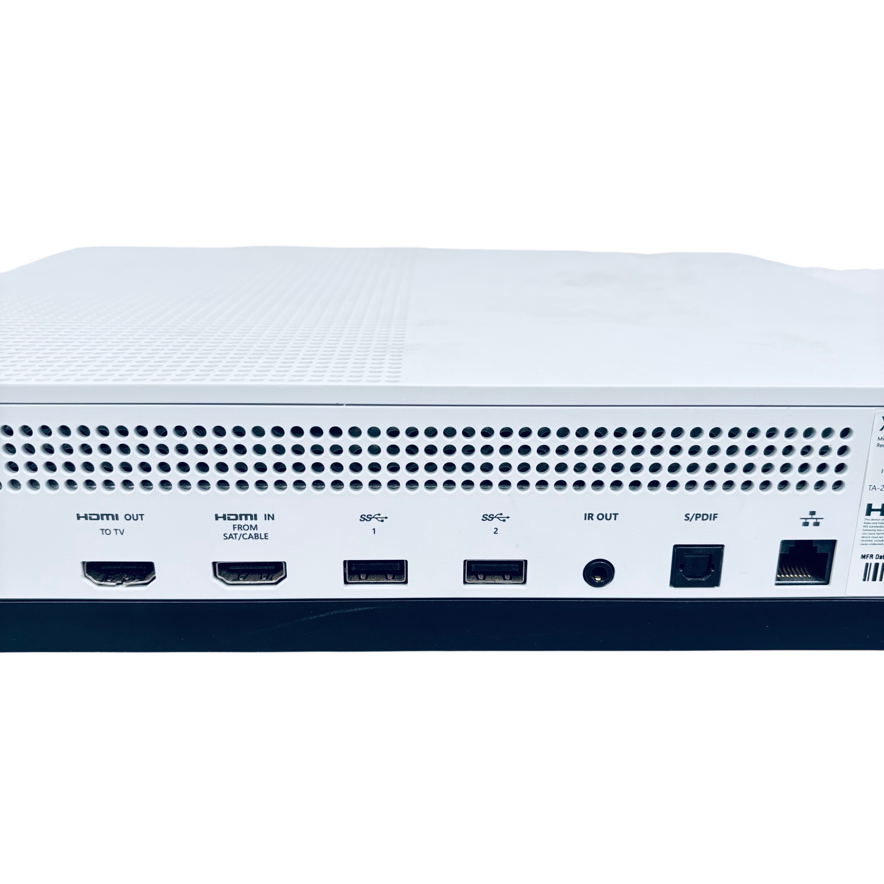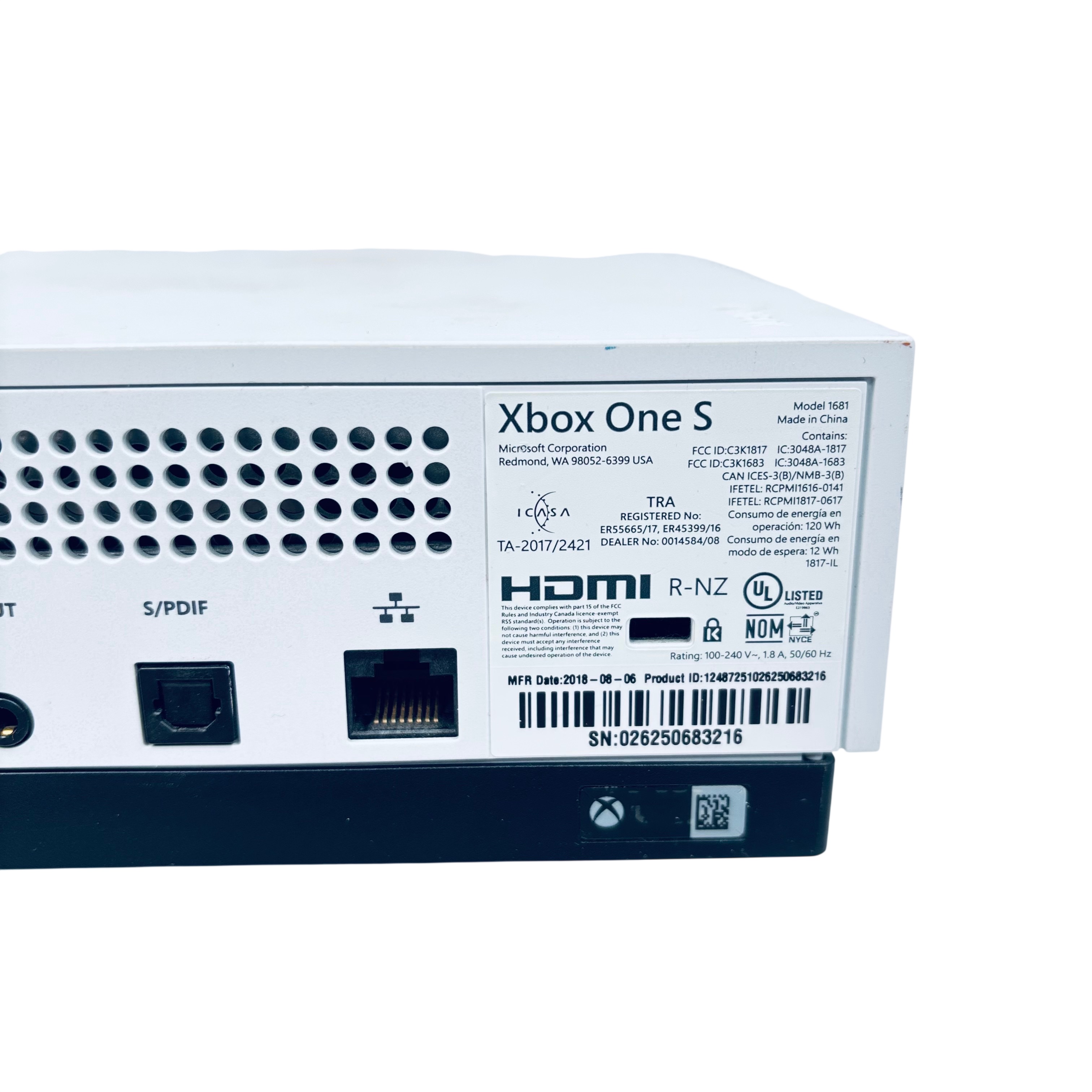 Microsoft Xbox One S Model 1681 is a sleek white and black video game console designed for immersive gaming and entertainment. Featuring 4K Ultra HD video playback and HDR support, this console delivers stunning visuals for both games and media. It includes an Xbox Wireless Controller and multiple connectivity options such as HDMI in/out, USB 3.0 ports, and Ethernet for versatile setup. With a compact design measuring approximately 2.5 inches in height, 10.8 inches in width, and 11.4 inches in length, and weighing around 6.4 pounds, it fits comfortably in any entertainment center.