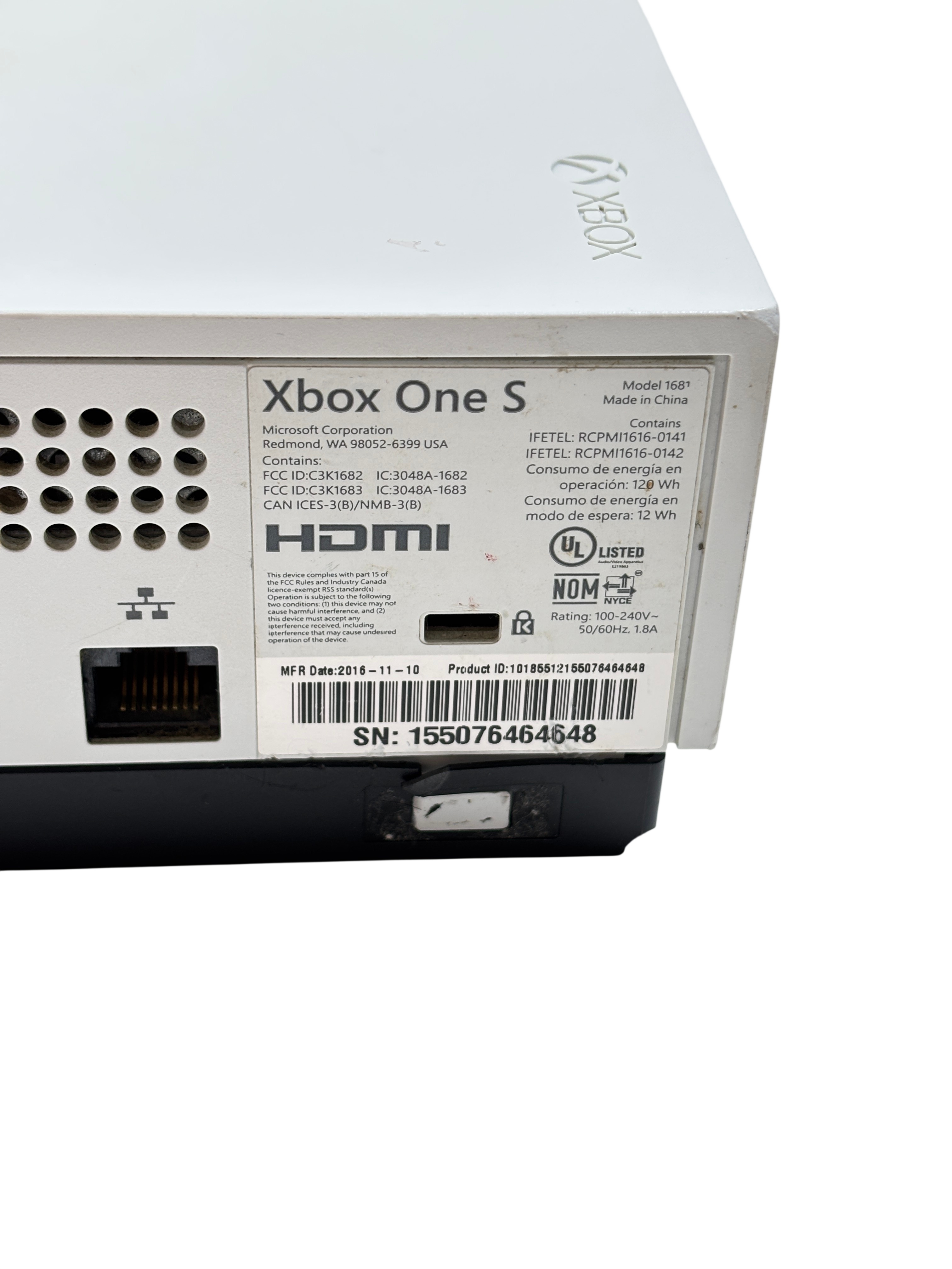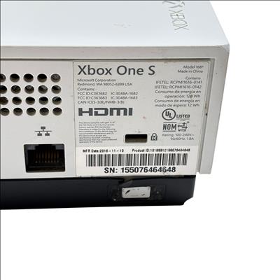 Microsoft Xbox One S 1TB Video Game Console (Model 1681) offers a spacious 1TB internal storage capacity for games and media. This console features HDMI connectivity and supports 4K video playback, delivering an enhanced gaming and entertainment experience. Included in the set are the Xbox One S console, power cord, and HDMI cable, making it ready for immediate use. Its compact white and black design fits seamlessly into any entertainment setup, perfect for gamers seeking both performance and style.