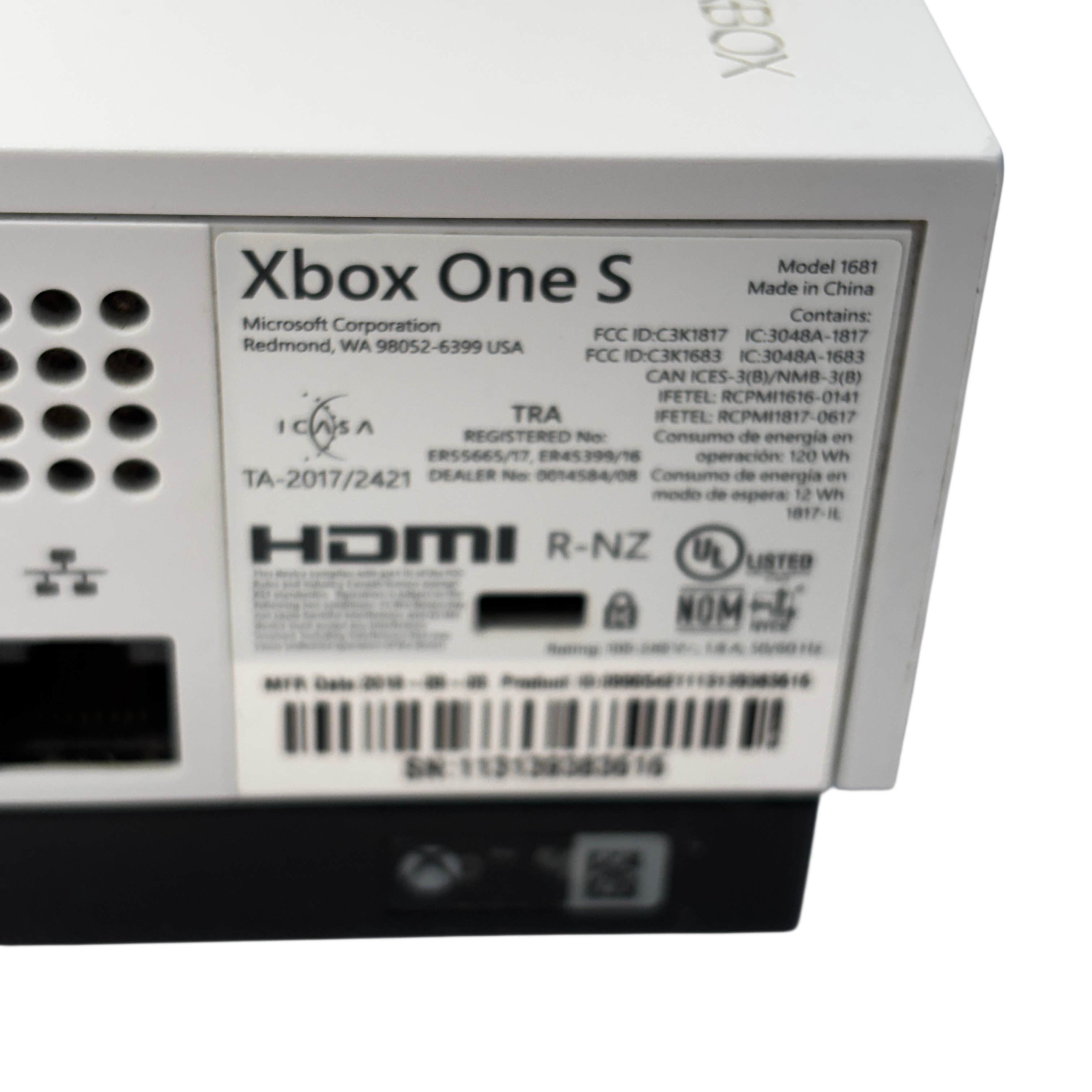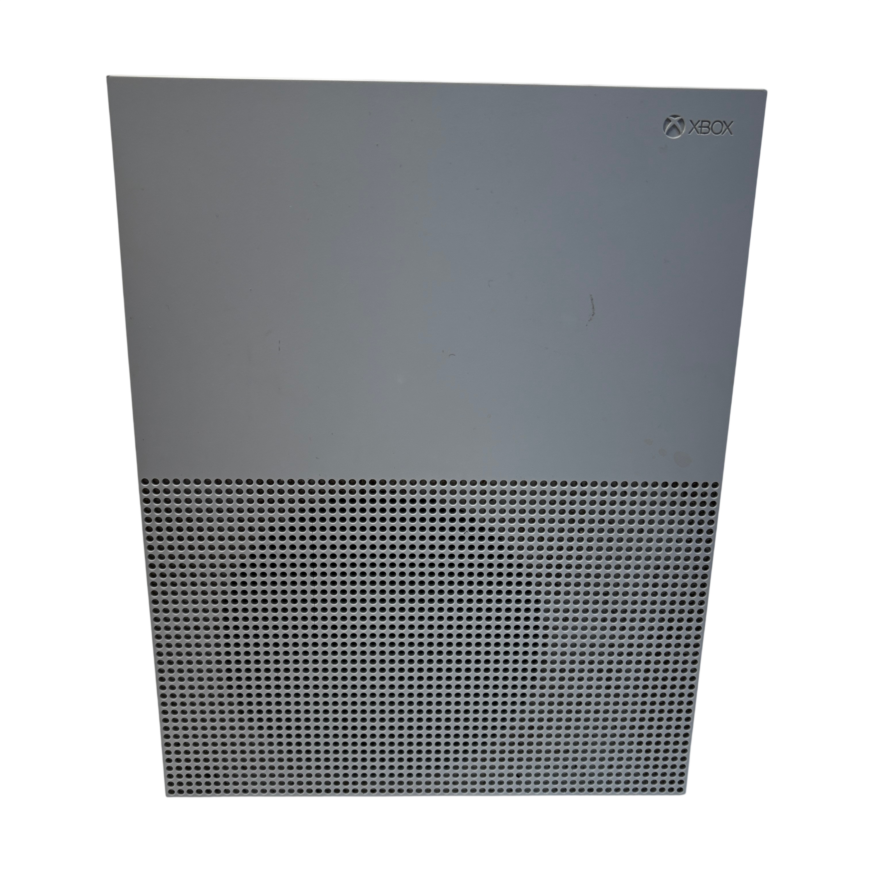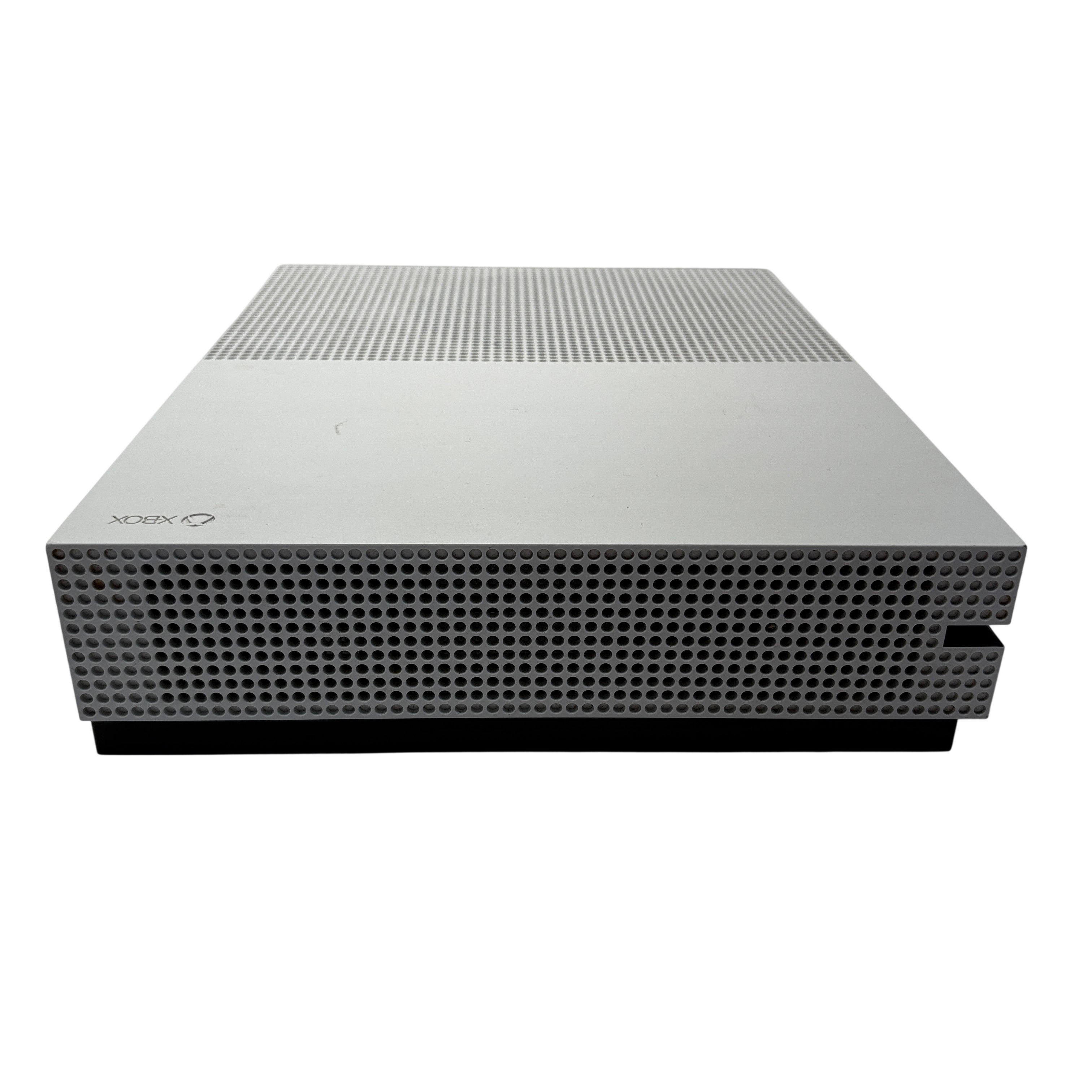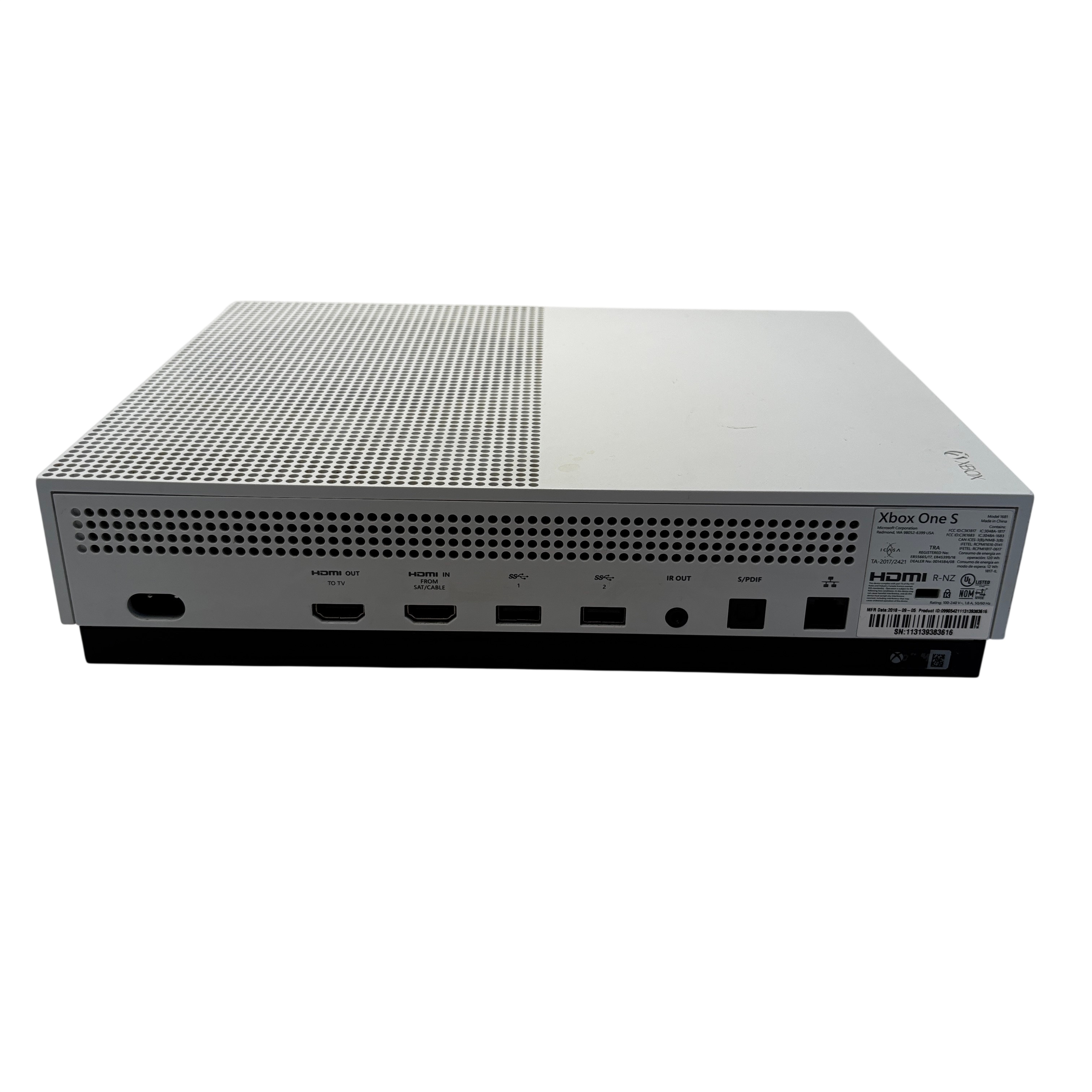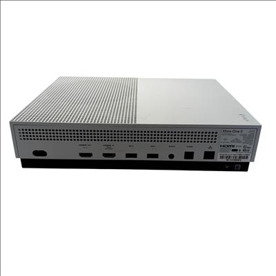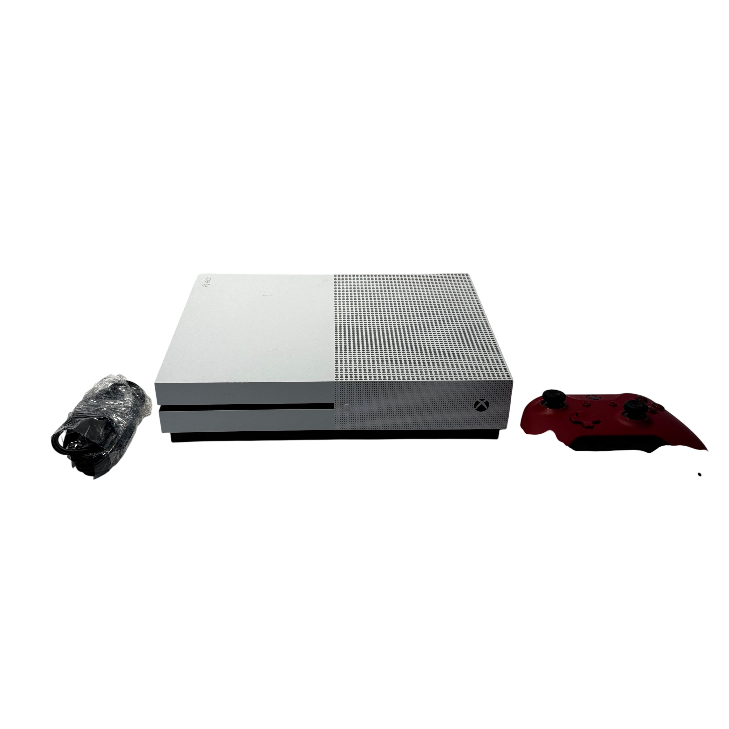 The Microsoft Xbox One S is a versatile video game console offering ample storage for games and media. This model features a sleek white and black design with a compact form factor, making it ideal for any entertainment setup. Included in the package are the console itself, a power cable, and a red wireless controller, providing everything needed to start gaming right away. With support for 4K video playback and a robust game library, this Xbox One S delivers an immersive gaming and entertainment experience.