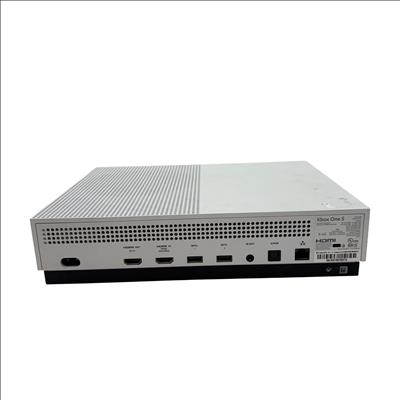 Microsoft Xbox One S 1681 1TB White Video Game Console offers a sleek and compact design with a matte white finish and ventilation holes for efficient cooling. This console features 1TB of internal storage, supporting a vast library of digital games and media, and includes a wireless controller designed for comfortable and precise gameplay. Its integrated HDMI output supports high-definition visuals, making it ideal for immersive gaming experiences.