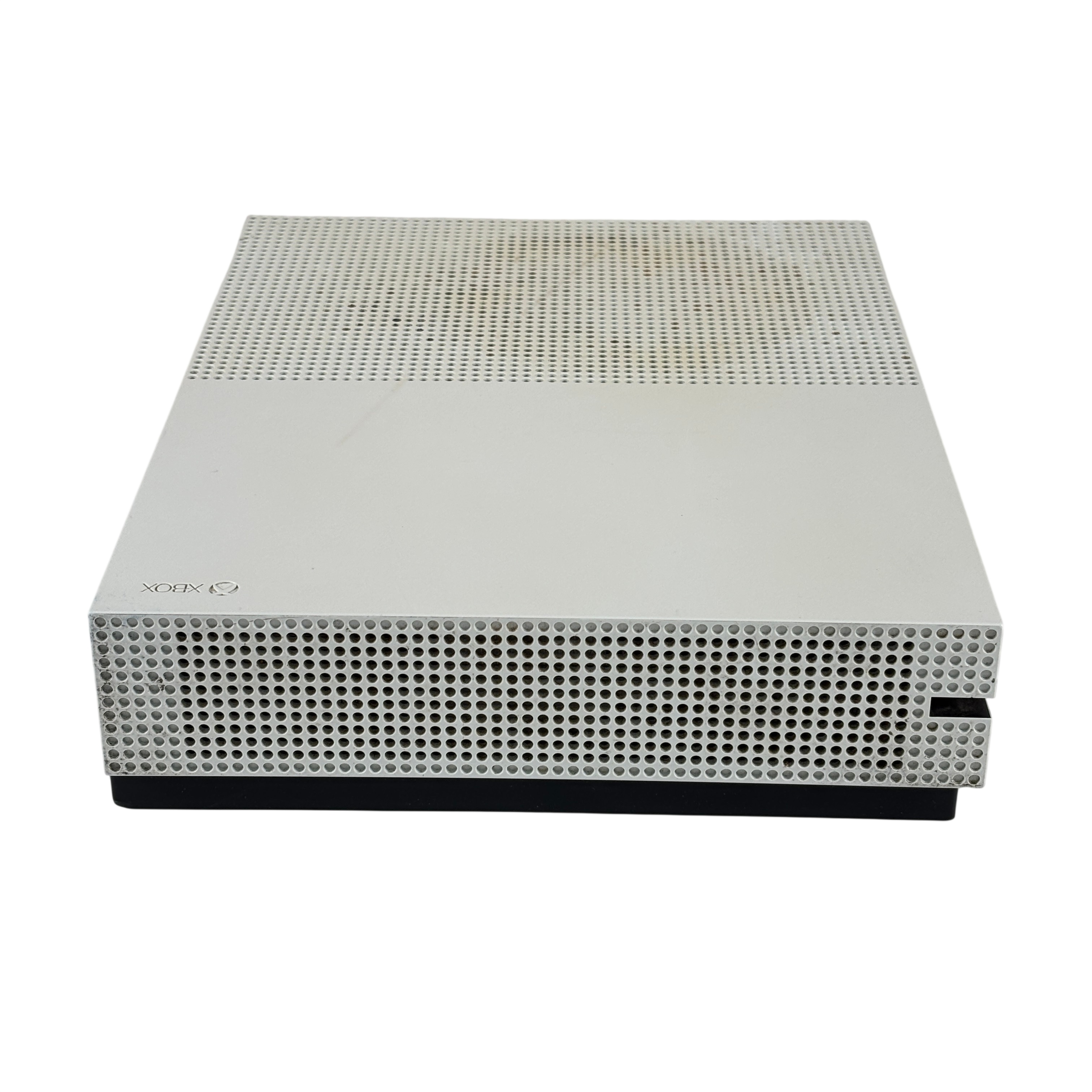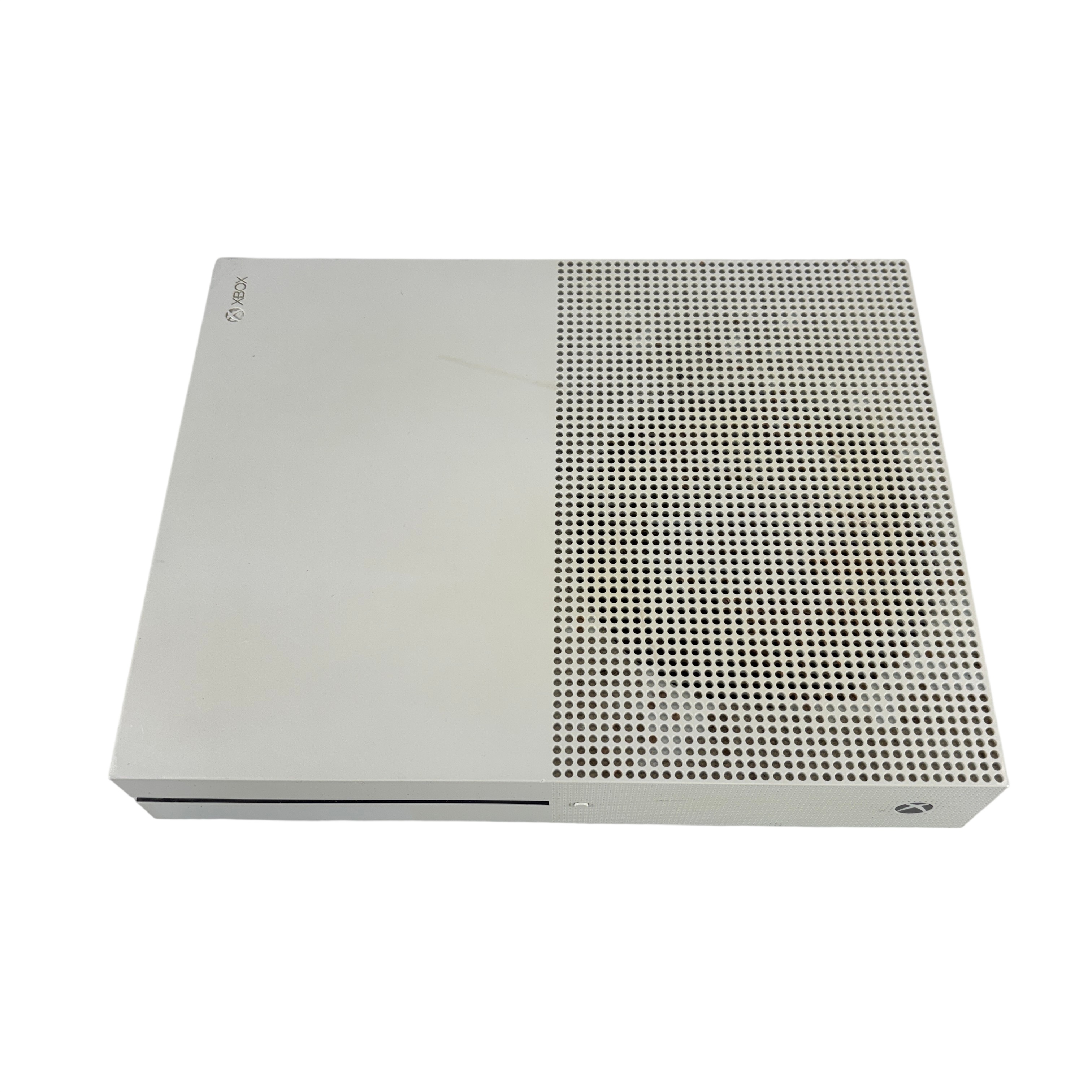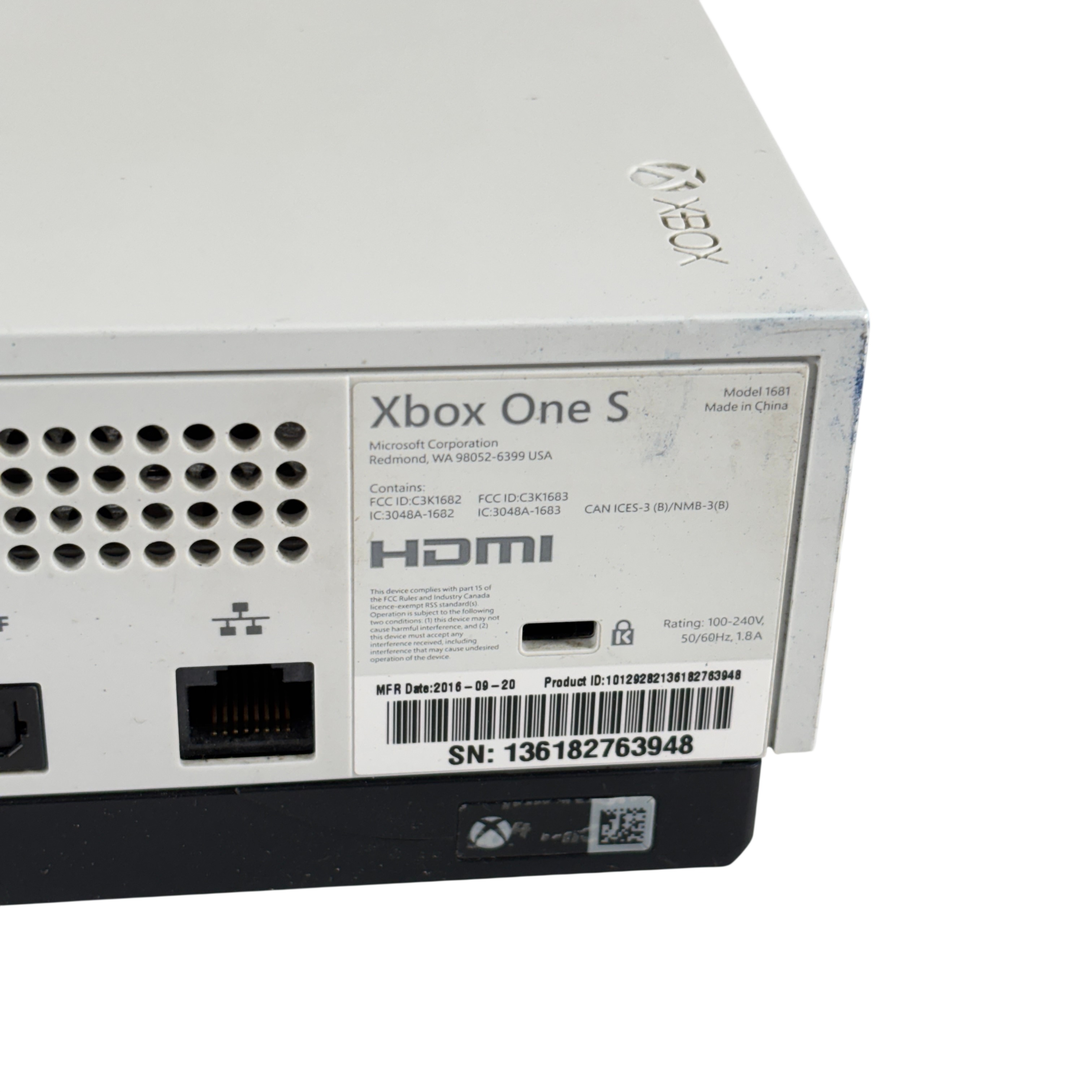 The Microsoft Xbox One S in white delivers powerful entertainment and gaming in one sleek console. Enjoy 4K Ultra HD streaming and Blu-ray playback with vibrant HDR visuals. Store and play your favorite titles with 500GB of storage, and experience smooth online multiplayer with Xbox Live. Compatible with a wide library of games from Xbox One, Xbox 360, and the original Xbox, the Xbox One S offers a versatile gaming experience for players and media lovers alike.