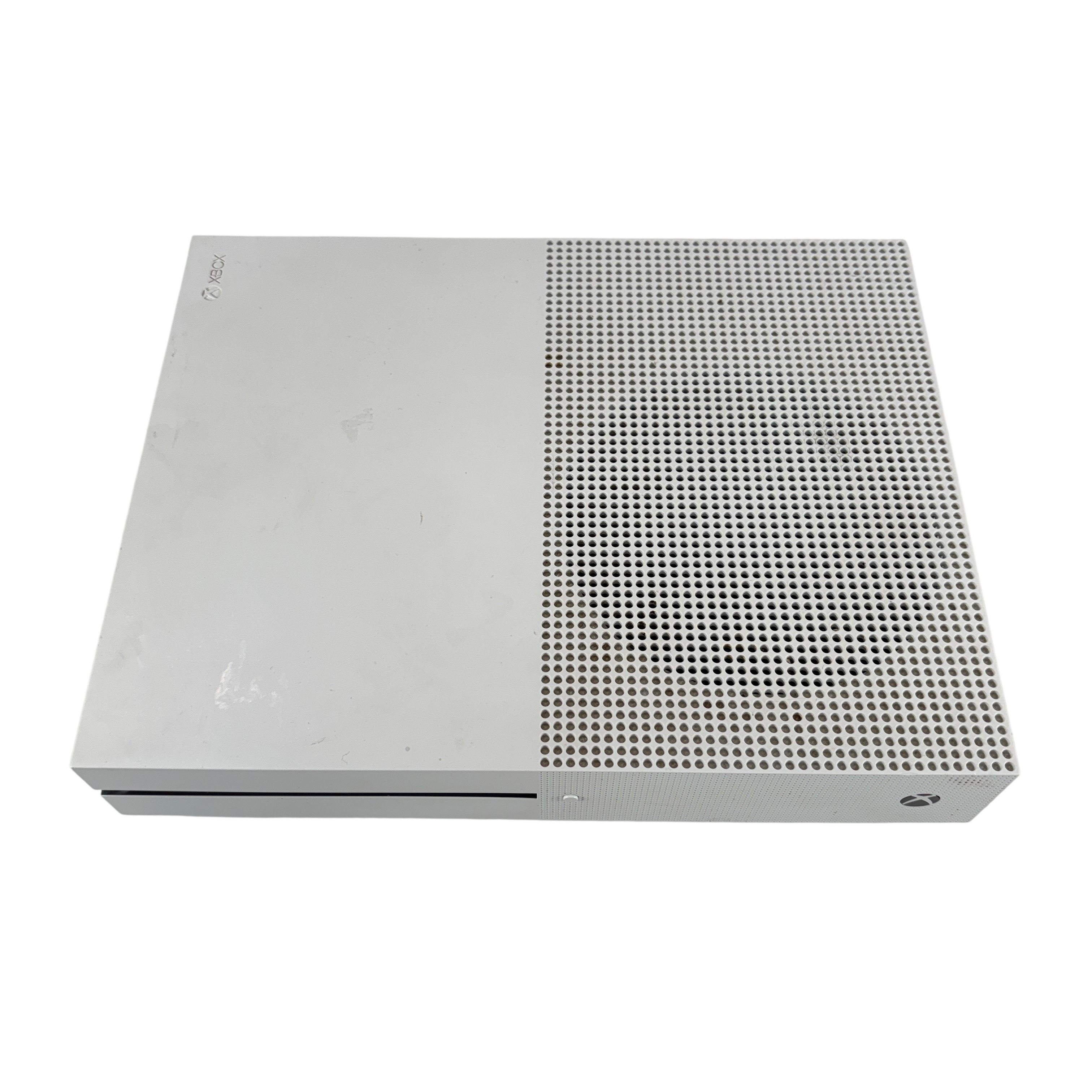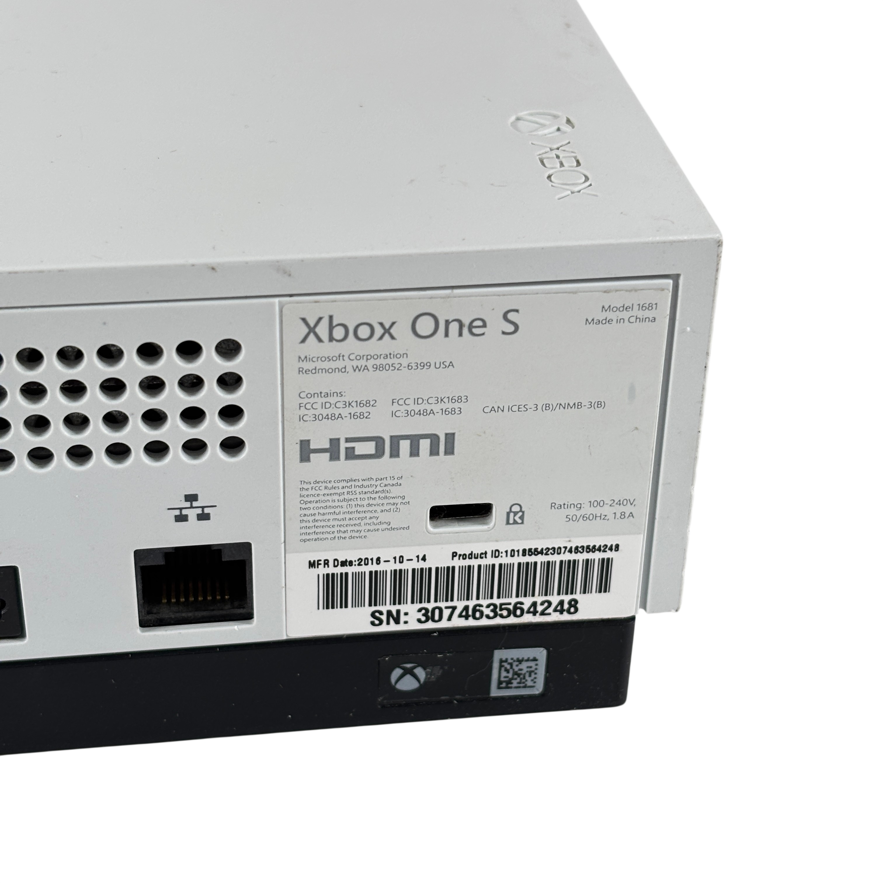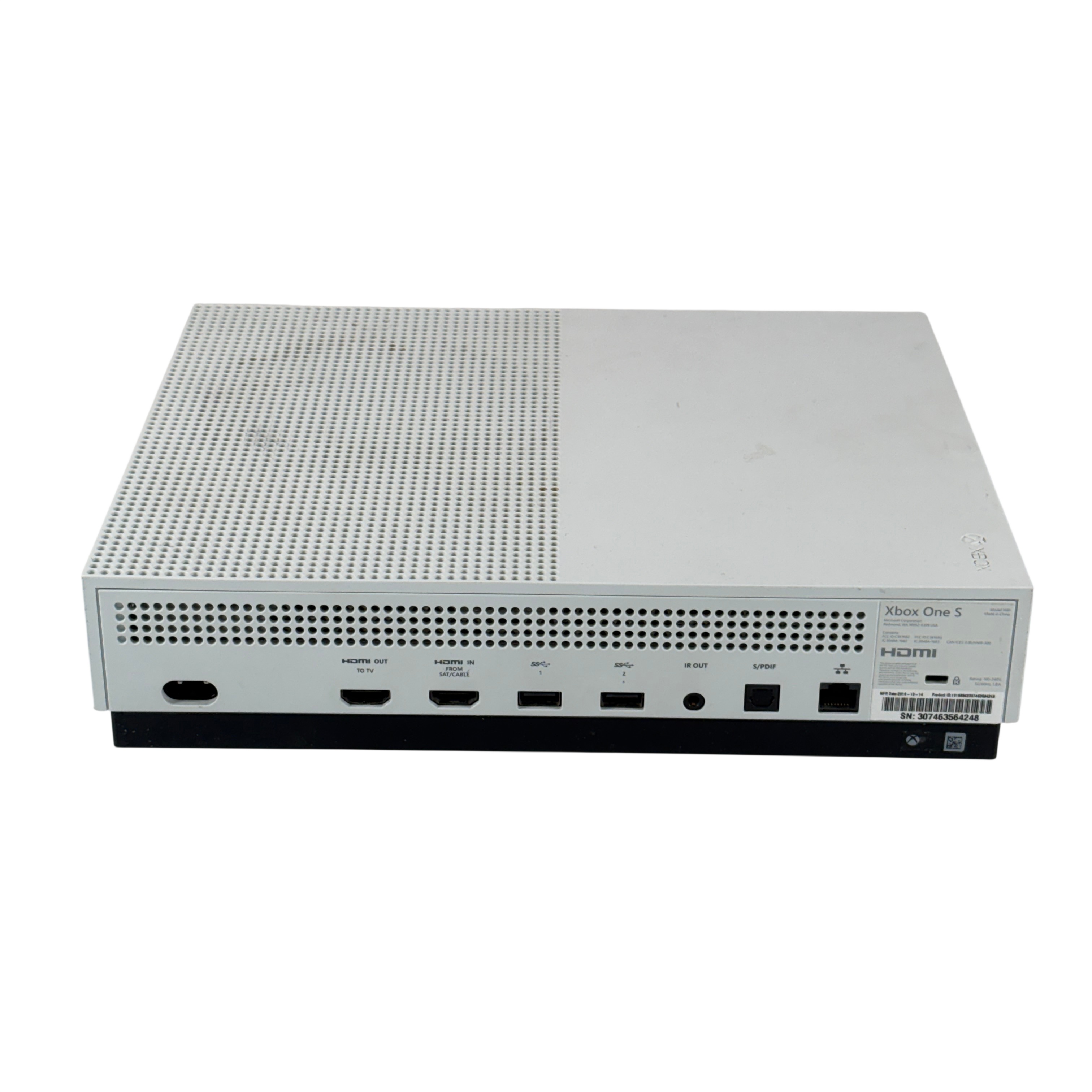 The Microsoft Xbox One S in white delivers powerful entertainment and gaming in one sleek console. Enjoy 4K Ultra HD streaming and Blu-ray playback with vibrant HDR visuals. Store and play your favorite titles with 500GB of storage, and experience smooth online multiplayer with Xbox Live. Compatible with a wide library of games from Xbox One, Xbox 360, and the original Xbox, the Xbox One S offers a versatile gaming experience for players and media lovers alike.