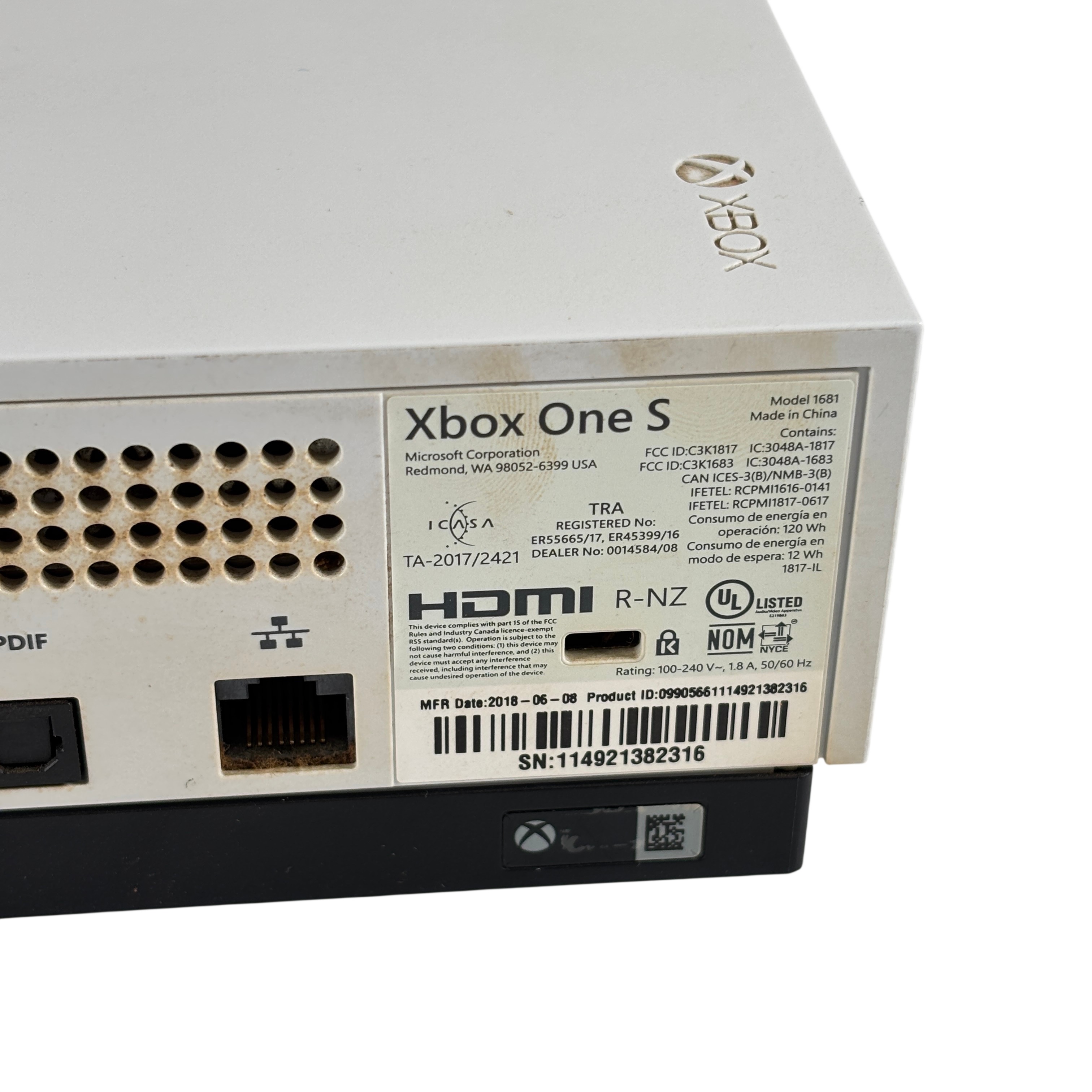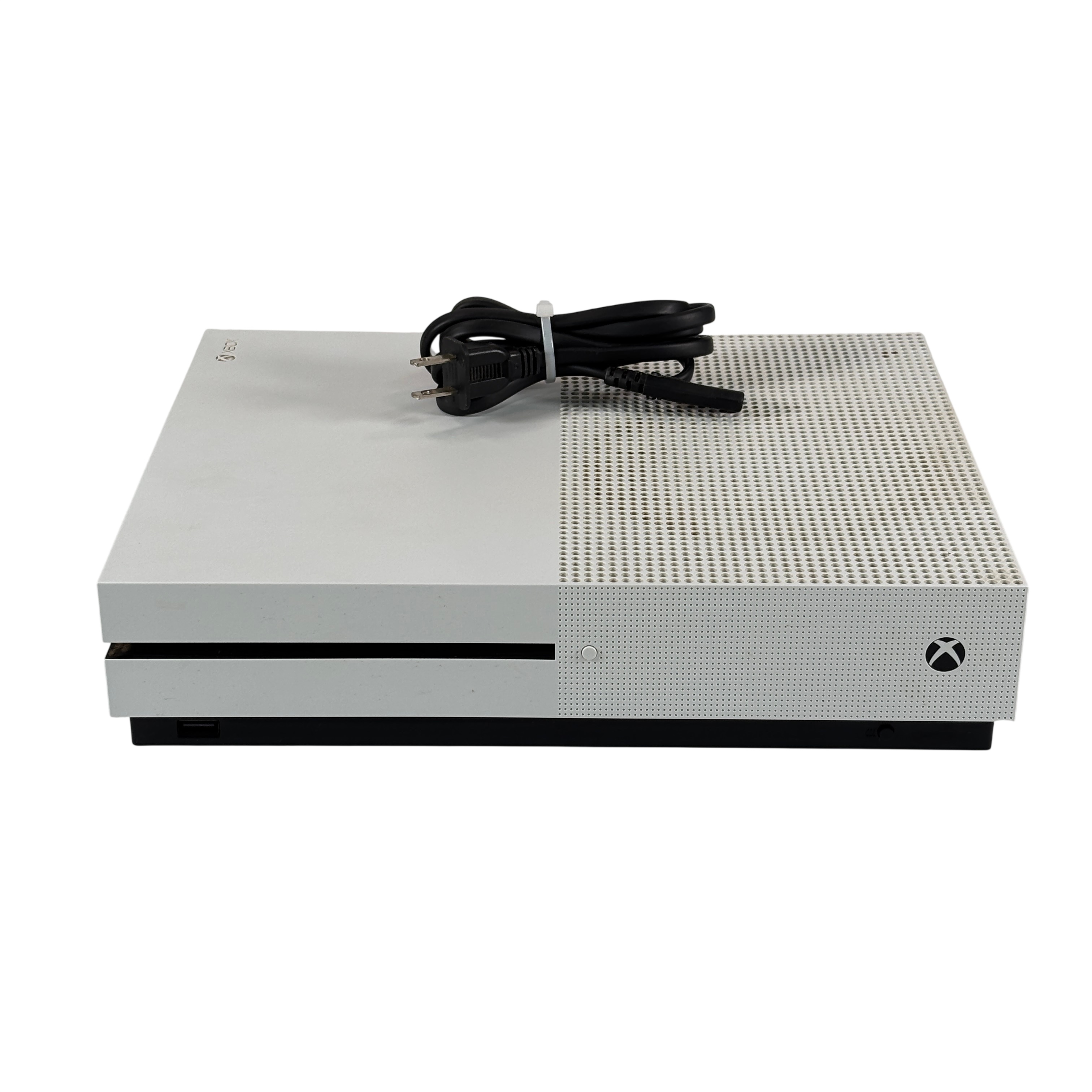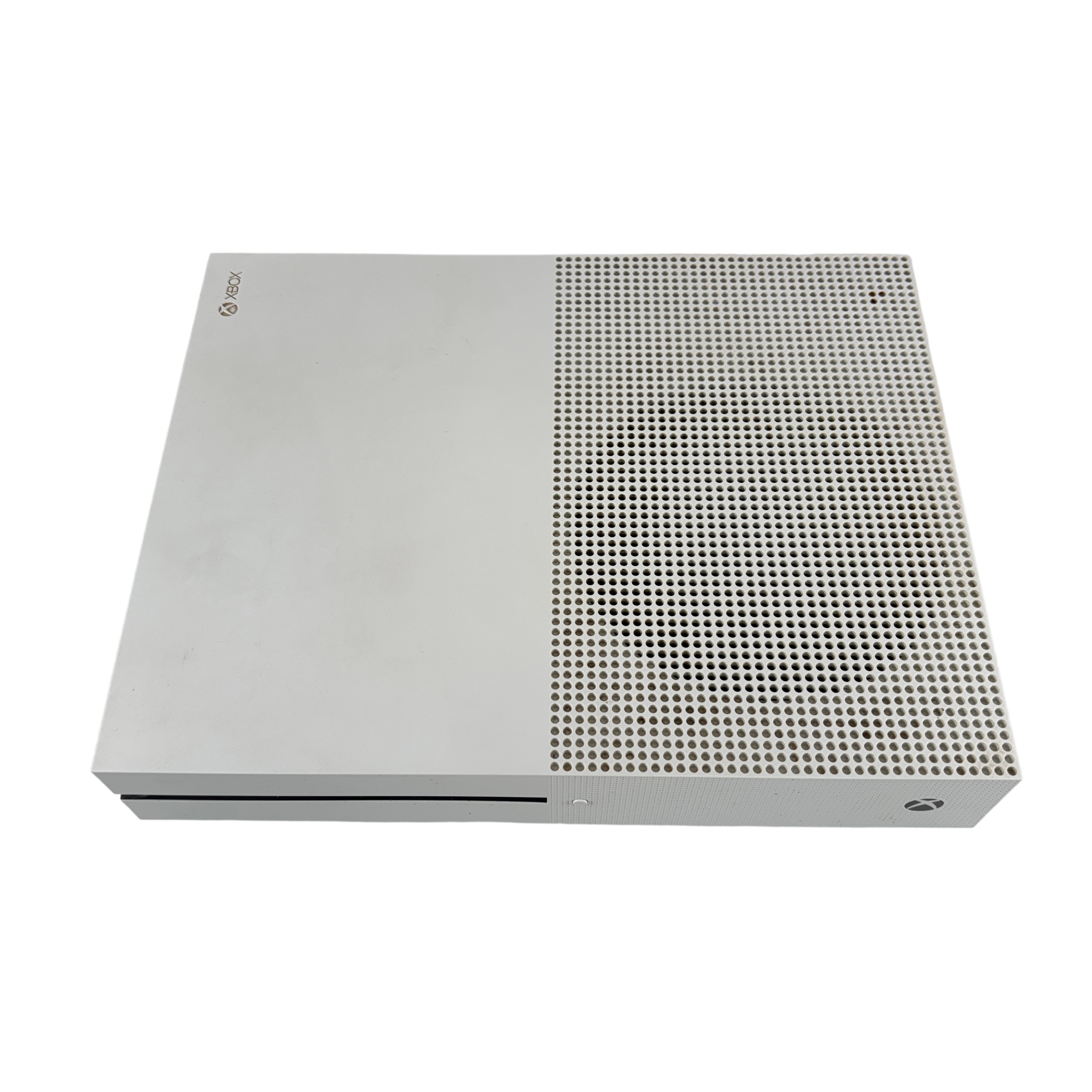 The Microsoft Xbox One S in white delivers powerful entertainment and gaming in one sleek console. Enjoy 4K Ultra HD streaming and Blu-ray playback with vibrant HDR visuals. Store and play your favorite titles with 500GB of storage, and experience smooth online multiplayer with Xbox Live. Compatible with a wide library of games from Xbox One, Xbox 360, and the original Xbox, the Xbox One S offers a versatile gaming experience for players and media lovers alike.
