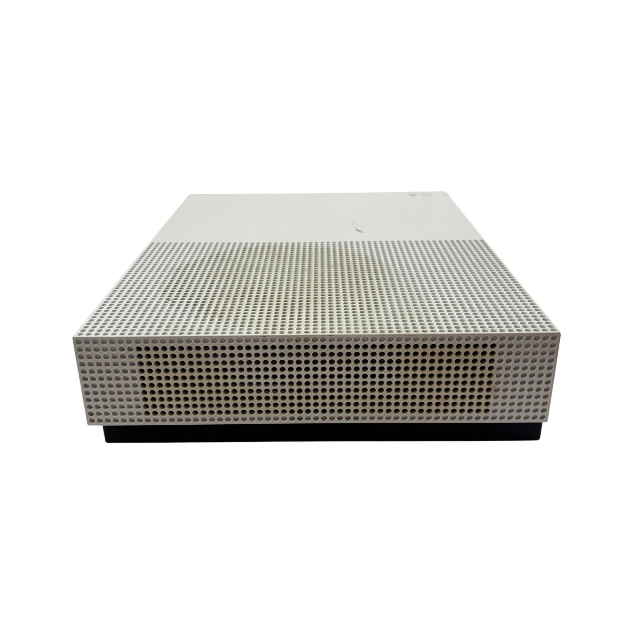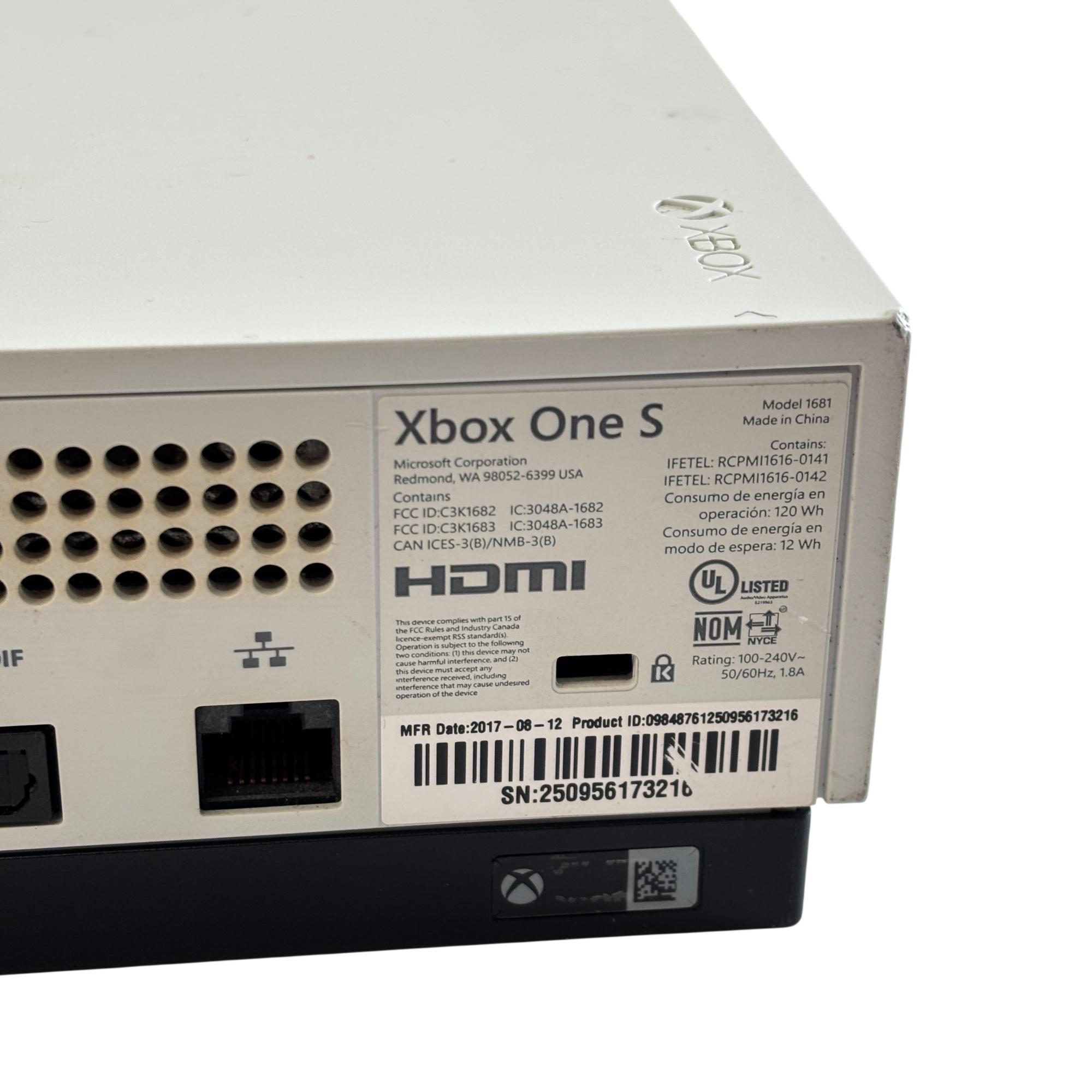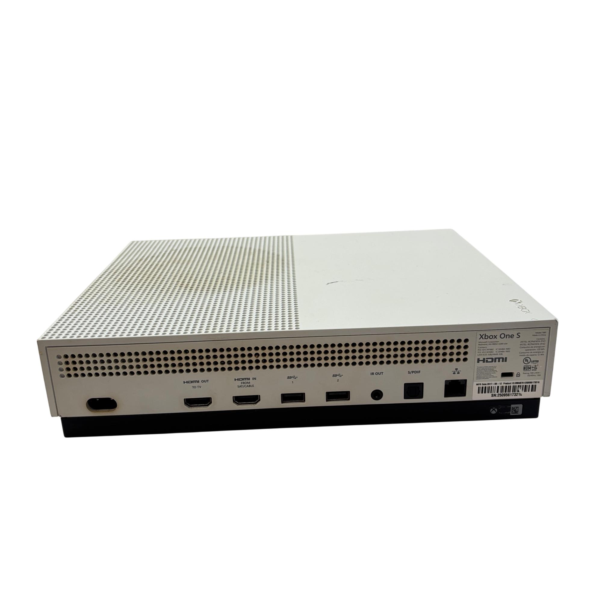 Microsoft Xbox One S 500GB Model 1681 White Video Game Console offers a sleek, compact design with a distinctive white finish and black accents. This model features reliable 500GB storage capacity for games and media, delivering smooth performance for immersive gaming experiences. Equipped with efficient cooling and connectivity ports, it supports a wide range of Xbox One titles and multimedia functions.