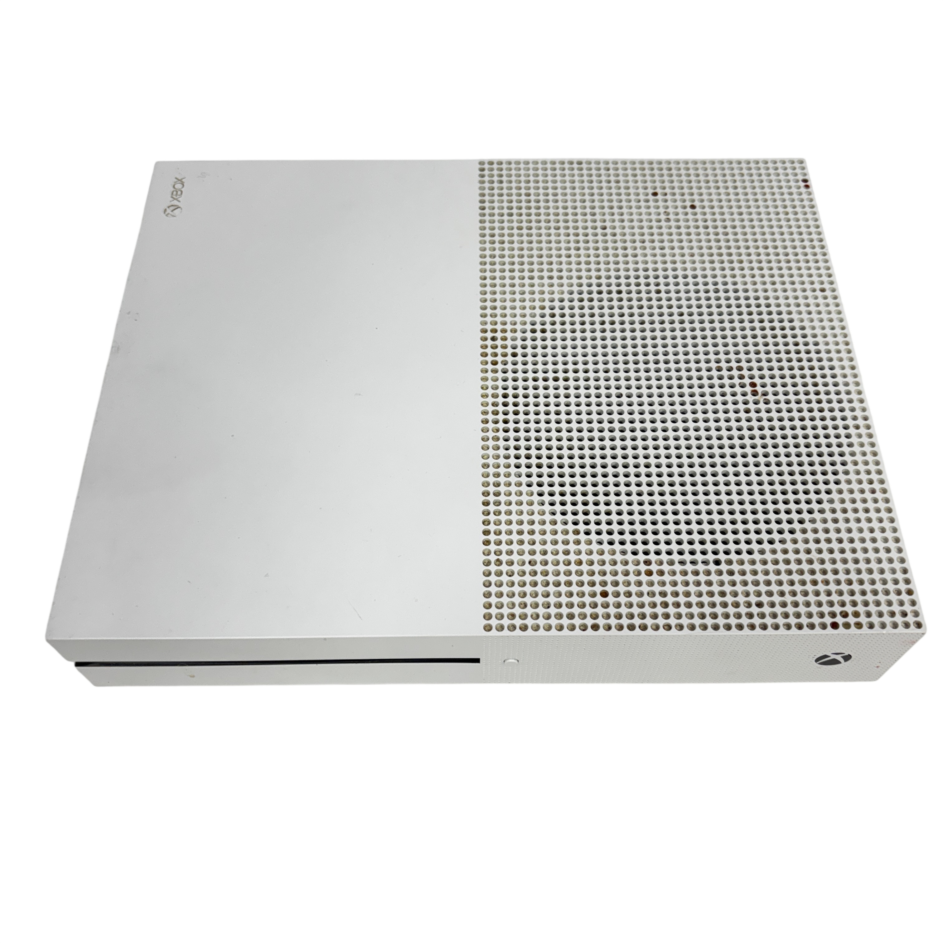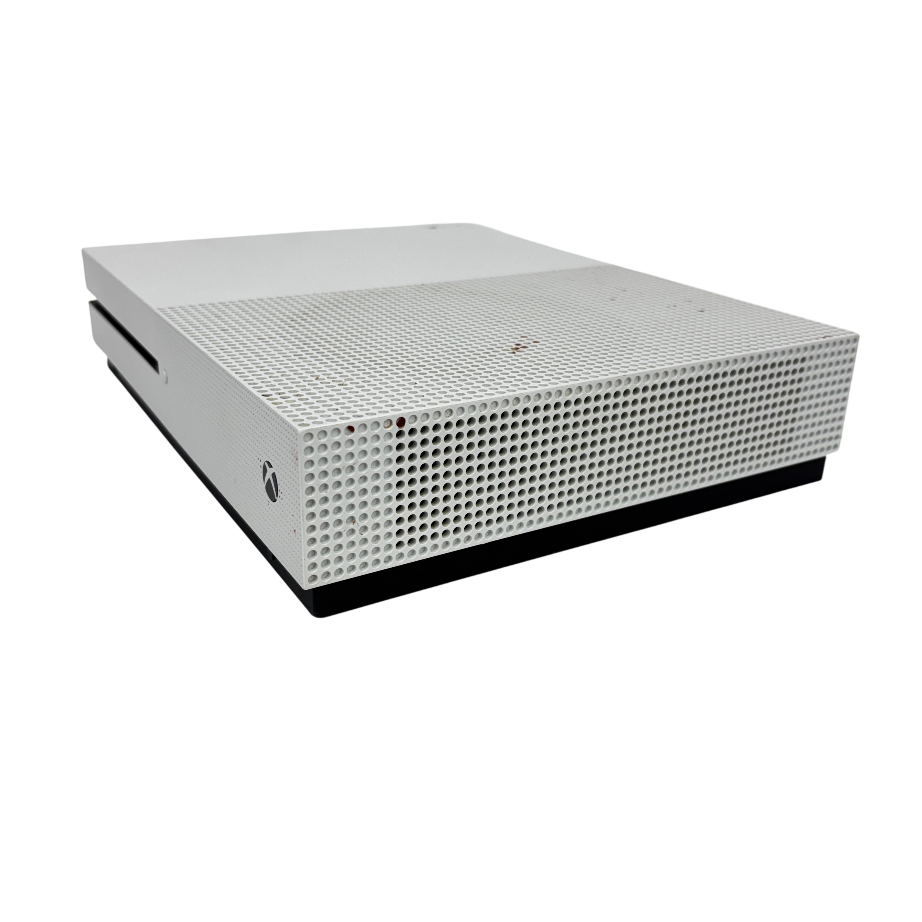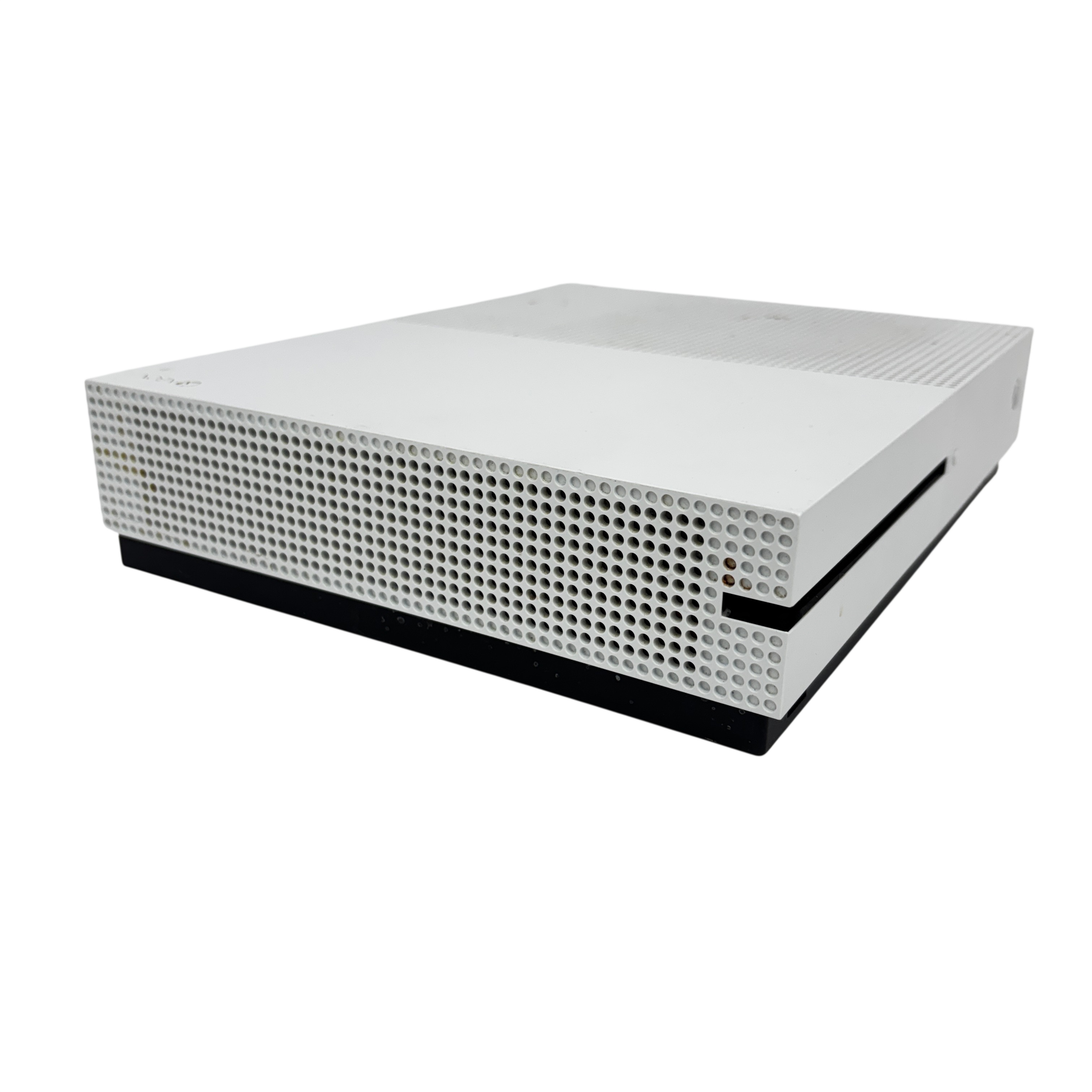This Microsoft Xbox One S offers a sleek white design with 4K video streaming and HDR support, providing an immersive entertainment experience. This set includes a blue controller and power cable, making it ready for gaming right out of the box. With 500GB of storage, you can enjoy a vast library of games and media.