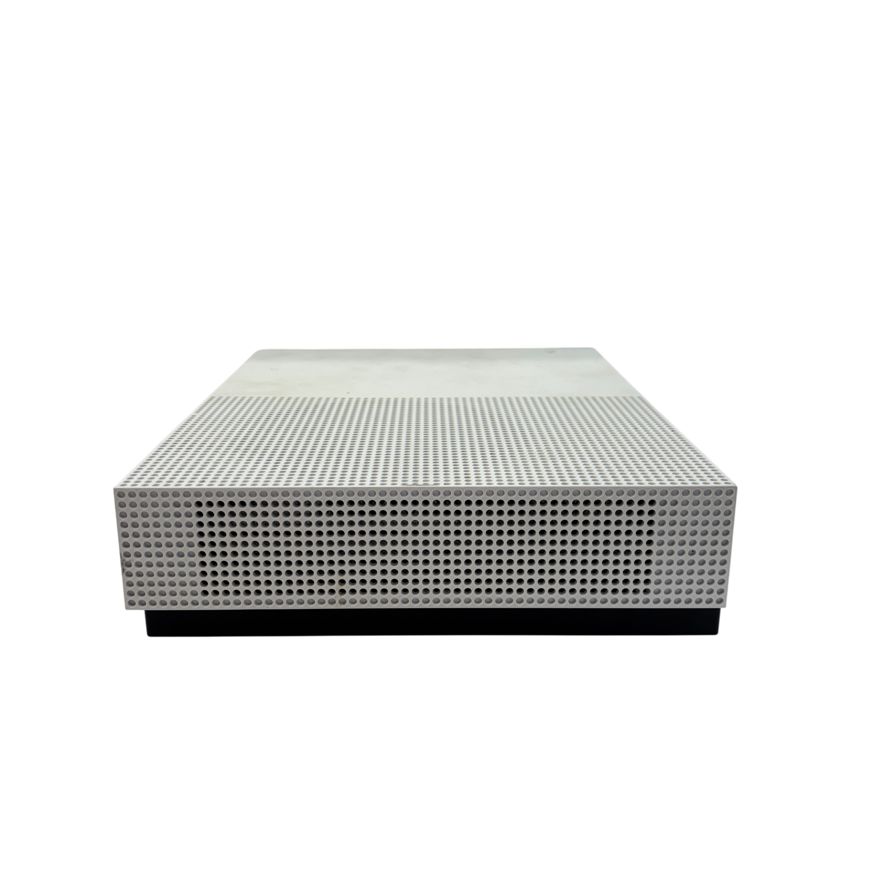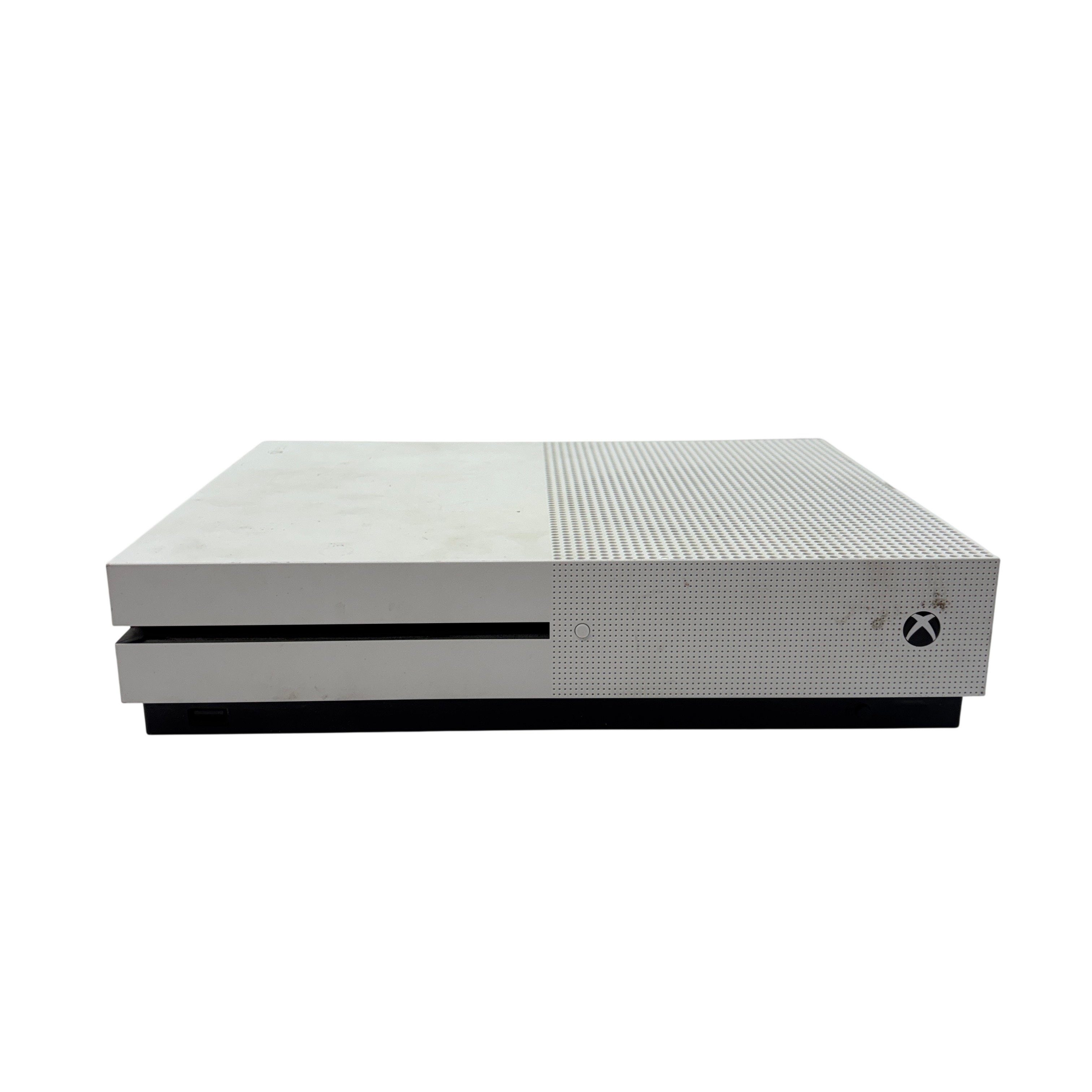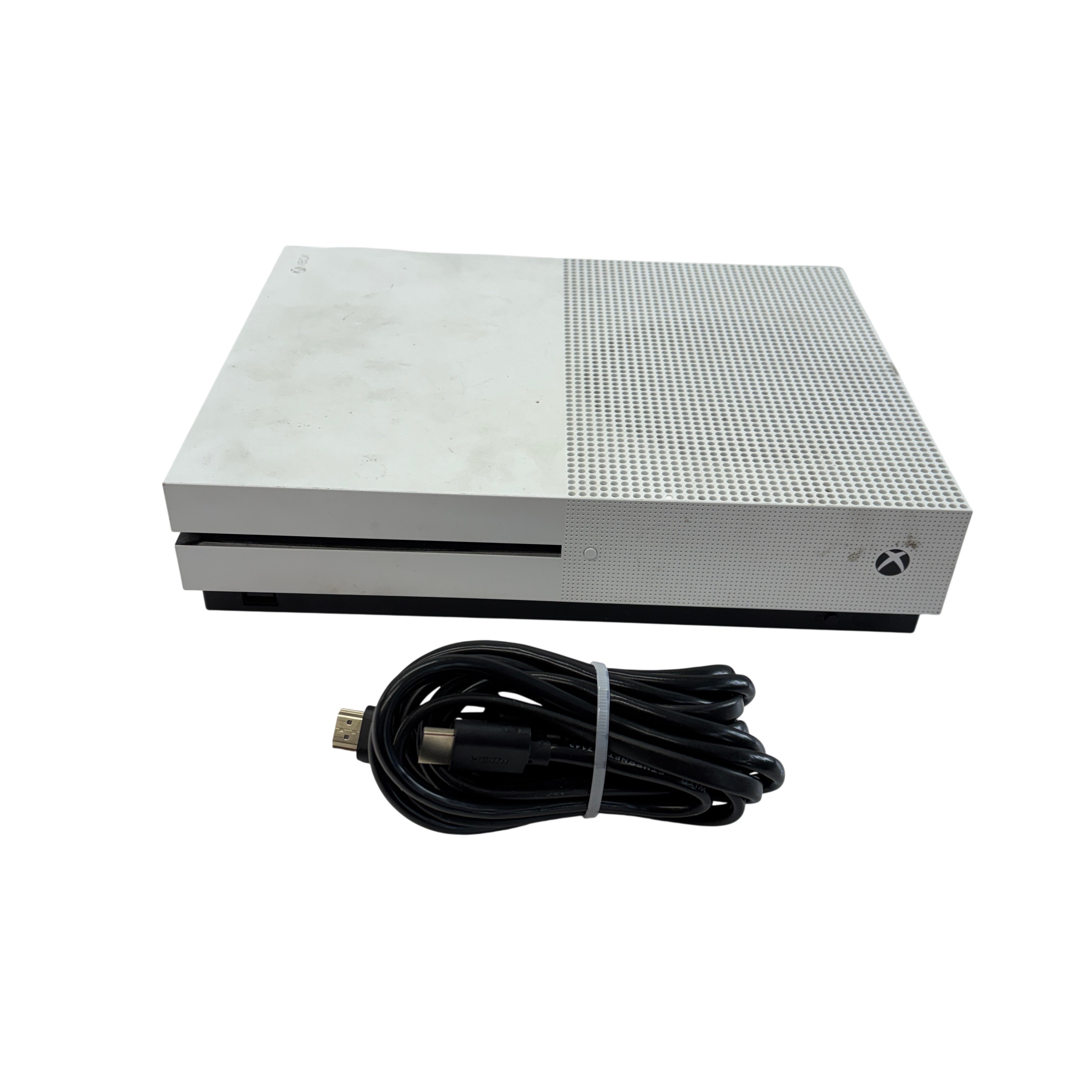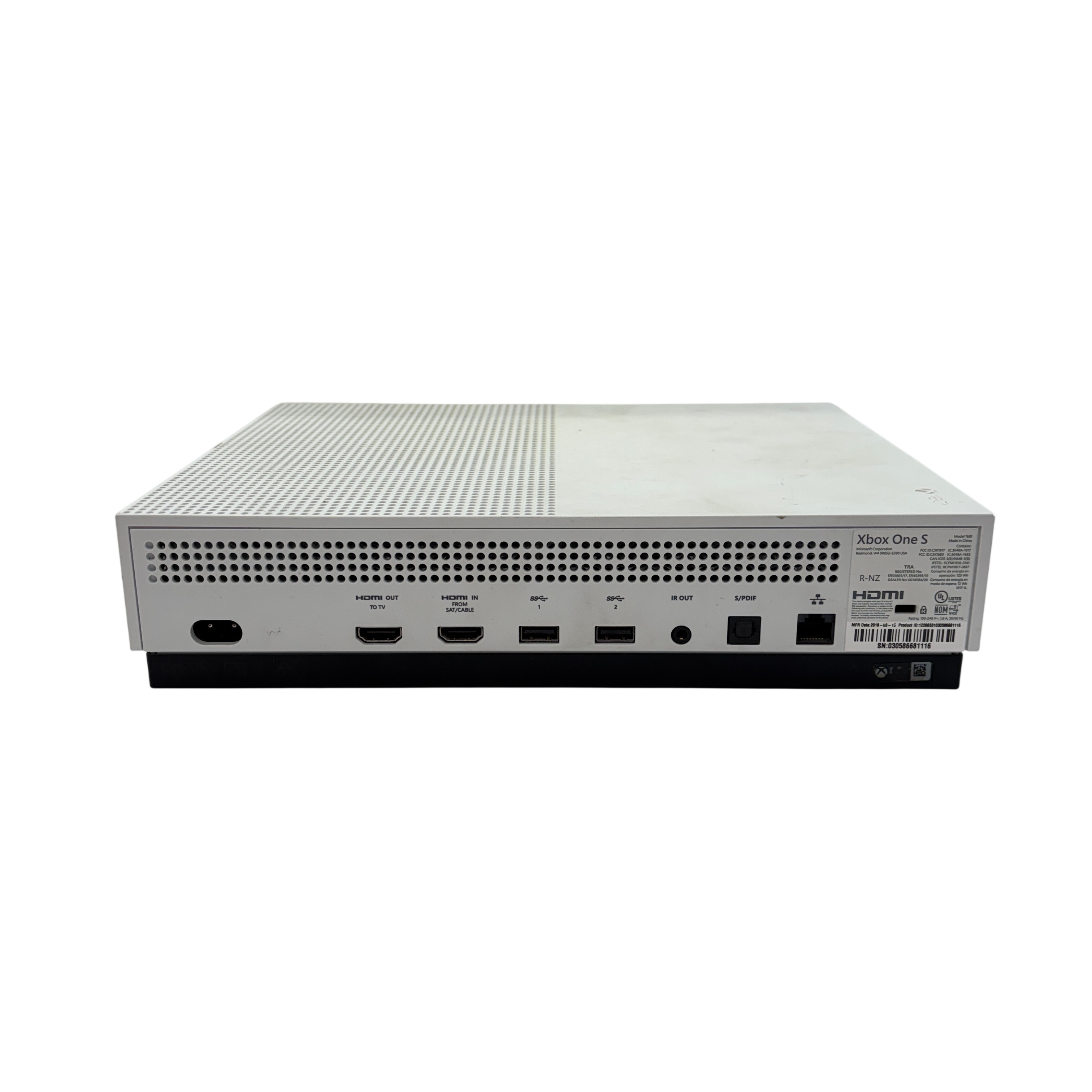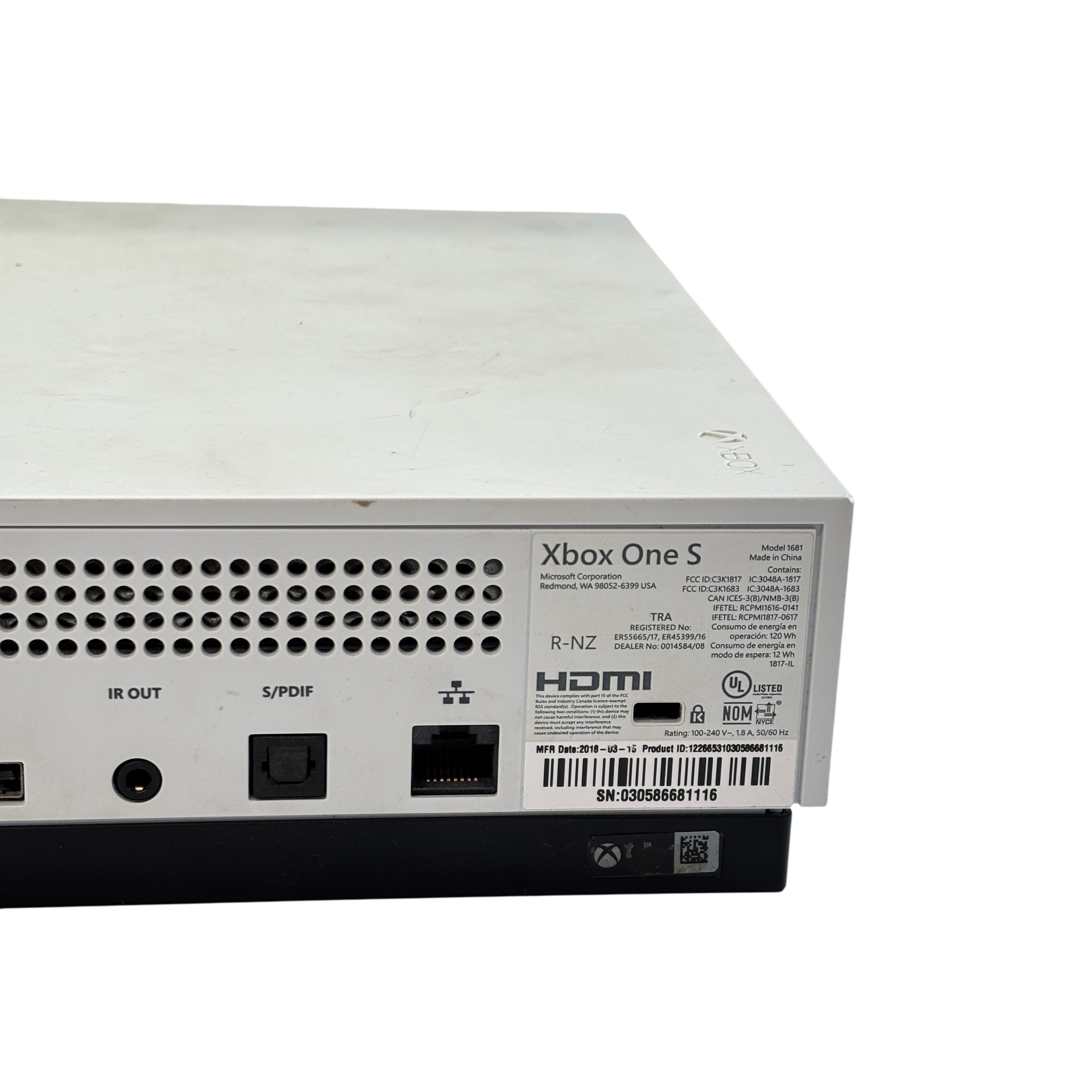 Microsoft Xbox One S Model 1681 is a versatile video game console featuring 4K Ultra HD video playback and HDR support for enhanced gaming and media experiences. This model includes HDMI output, S/PDIF audio, Ethernet connectivity, and IR out for expanded control options. The console measures approximately 2.5 inches in height, 10.8 inches in width, and 11.6 inches in length, weighing about 6.4 pounds. Included with the console is an HDMI cable, making it ready for setup and play in your entertainment system.