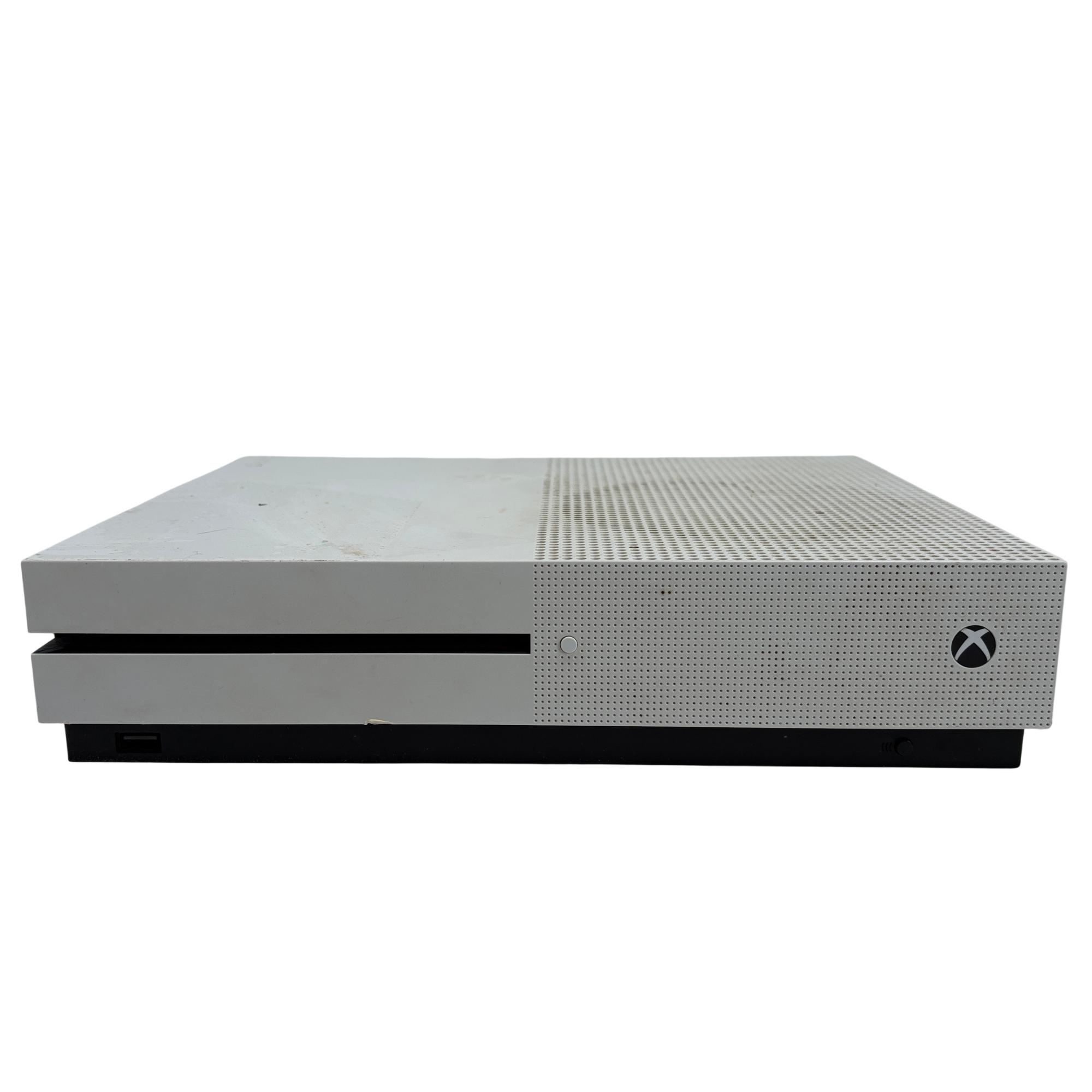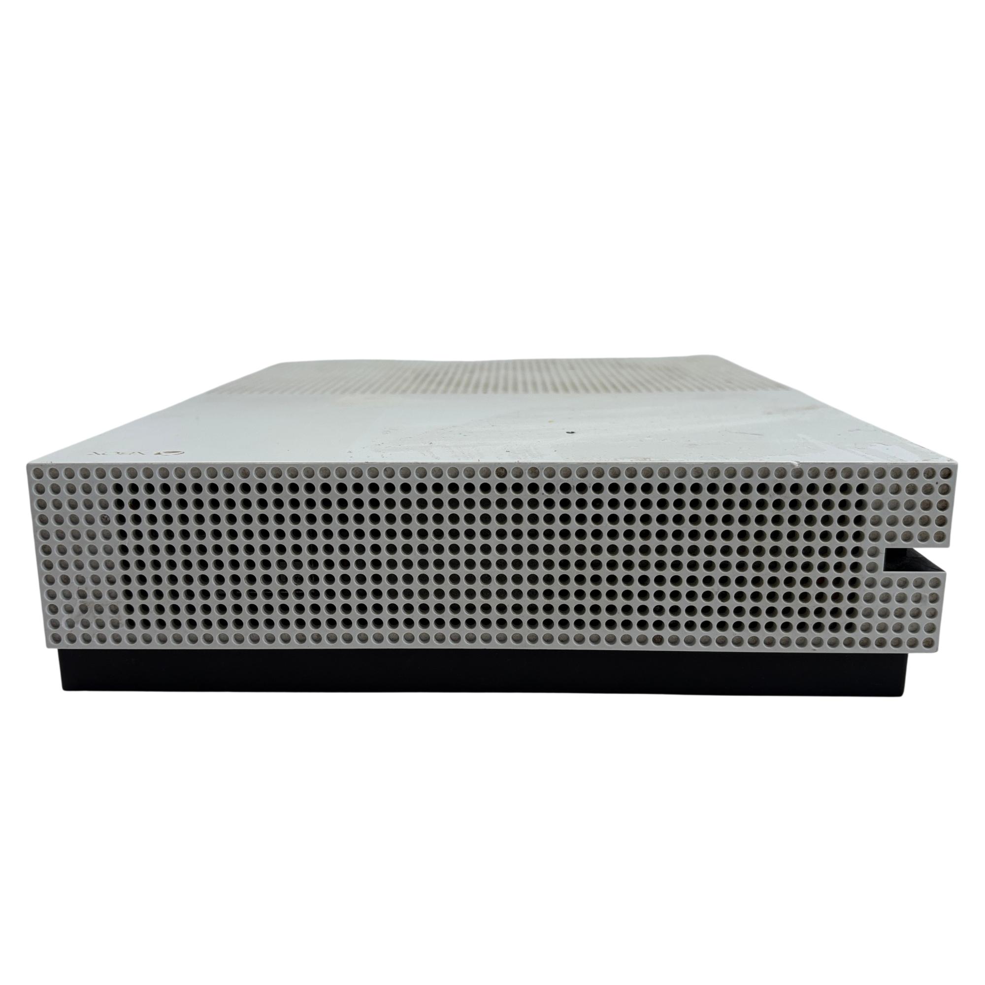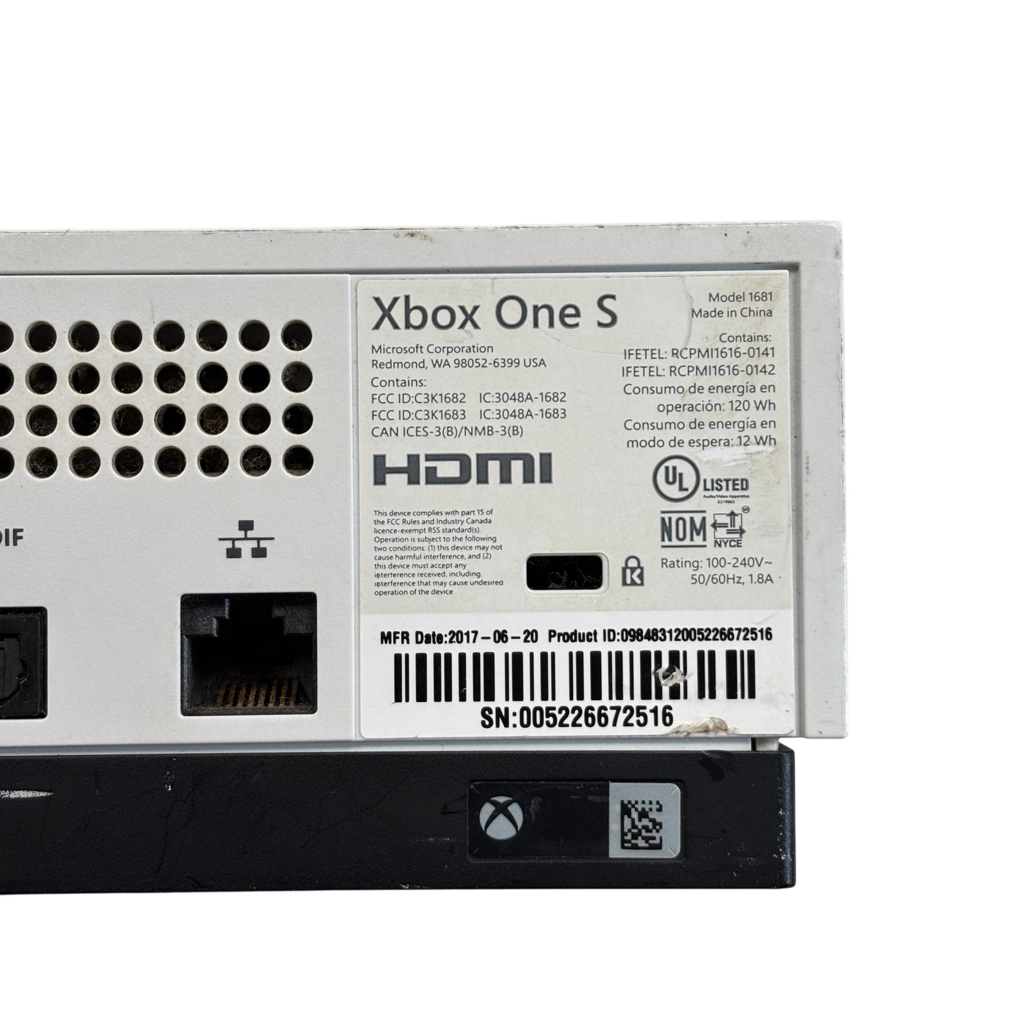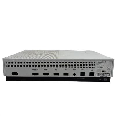 The Microsoft Xbox One S 1681 is a sleek white video game console featuring a compact design and improved hardware performance for an enhanced gaming experience. It supports HDMI connectivity and operates with efficient power consumption, making it suitable for various entertainment setups. This model includes a wireless controller designed for ergonomic comfort and responsive gameplay.