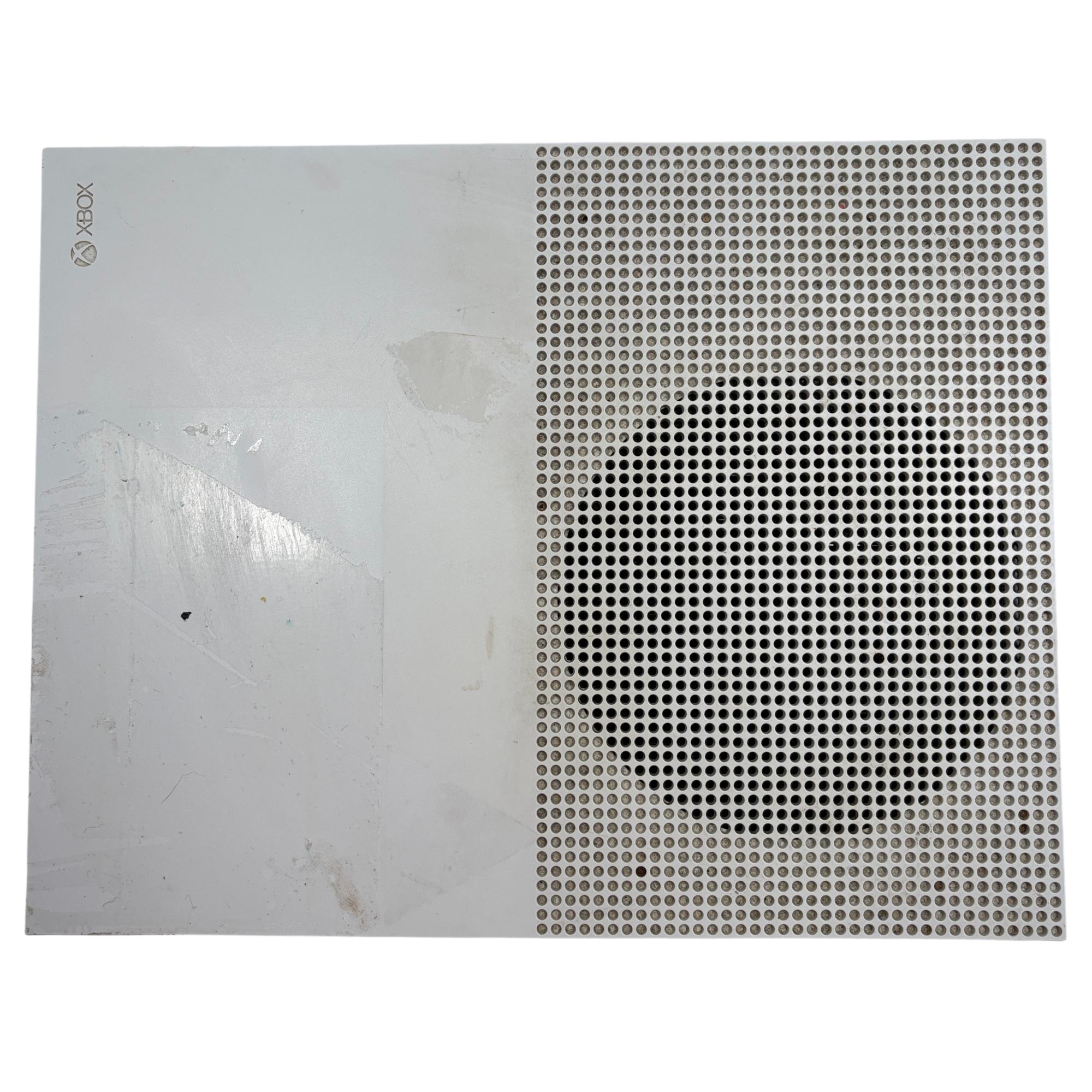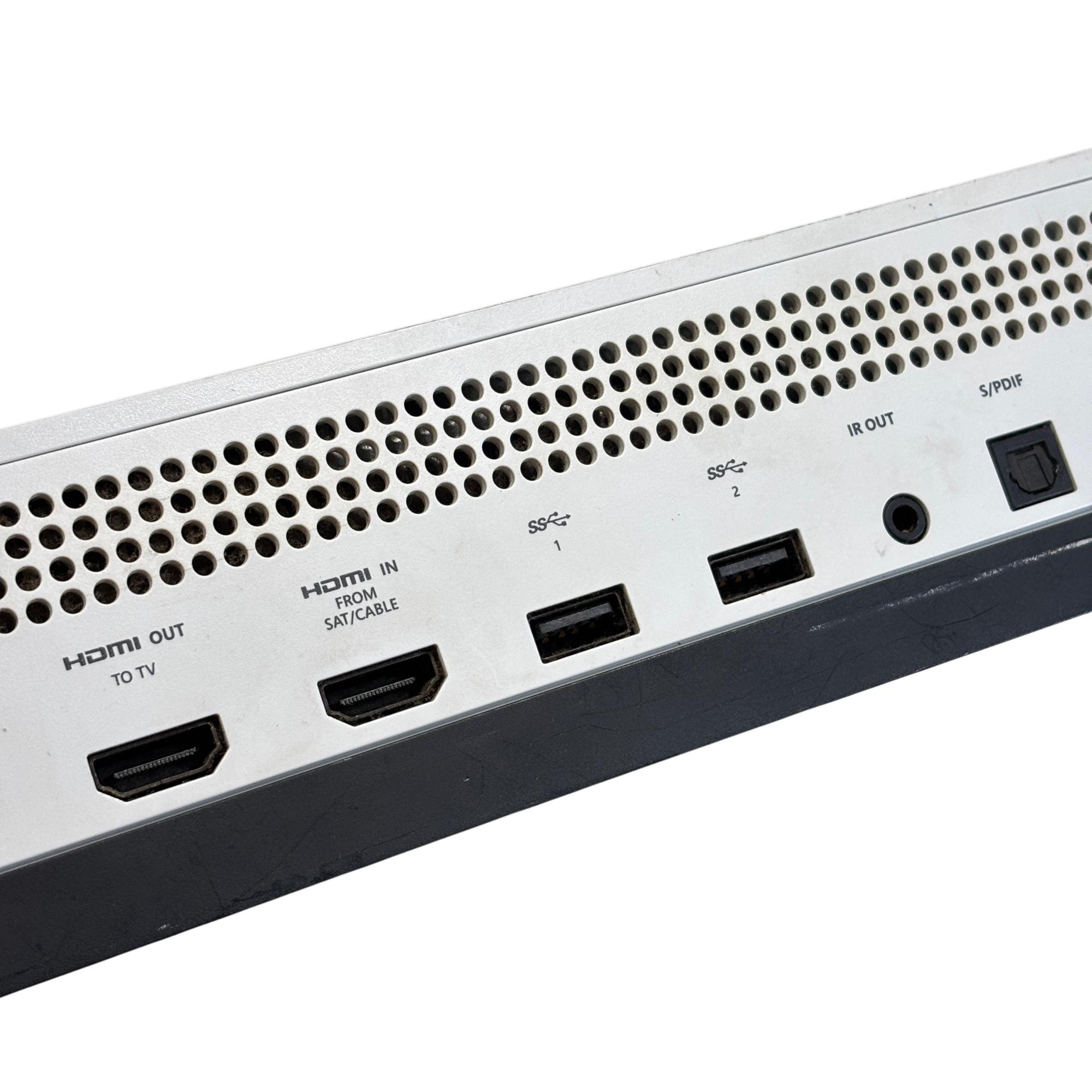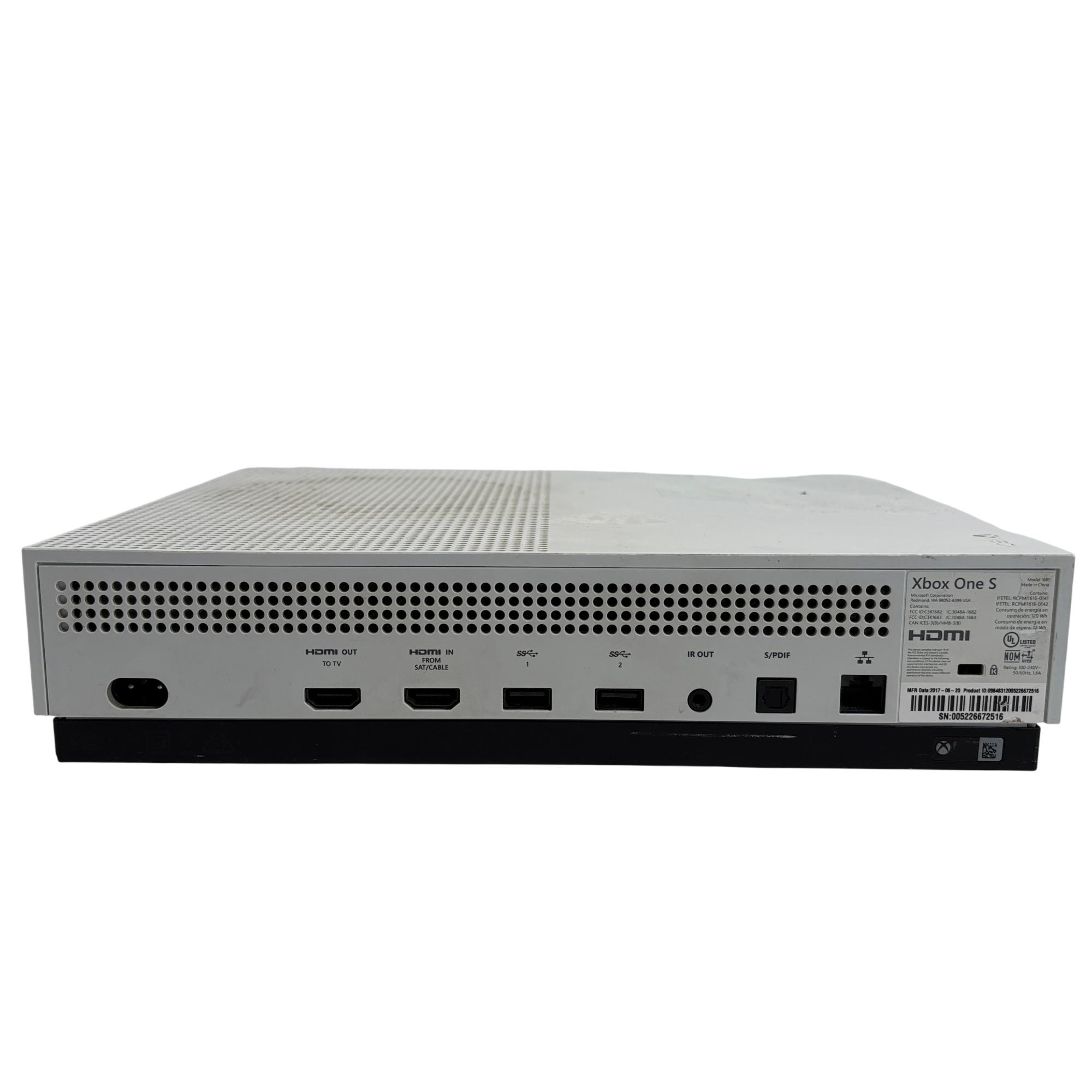 The Microsoft Xbox One S 1681 is a sleek white video game console featuring a compact design and improved hardware performance for an enhanced gaming experience. It supports HDMI connectivity and operates with efficient power consumption, making it suitable for various entertainment setups. This model includes a wireless controller designed for ergonomic comfort and responsive gameplay.