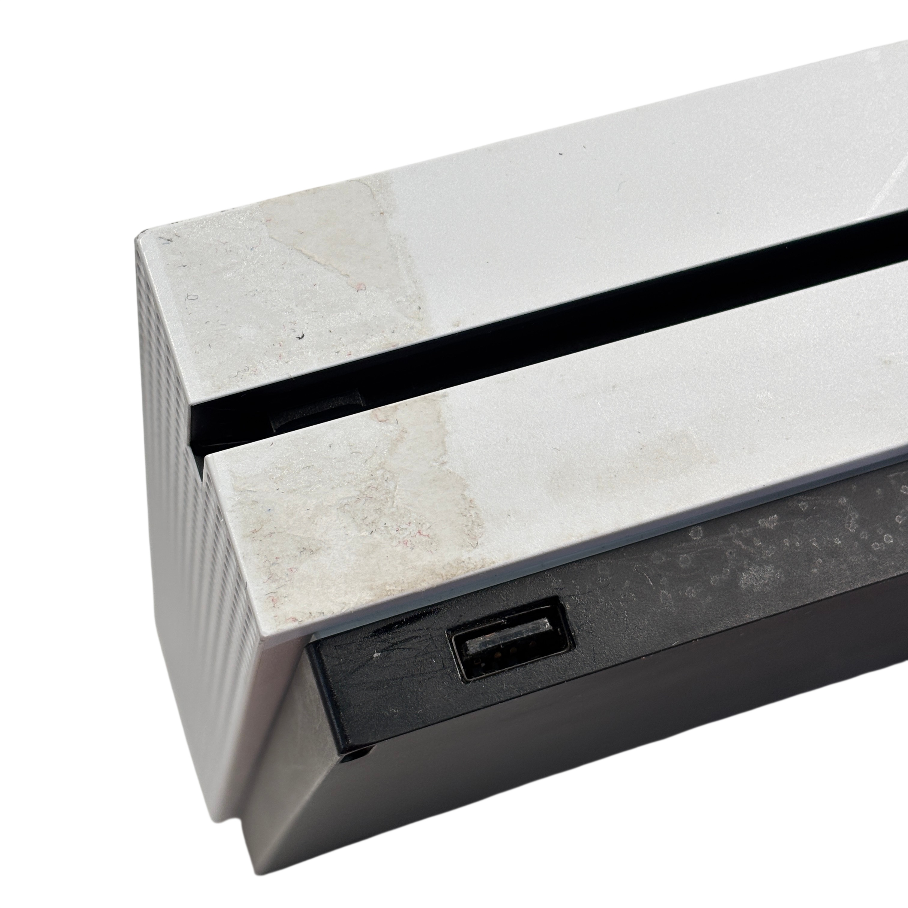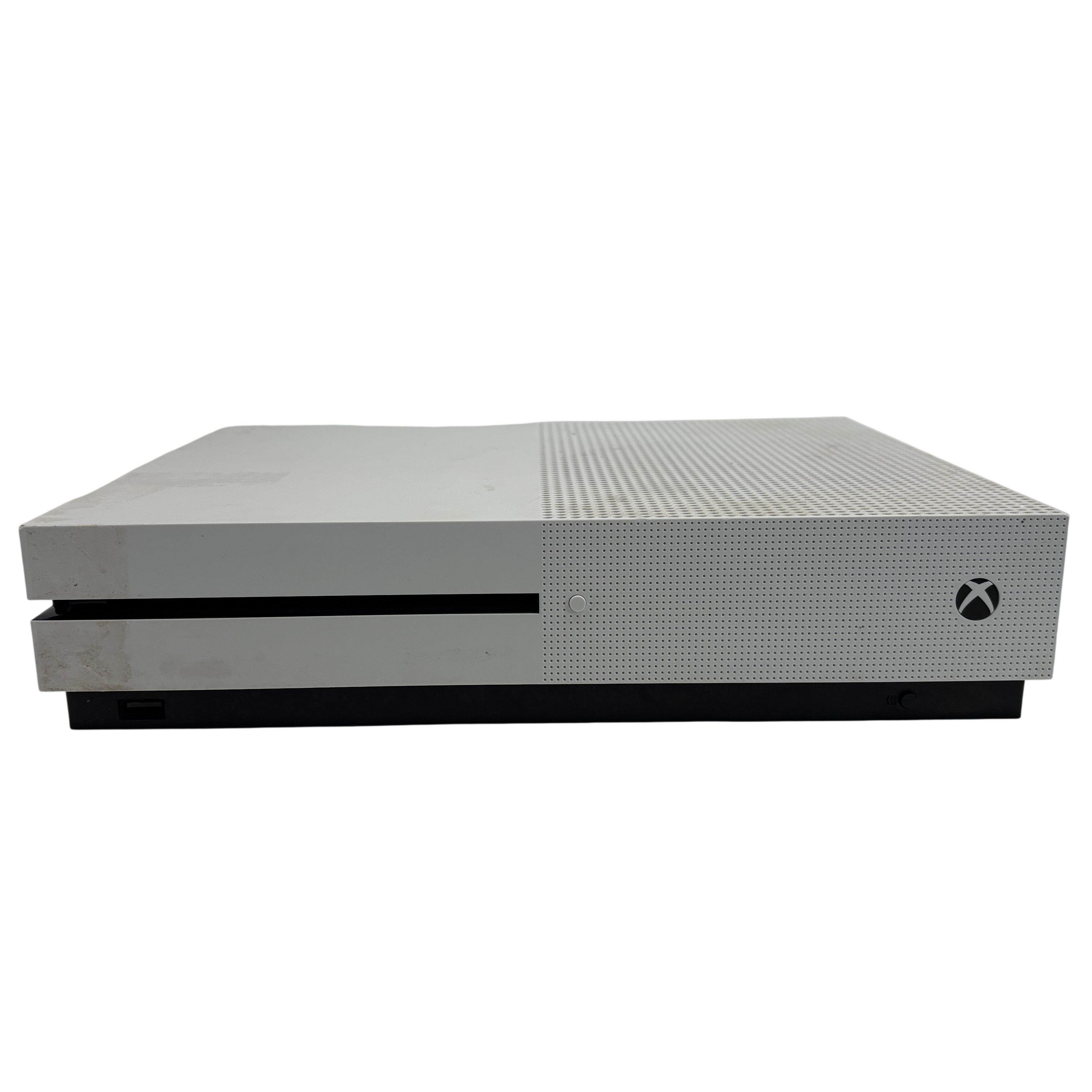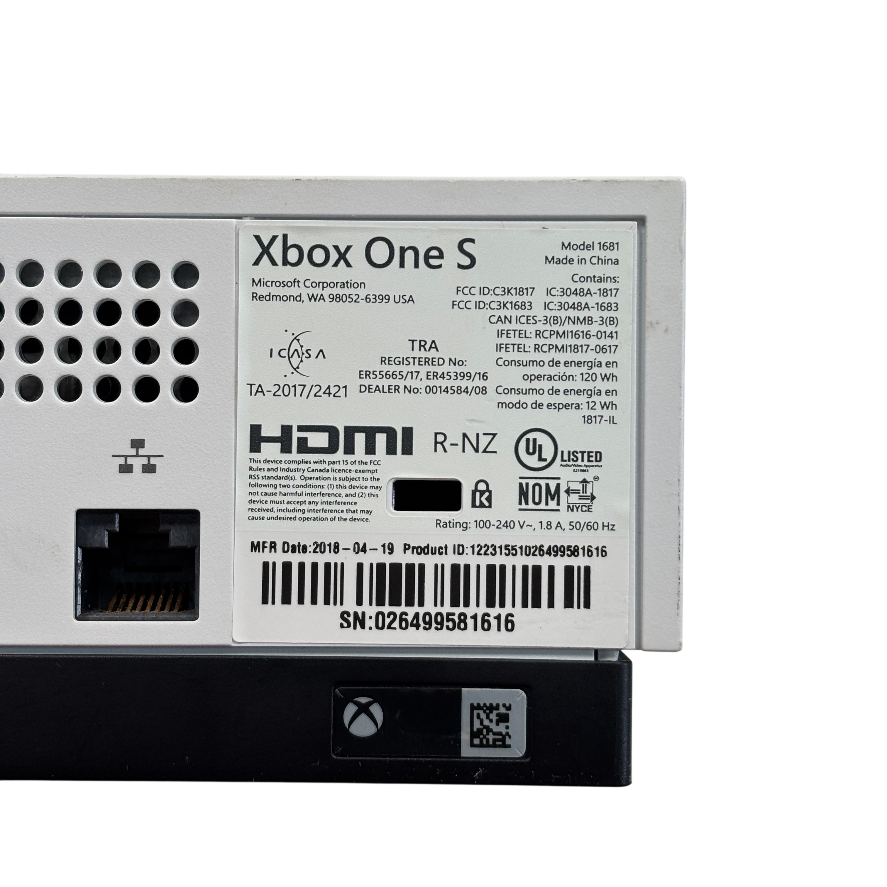 The Microsoft Xbox One S 1681 is a compact and efficient video game console designed for immersive gaming experiences. This package includes the Xbox One S console along with a wireless controller, power cable, and HDMI cable for easy setup. The console supports HDMI input and output, USB ports, and features 4K streaming capabilities. Its sleek white design fits well in any entertainment setup, offering reliable performance for gaming and media streaming.