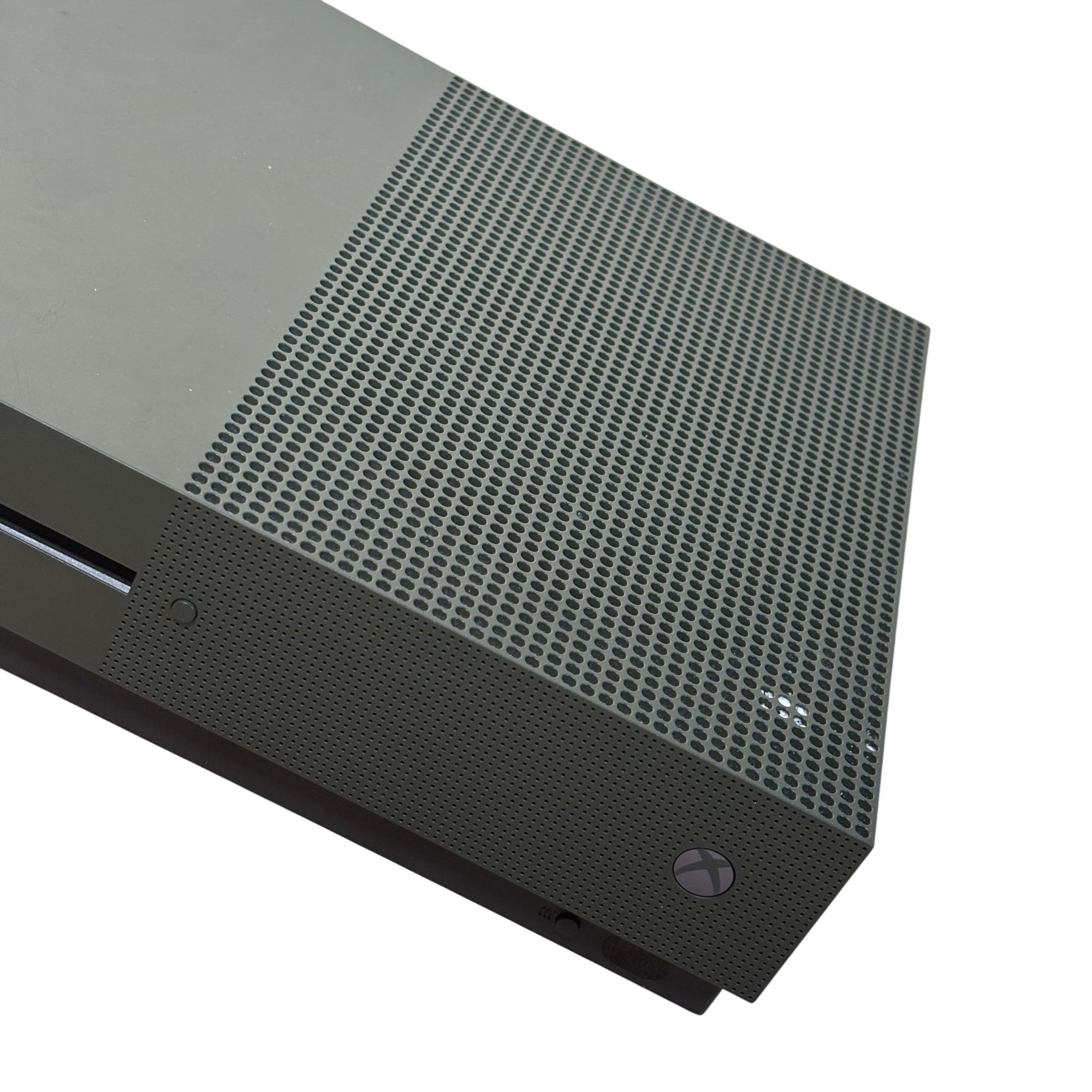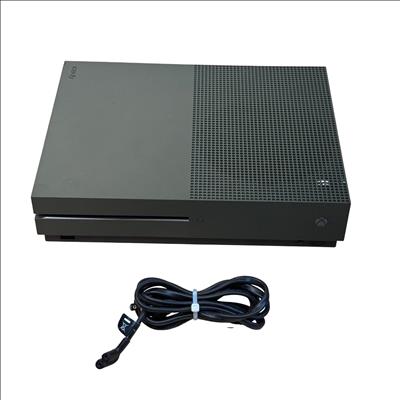 Microsoft Xbox One S 1681 500GB Gaming Console in Storm Gray offers a sleek and compact design ideal for immersive gaming. This model features enhanced 4K video streaming capabilities and HDR support for vibrant visuals, making it a versatile entertainment system. Its efficient hardware delivers smooth gameplay and quick load times to elevate your gaming experience.