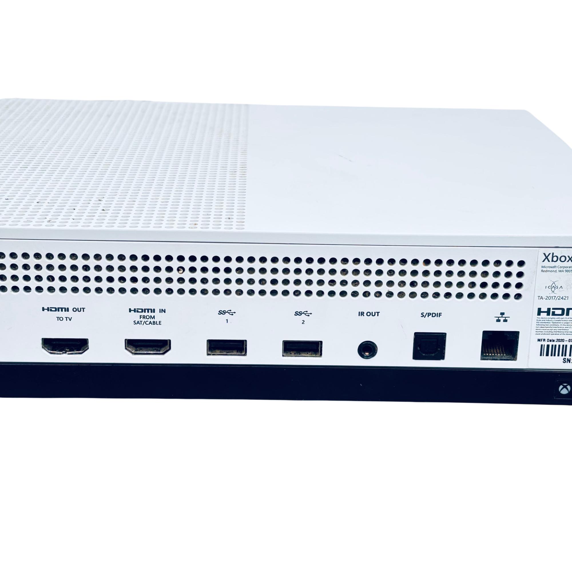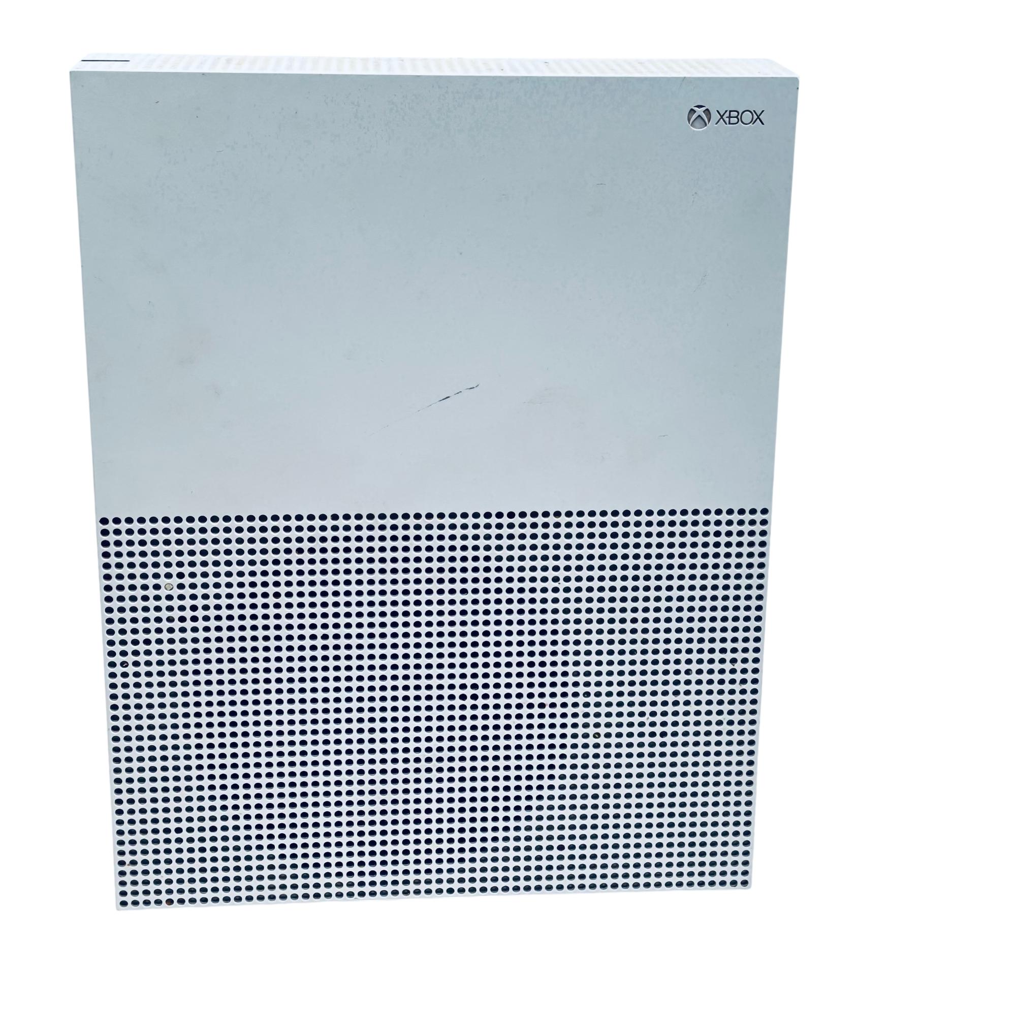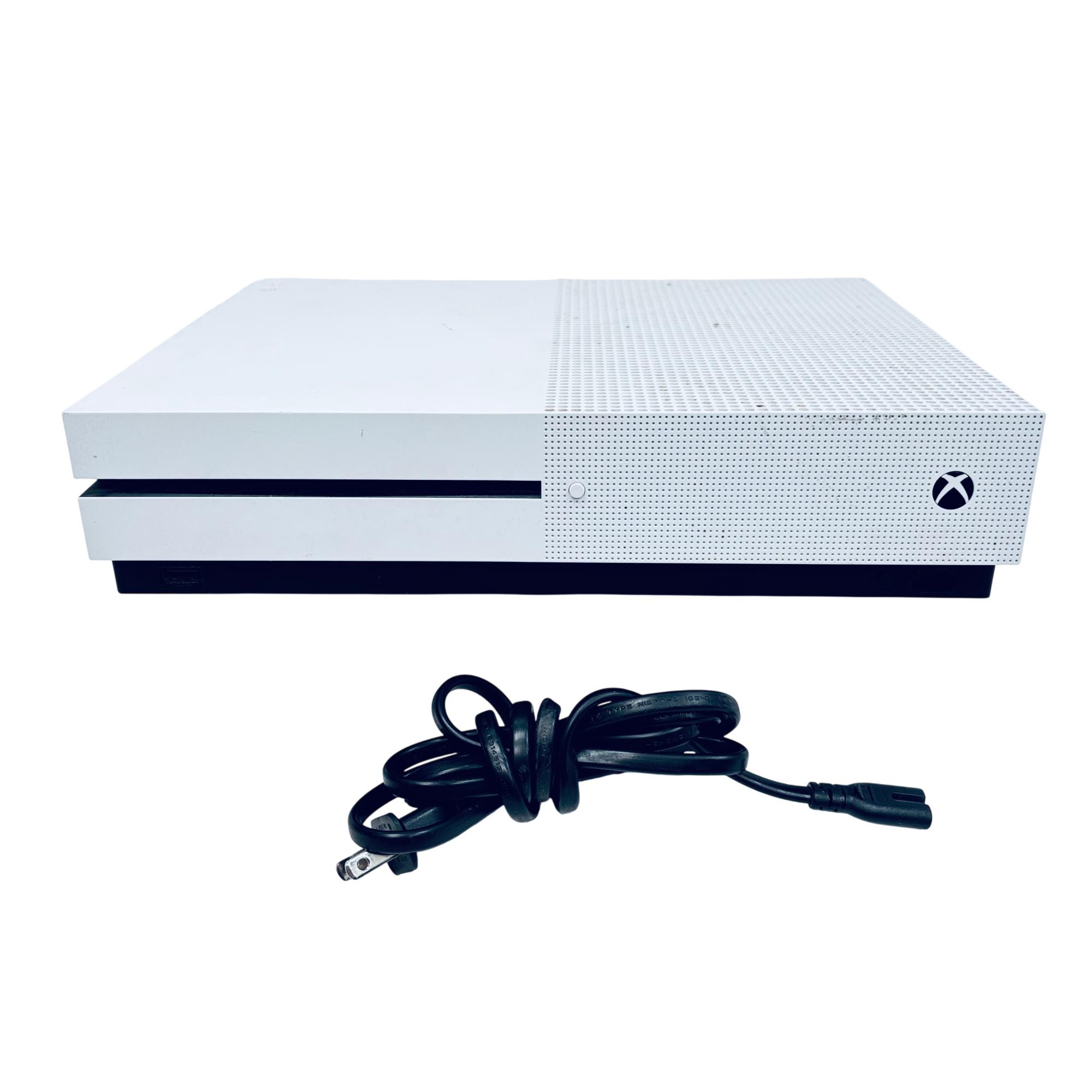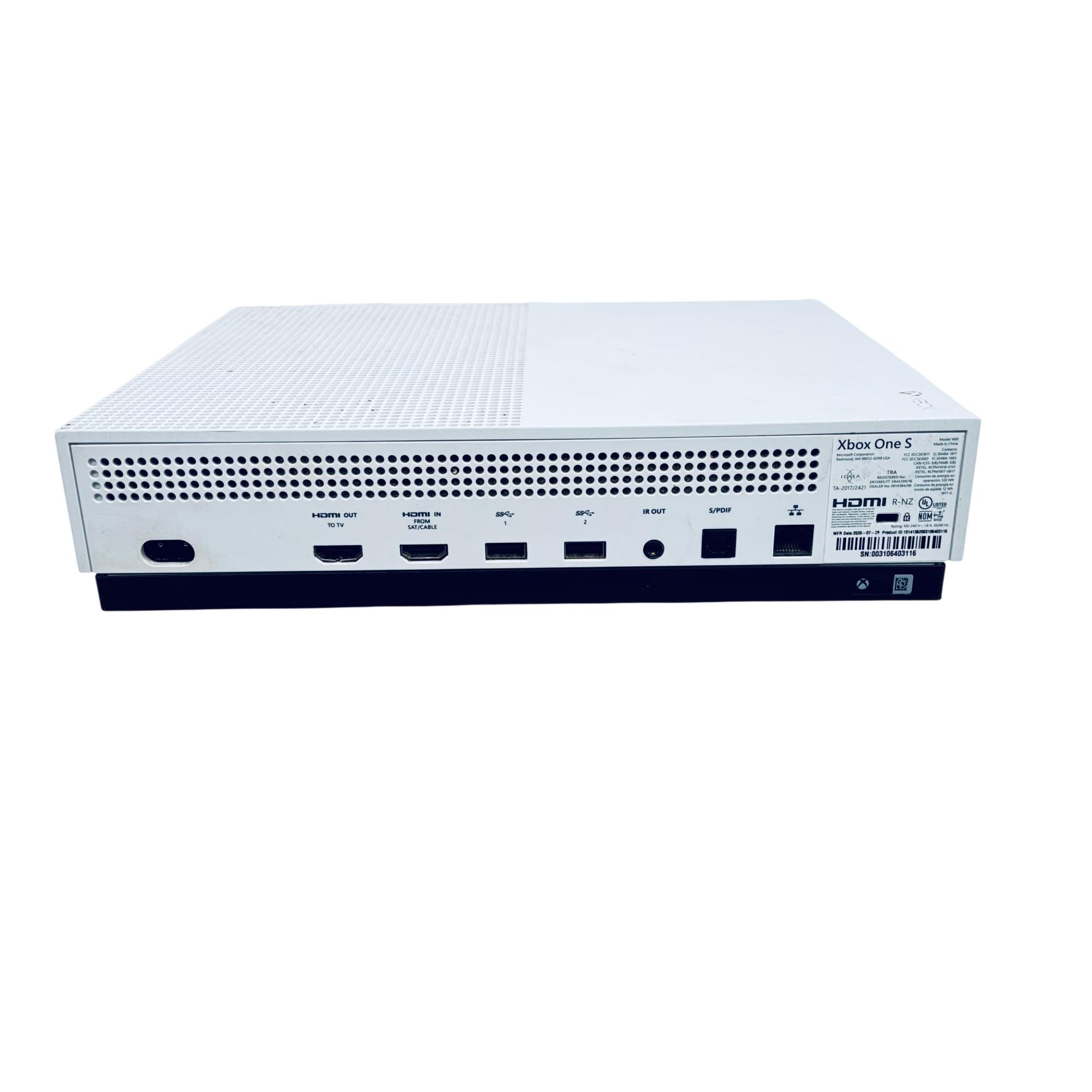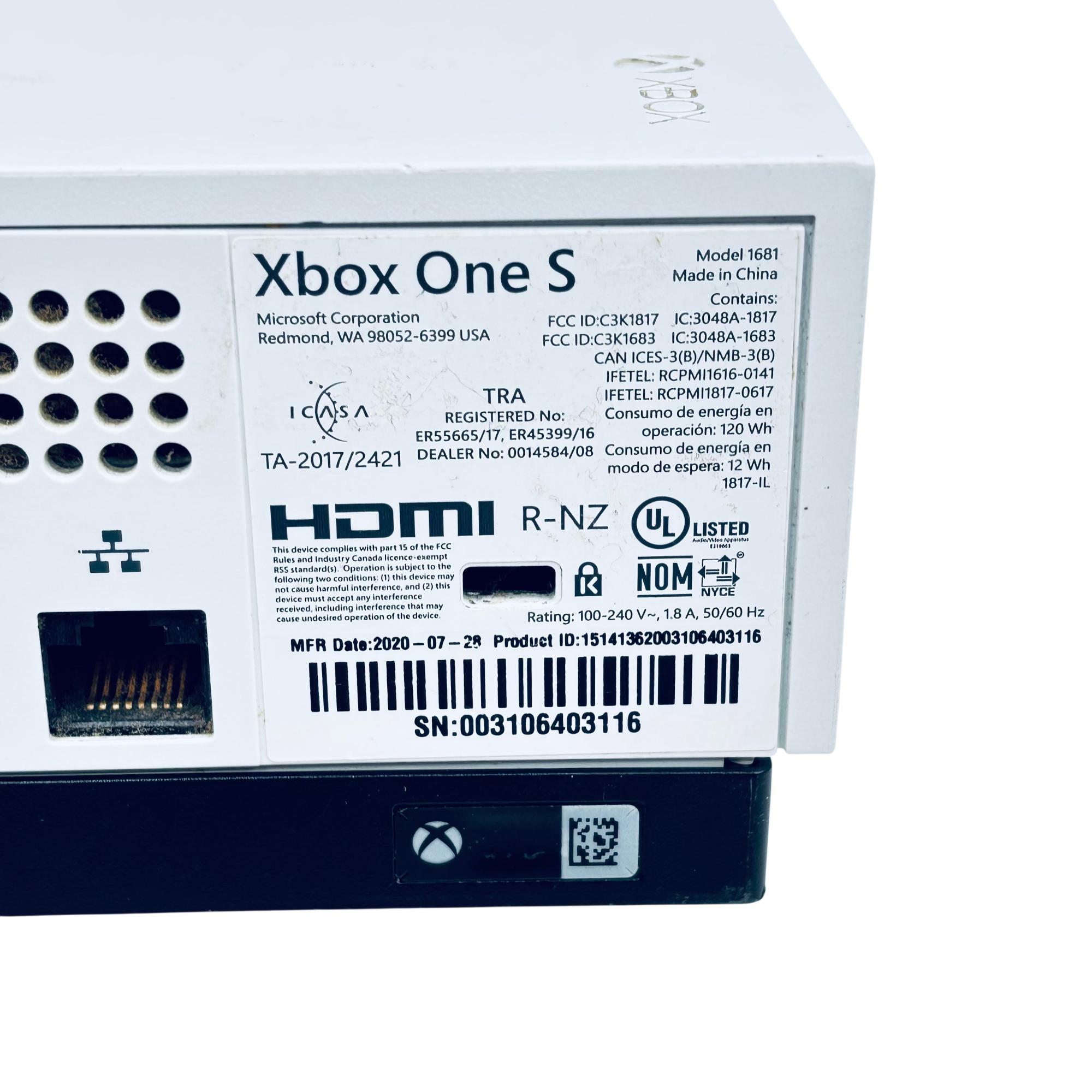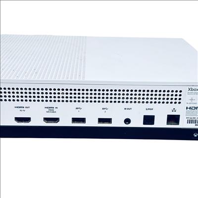 Microsoft Xbox One S 1TB Console Model 1681 offers a sleek white design combined with powerful gaming performance. This console supports high-definition gaming and streaming with an integrated HDMI output and energy-efficient operation. Its compact form factor features ventilation grills to ensure optimal cooling during extended gameplay sessions.