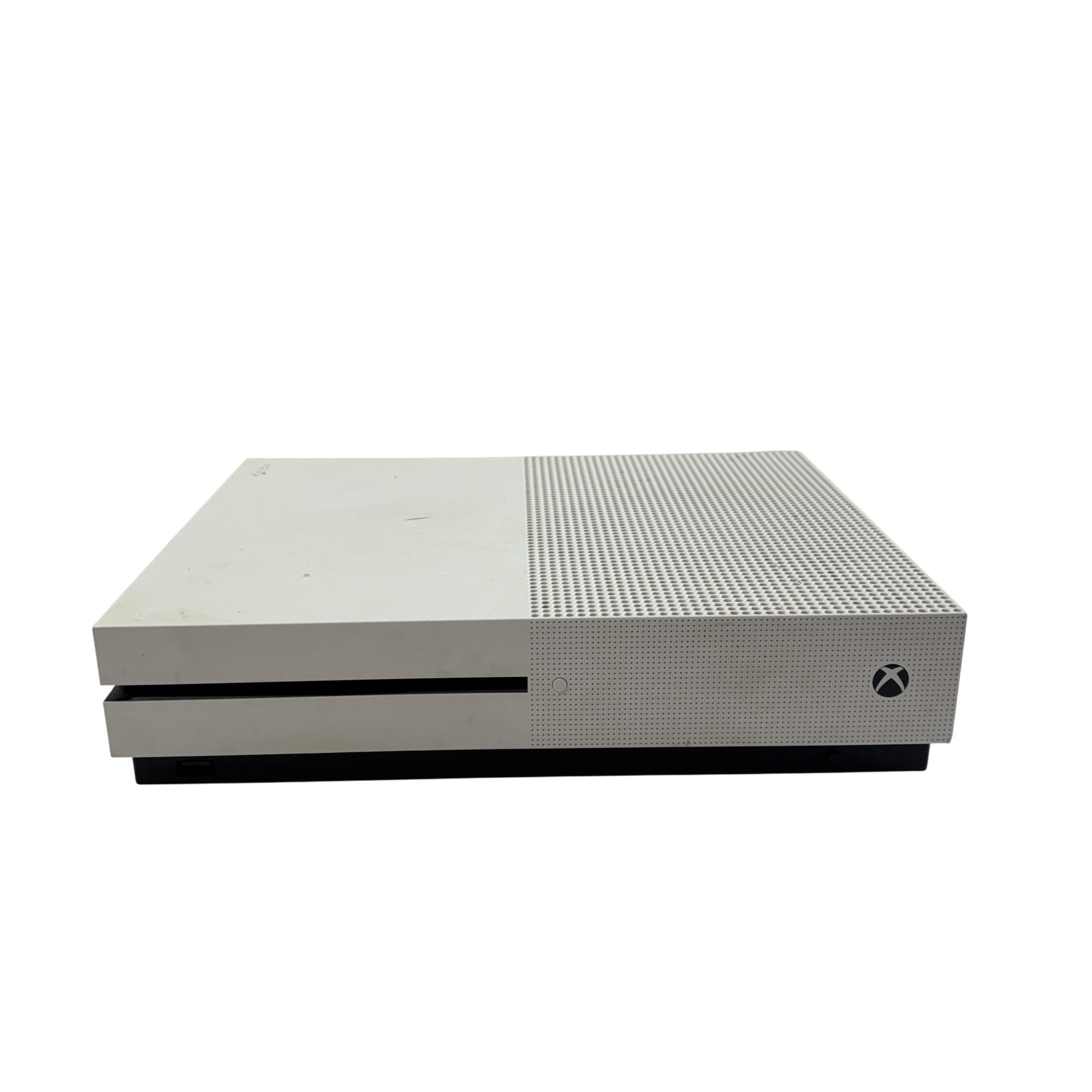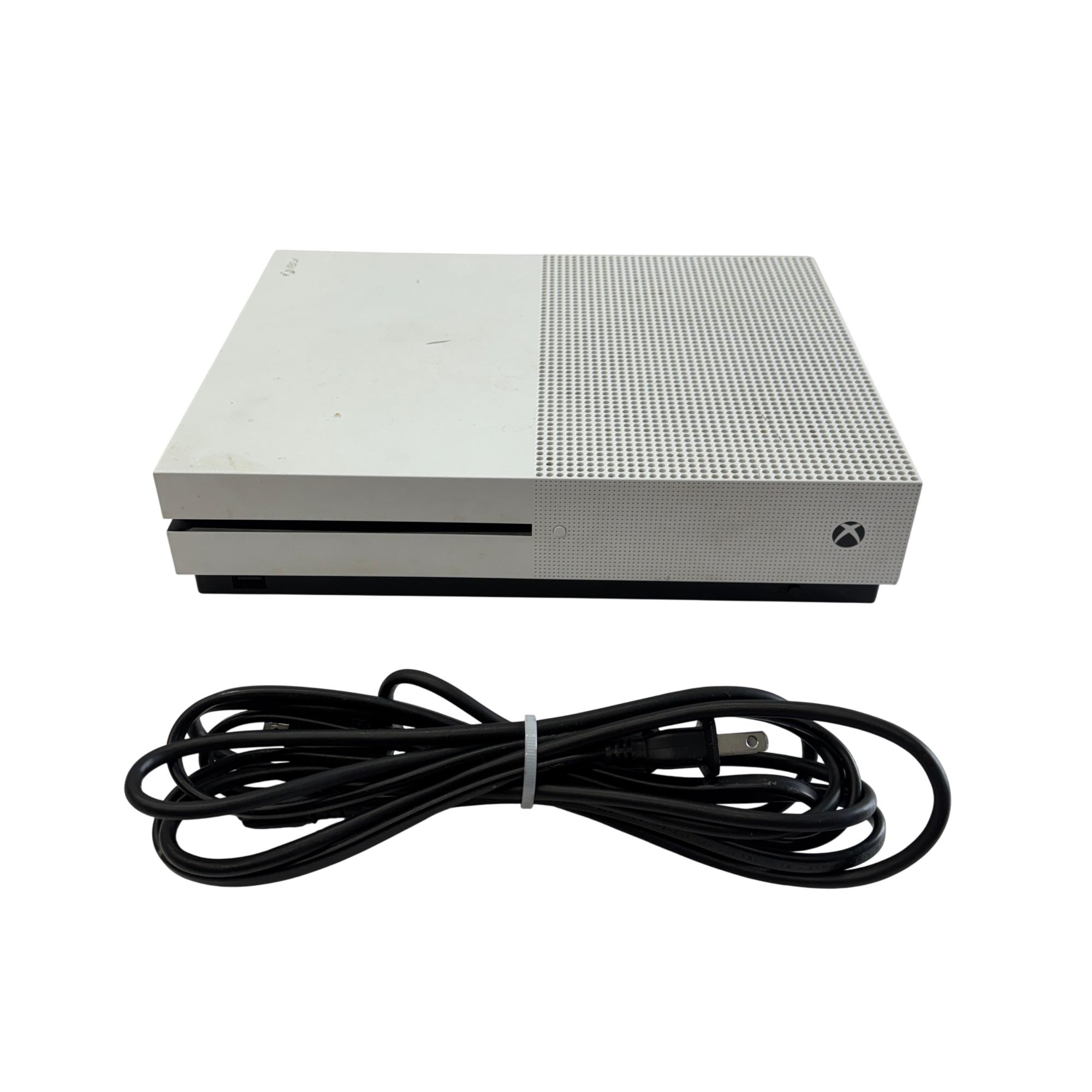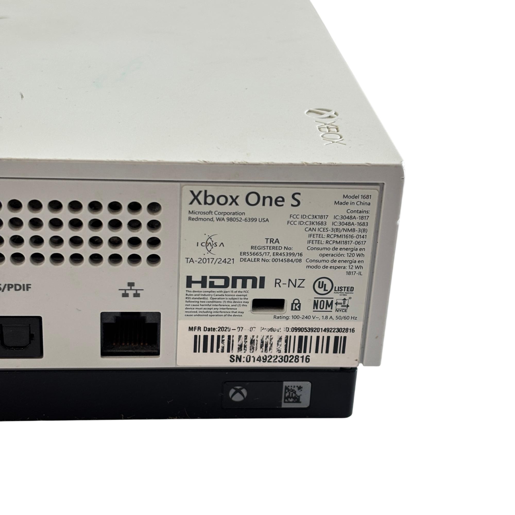 Microsoft Xbox One S 500GB Model 1681 White Gaming Console with Power Cord features a sleek white rectangular design with ventilation holes and a compact form factor optimized for home entertainment setups. This console supports a wide range of gaming titles and multimedia applications, offering seamless performance and connectivity through its included power cord. Its minimalist design and versatile functionality make it suitable for both casual and dedicated gamers seeking reliable gameplay experience.