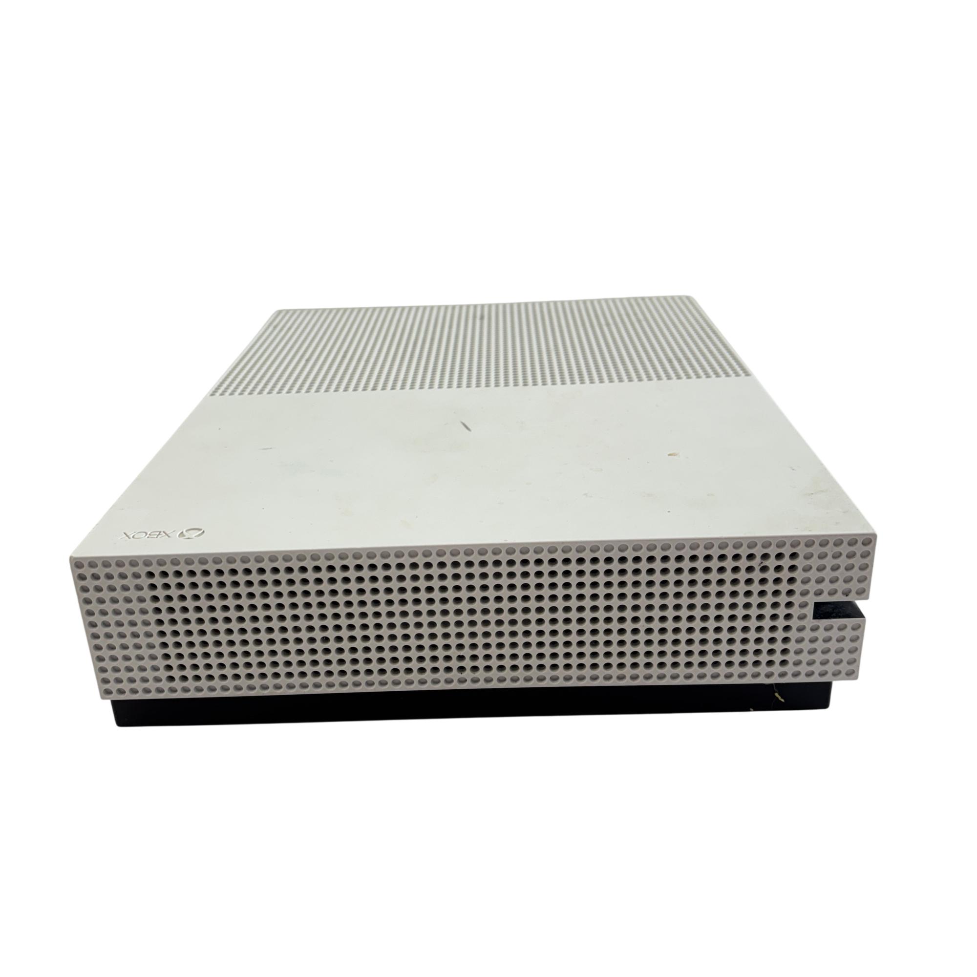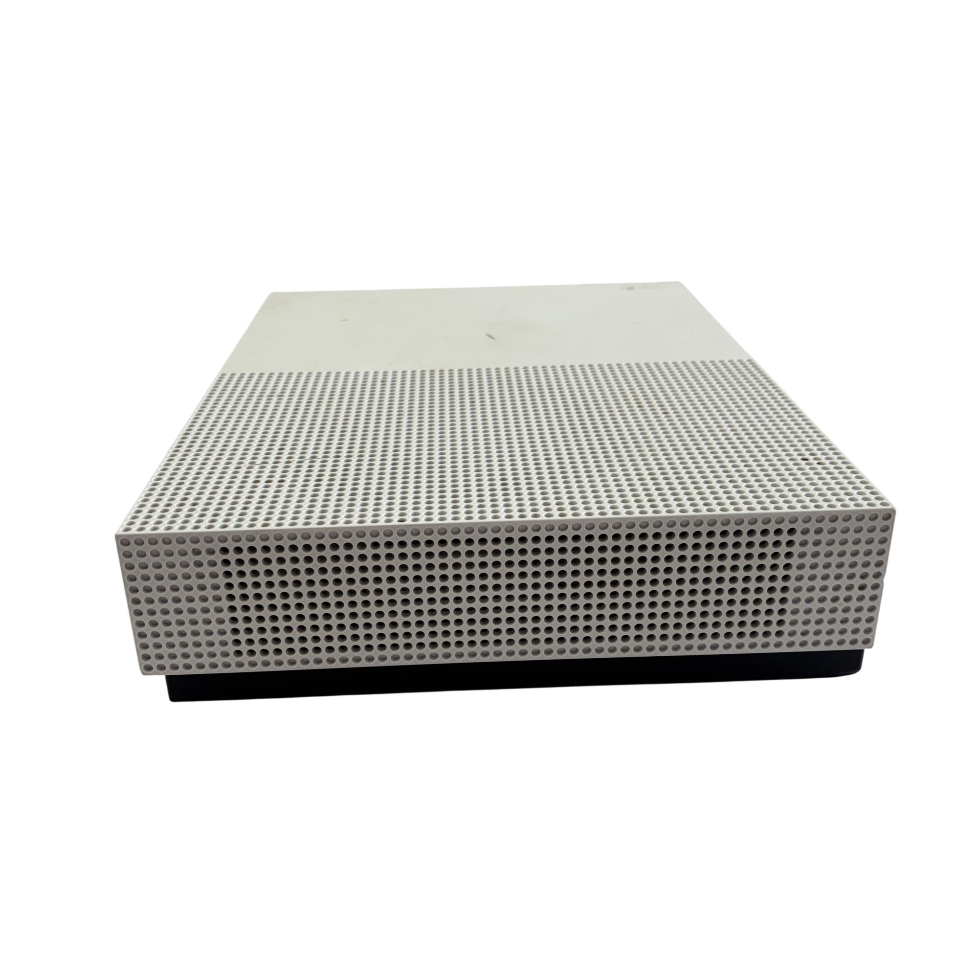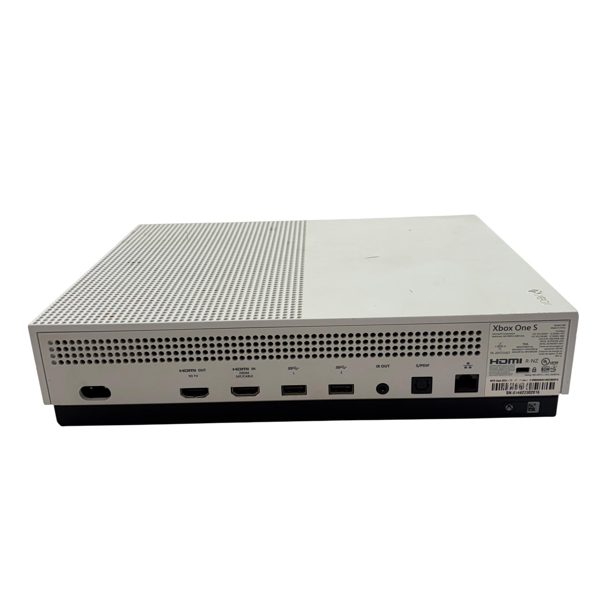 Microsoft Xbox One S 500GB Model 1681 White Gaming Console with Power Cord features a sleek white rectangular design with ventilation holes and a compact form factor optimized for home entertainment setups. This console supports a wide range of gaming titles and multimedia applications, offering seamless performance and connectivity through its included power cord. Its minimalist design and versatile functionality make it suitable for both casual and dedicated gamers seeking reliable gameplay experience.
