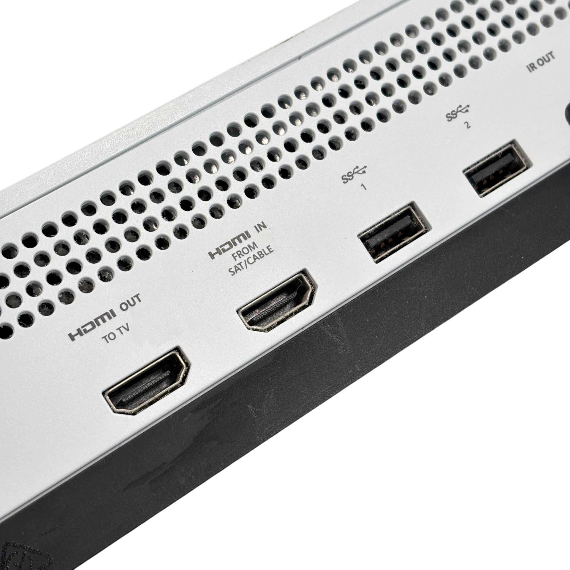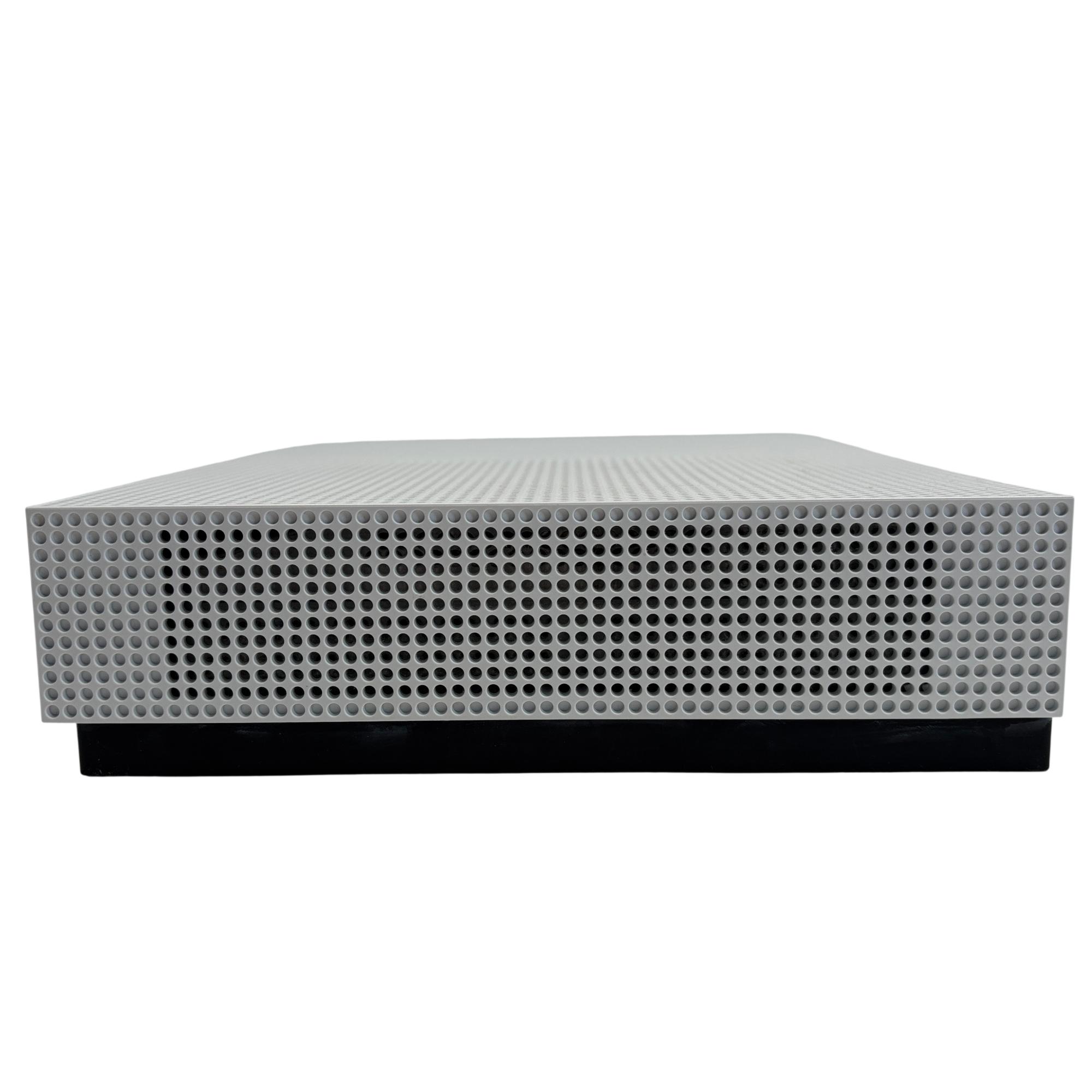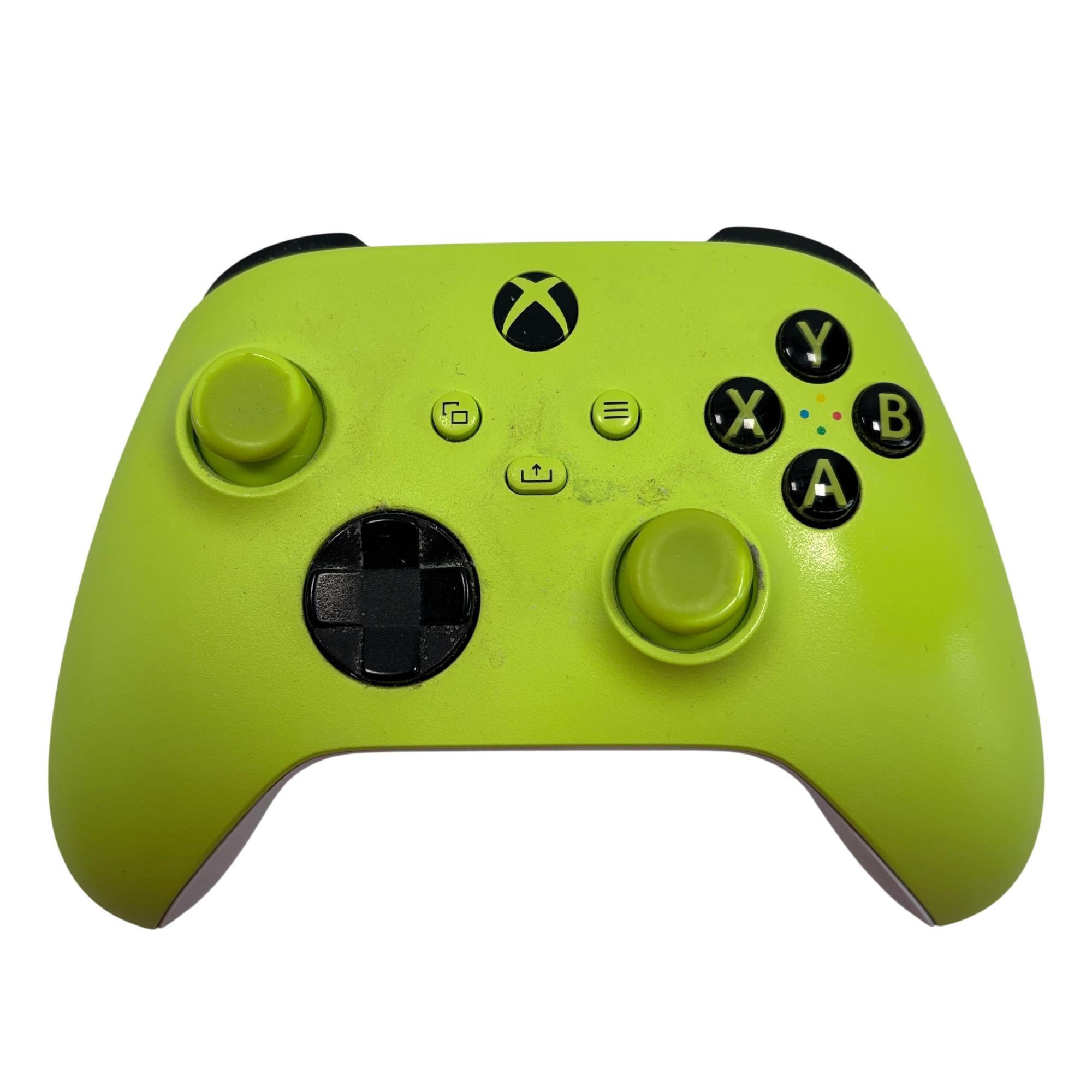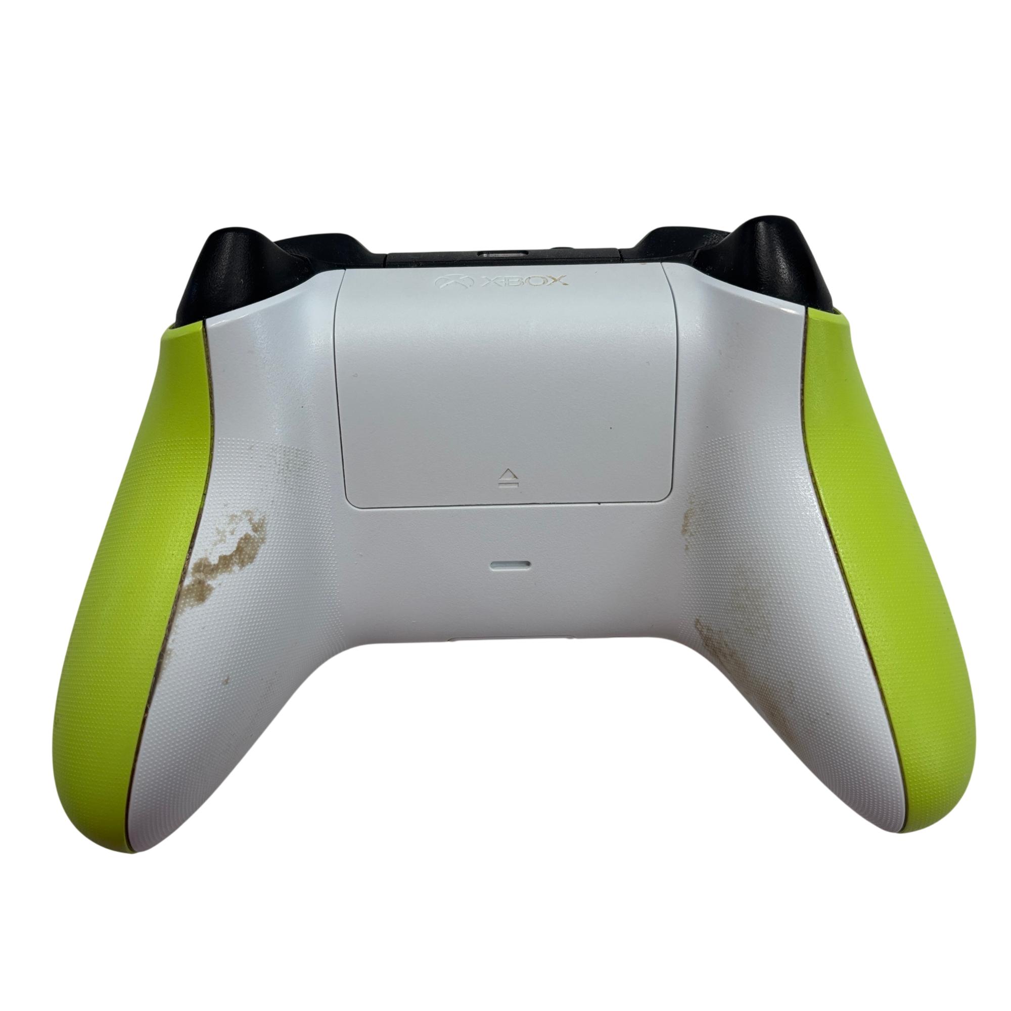 The Microsoft Xbox One S All Digital Edition 1681 features a sleek white design complemented by a vibrant neon green controller, providing an immersive gaming experience. This digital-only console includes multiple ports such as HDMI, Ethernet, and S/PDIF. Its compact rectangular form is designed for seamless integration into any entertainment setup, delivering reliable performance and digital gaming capabilities.