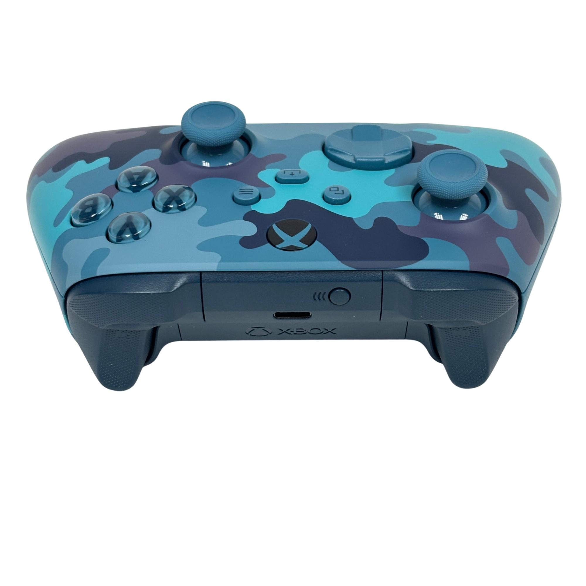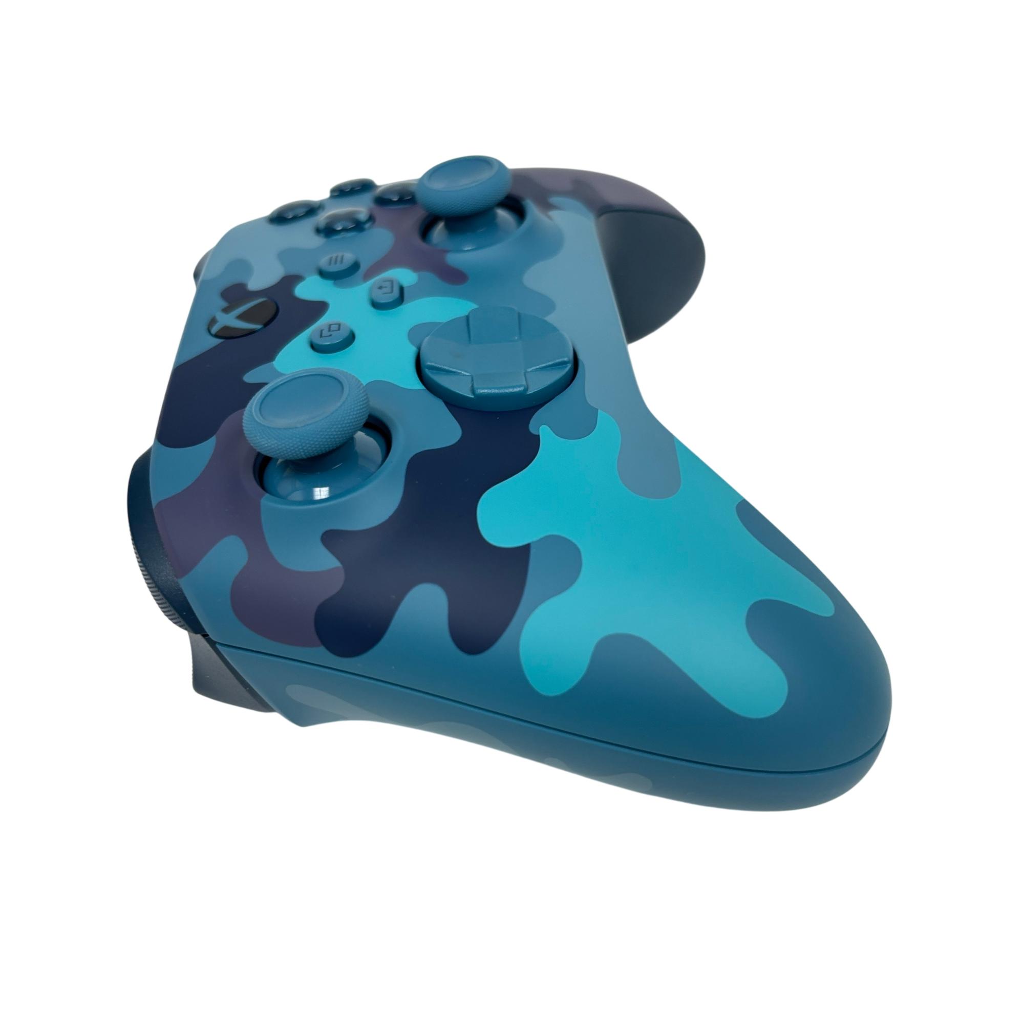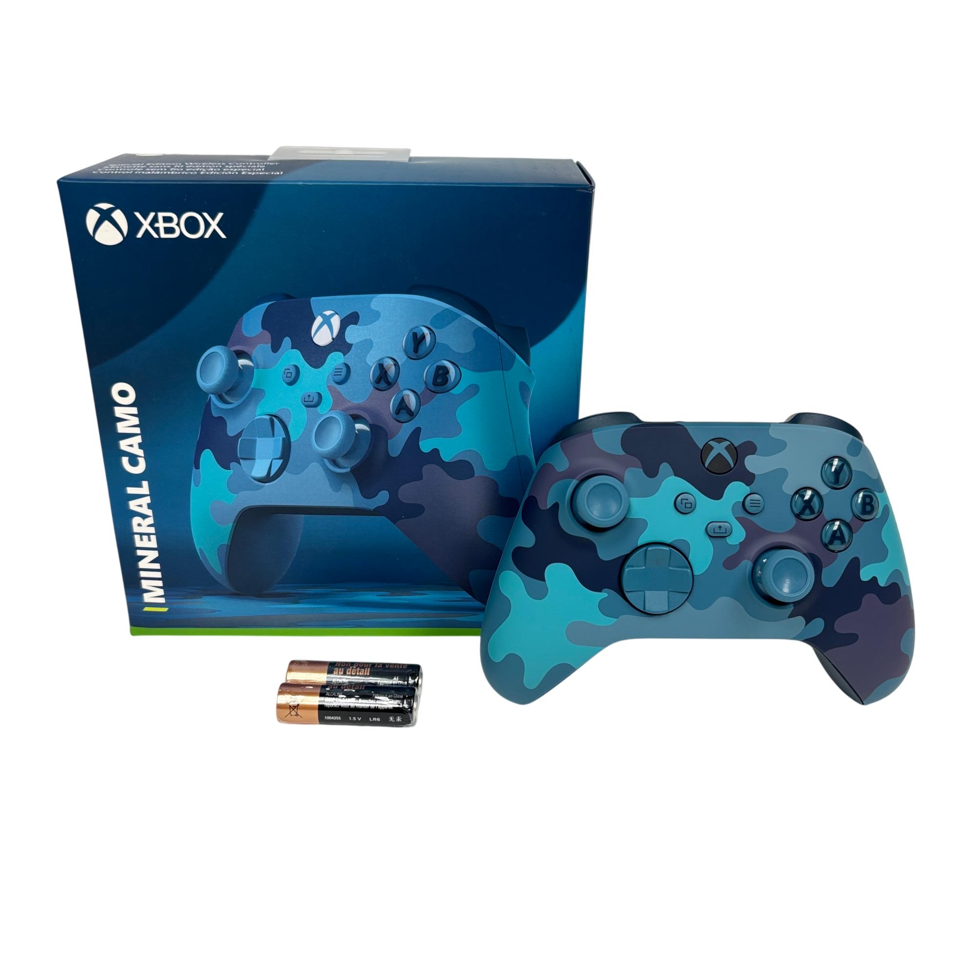 The Microsoft Xbox One Wireless Controller - Mineral Camo Special Edition features a distinctive blue and black camouflage design that enhances grip and style during gameplay. Designed for Xbox Series X, Series S, and Xbox One, this wireless controller delivers responsive buttons and ergonomic comfort for extended play sessions. Its precision-engineered analog sticks and textured triggers provide accurate control for an immersive gaming experience.