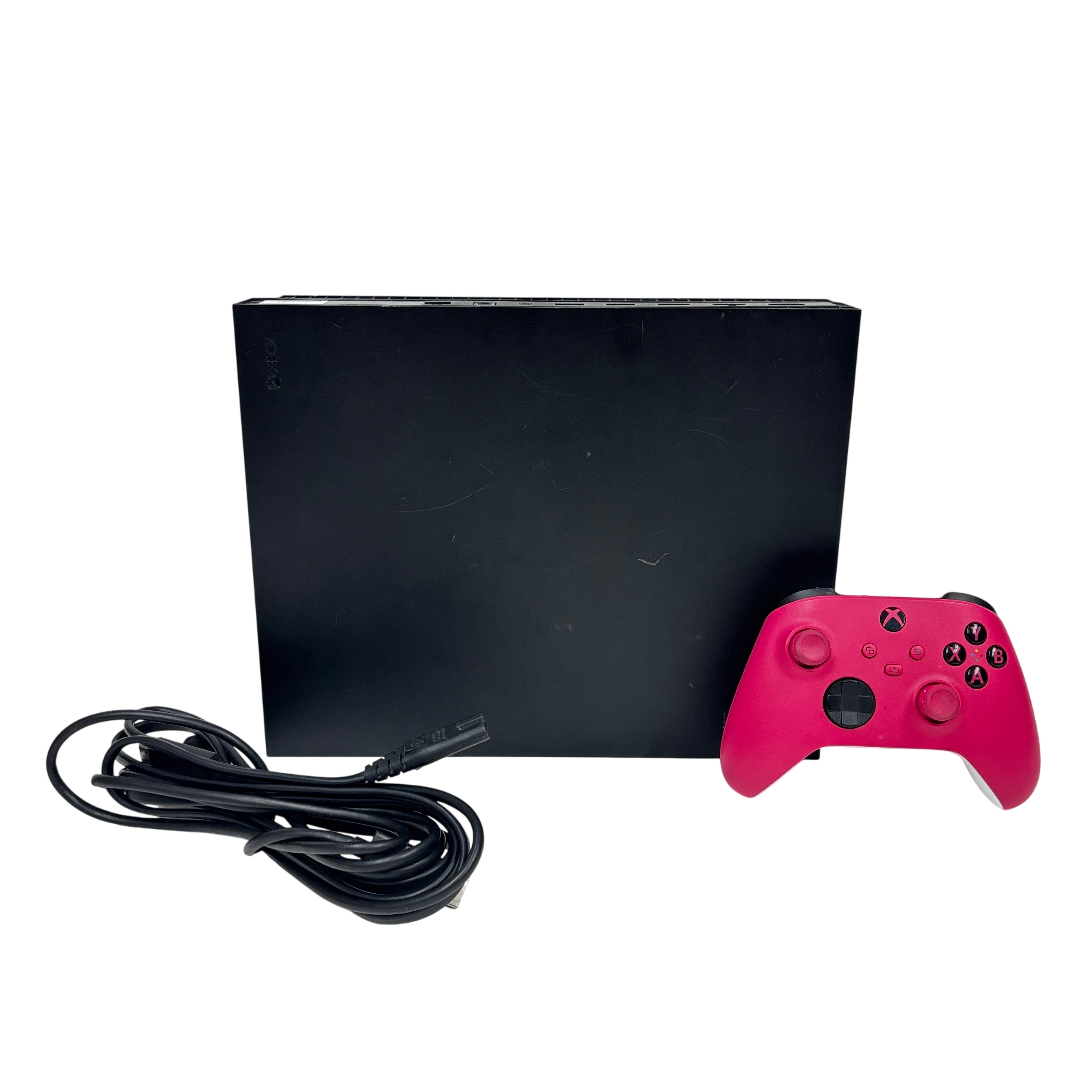 This Microsoft Xbox One X is a powerful 4K UHD video game console designed for immersive gaming experiences. Featuring 1TB of internal storage and a custom 8-core AMD CPU with Radeon graphics, it delivers stunning visuals and smooth gameplay. This set includes the Xbox One X console, a wireless controller and necessary cords for immediate setup. Ideal for gamers seeking high-resolution gaming and backward compatibility with Xbox One titles.
