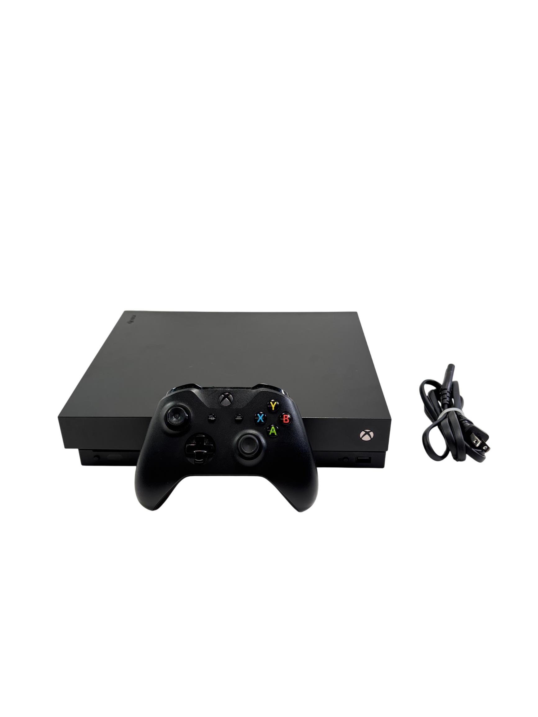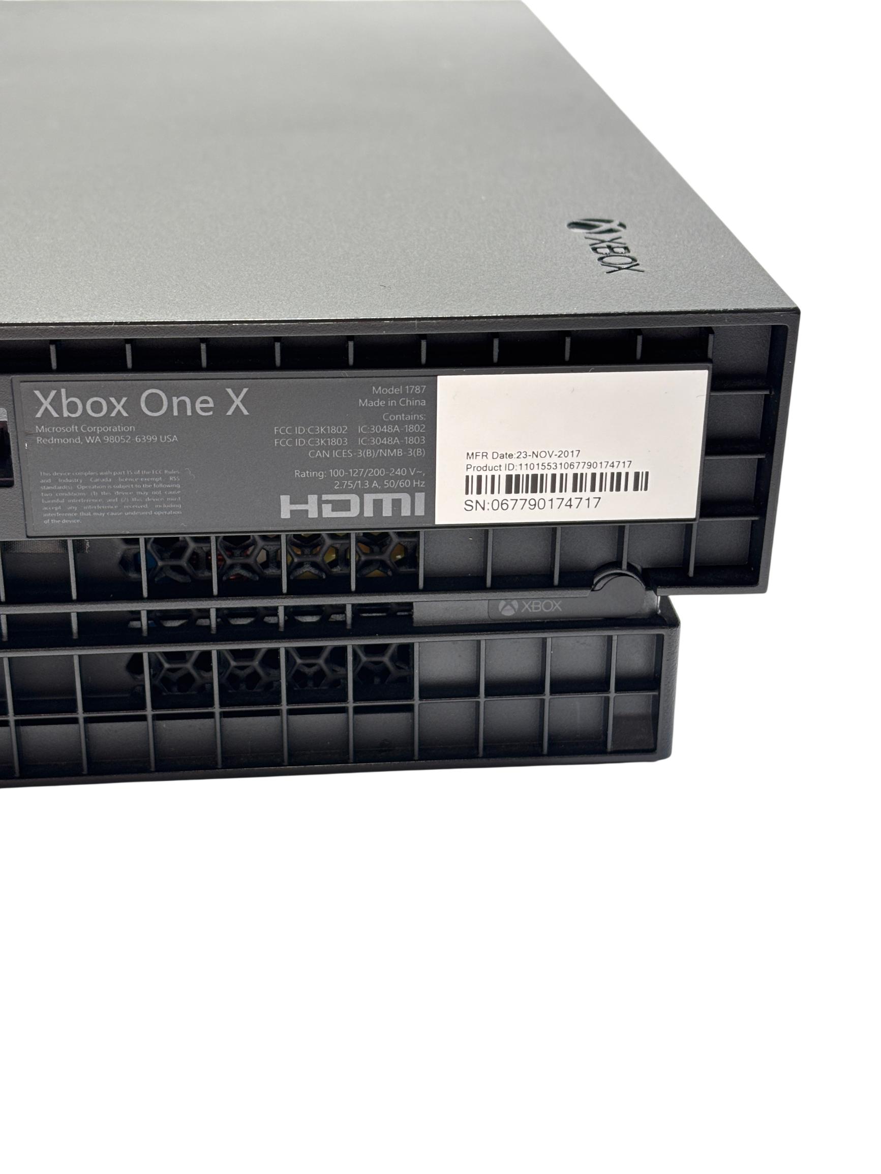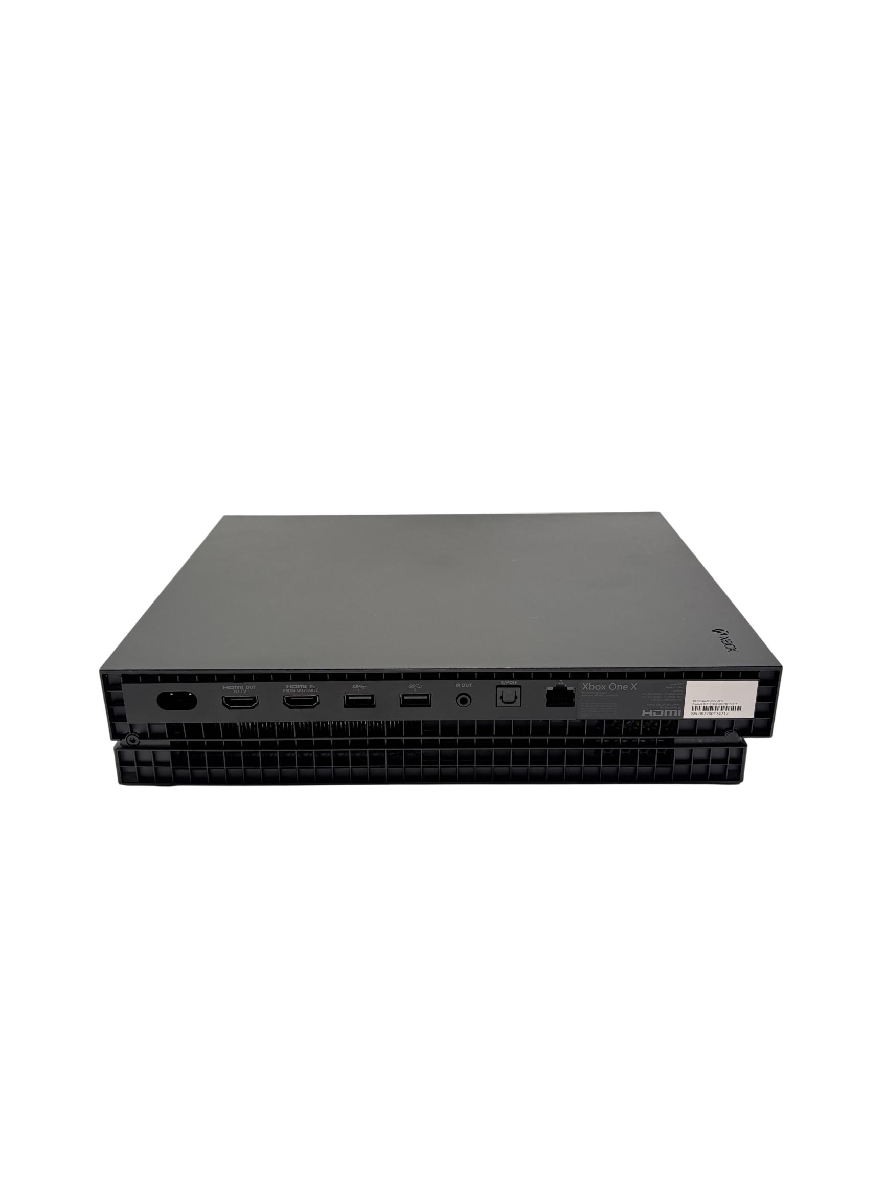 Microsoft Xbox One X 1TB Gaming Console with Wireless Controller delivers powerful 4K gaming performance with enhanced graphics and faster load times. This sleek black console features a compact rectangular design with multiple ports for versatile connectivity, ensuring an immersive gaming experience. Its high capacity 1TB storage supports extensive game libraries and multimedia content.