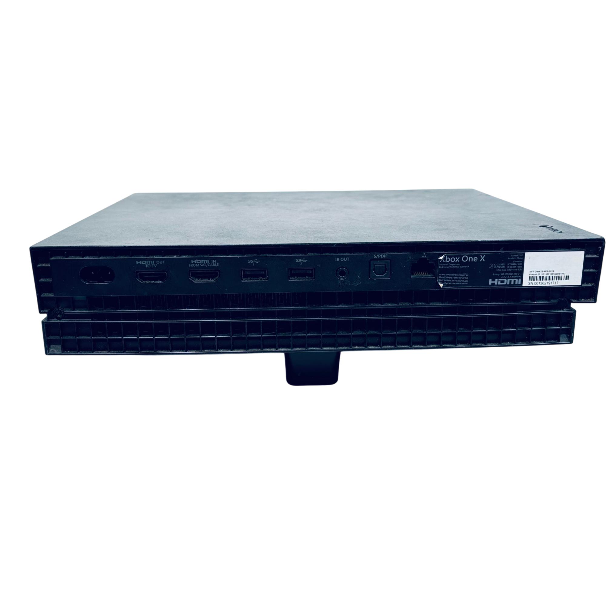Microsoft Xbox One X 1TB Model 1787 4K Ultra HD Gaming Console delivers powerful gaming performance with its 1TB storage capacity and advanced 4K resolution support. Designed for immersive gameplay, this sleek black console features HDMI input and output ports as well as S/PDIF connectivity, enhancing audiovisual experiences. Engineered for seamless integration into home entertainment setups, it supports Wi-Fi and is equipped with a responsive wireless controller for dynamic control.