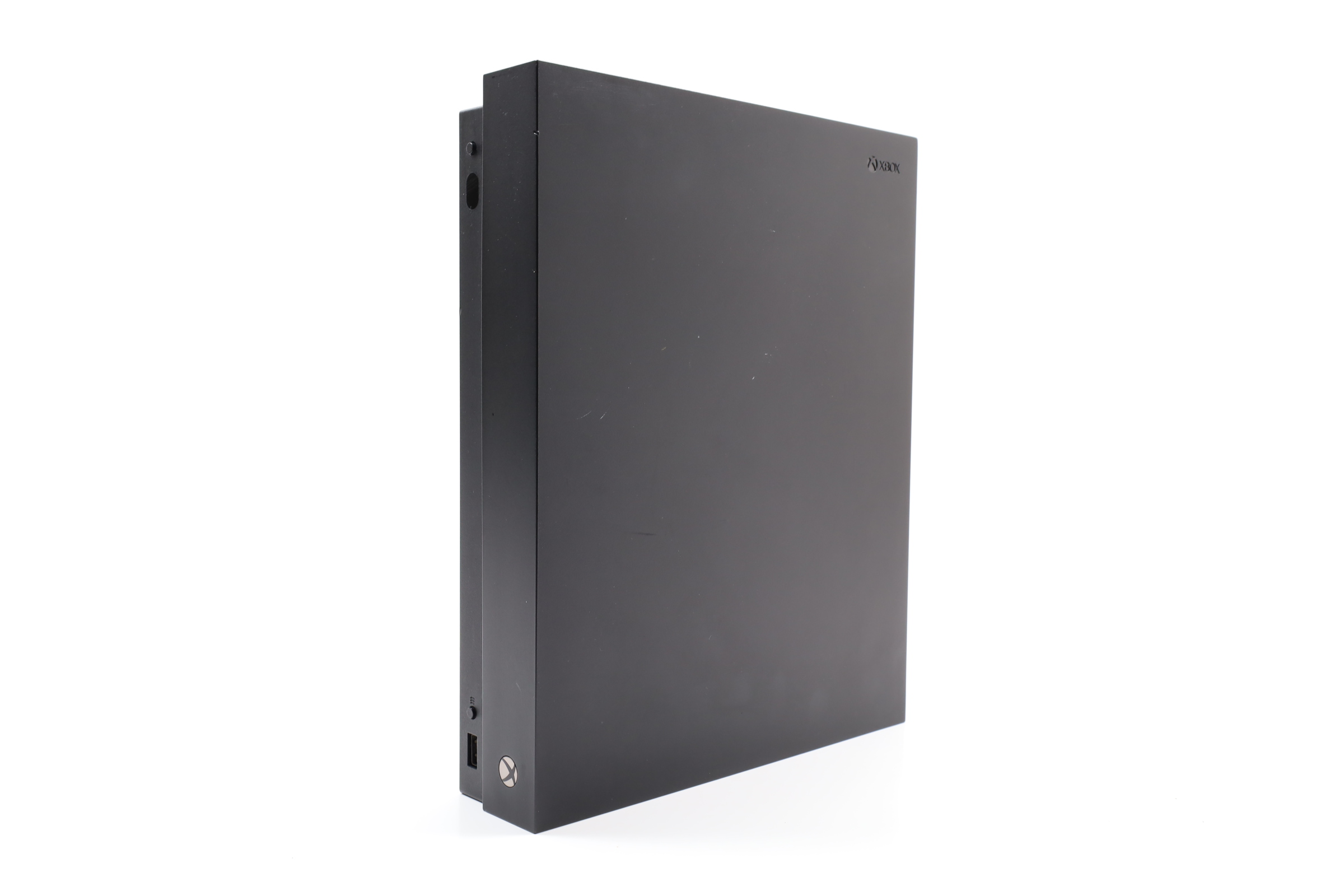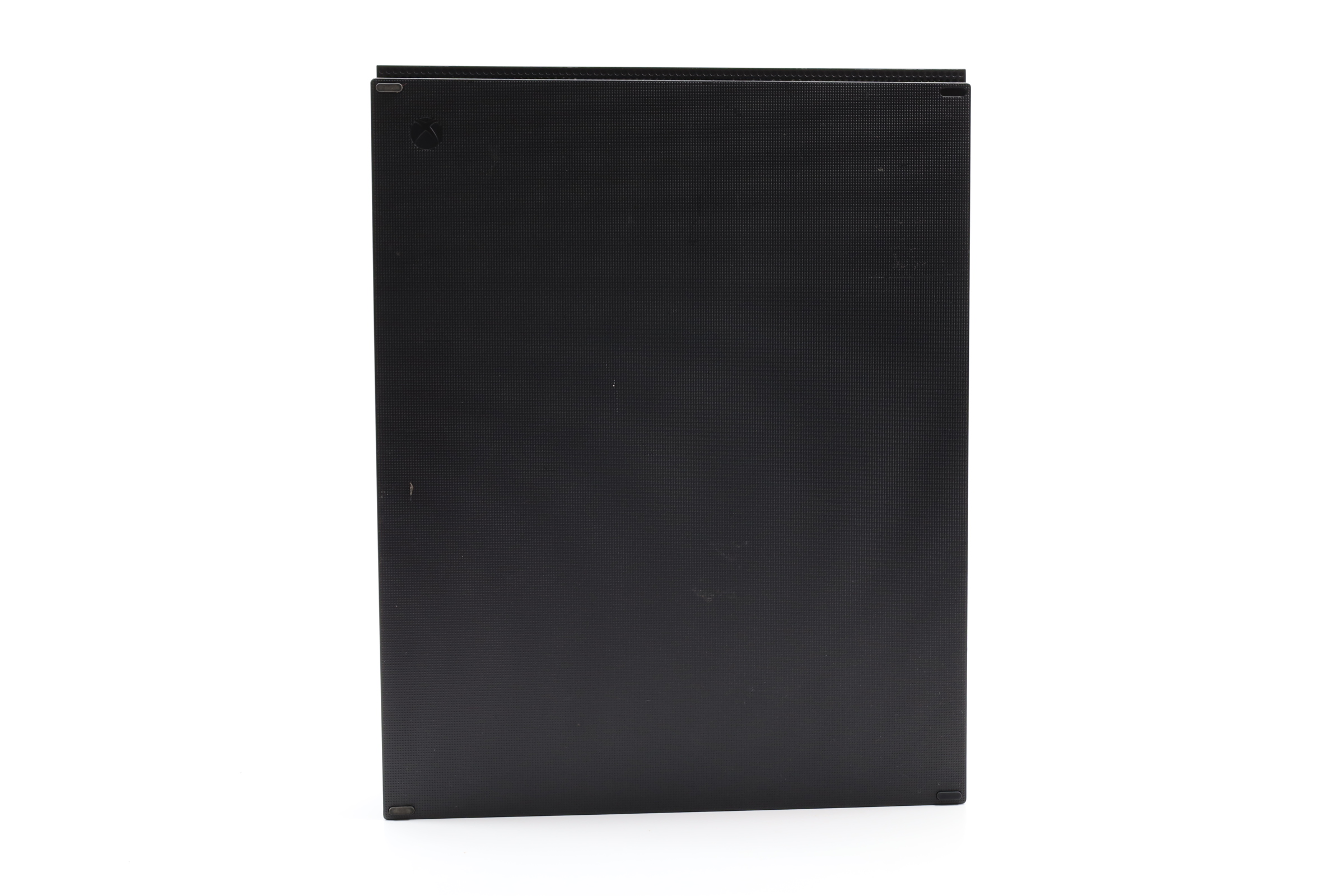 Designed to deliver superior gaming performance with support for native 4K resolution and HDR, offering stunning visual fidelity and detailed graphics for games optimized for the console. The Xbox One X comes with a 1TB hard drive and has a built-in Ultra HD Blu-ray player for physical media. Additionally, it is fully backwards compatible, allowing players to enjoy a vast library of games from previous Xbox generations. The console's robust hardware makes it capable of running games smoother and faster, providing gamers with an immersive and seamless gaming experience.