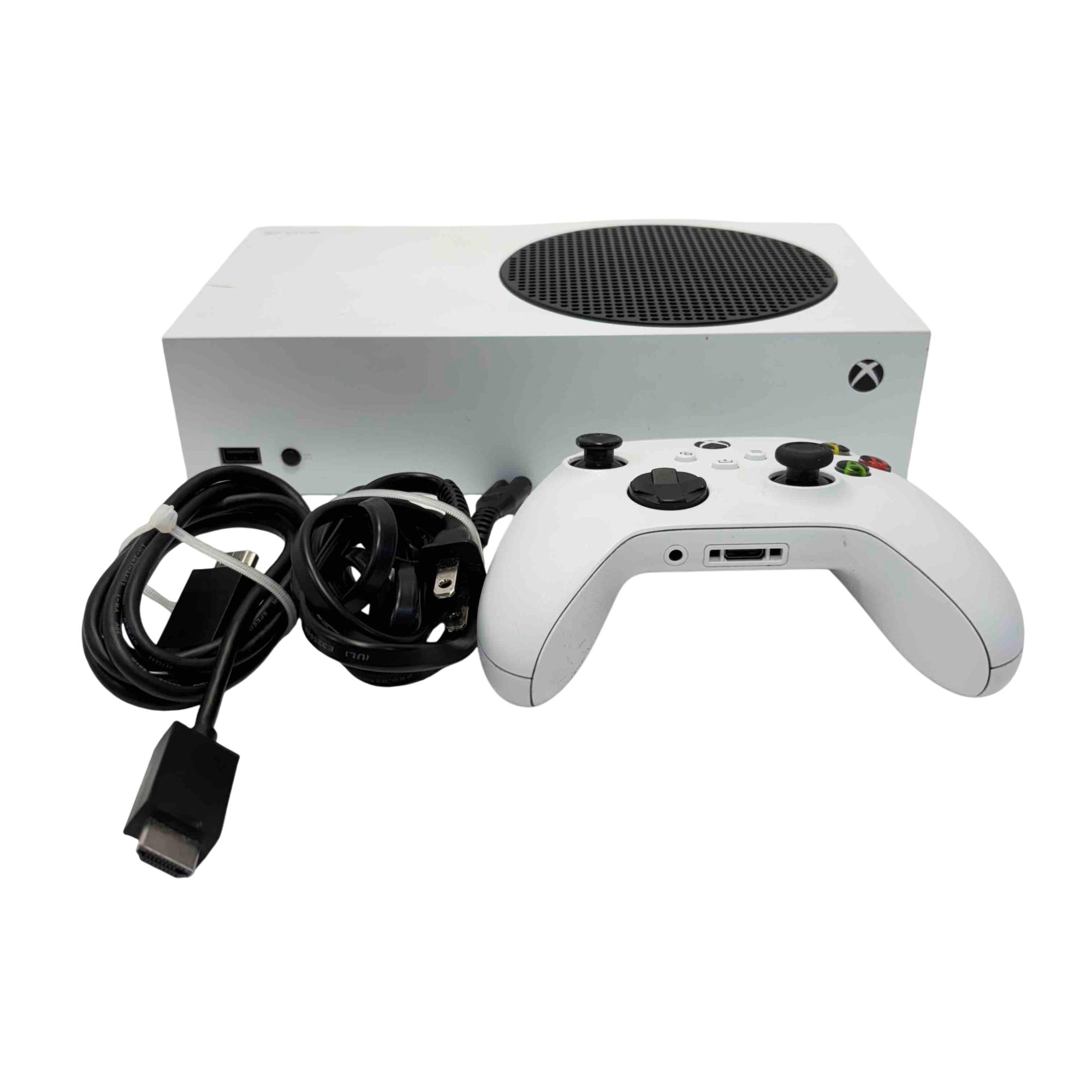 Microsoft Xbox Series S (Model 1883) 512GB All-Digital Console with Controller and Cables offers a compact, white design featuring a built-in SSD for fast loading and seamless all-digital gaming. This next-gen console supports HDMI output and storage expansion, delivering high-performance gaming with included controller and connection cables.