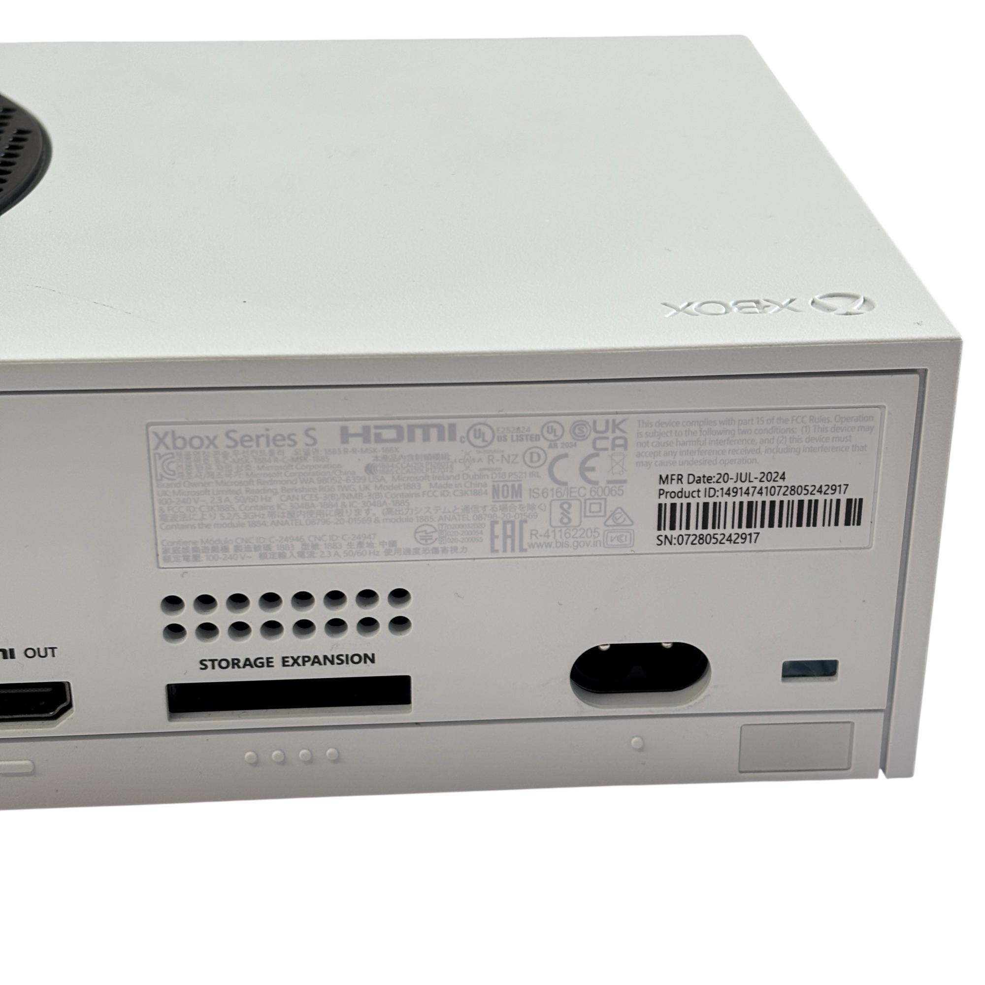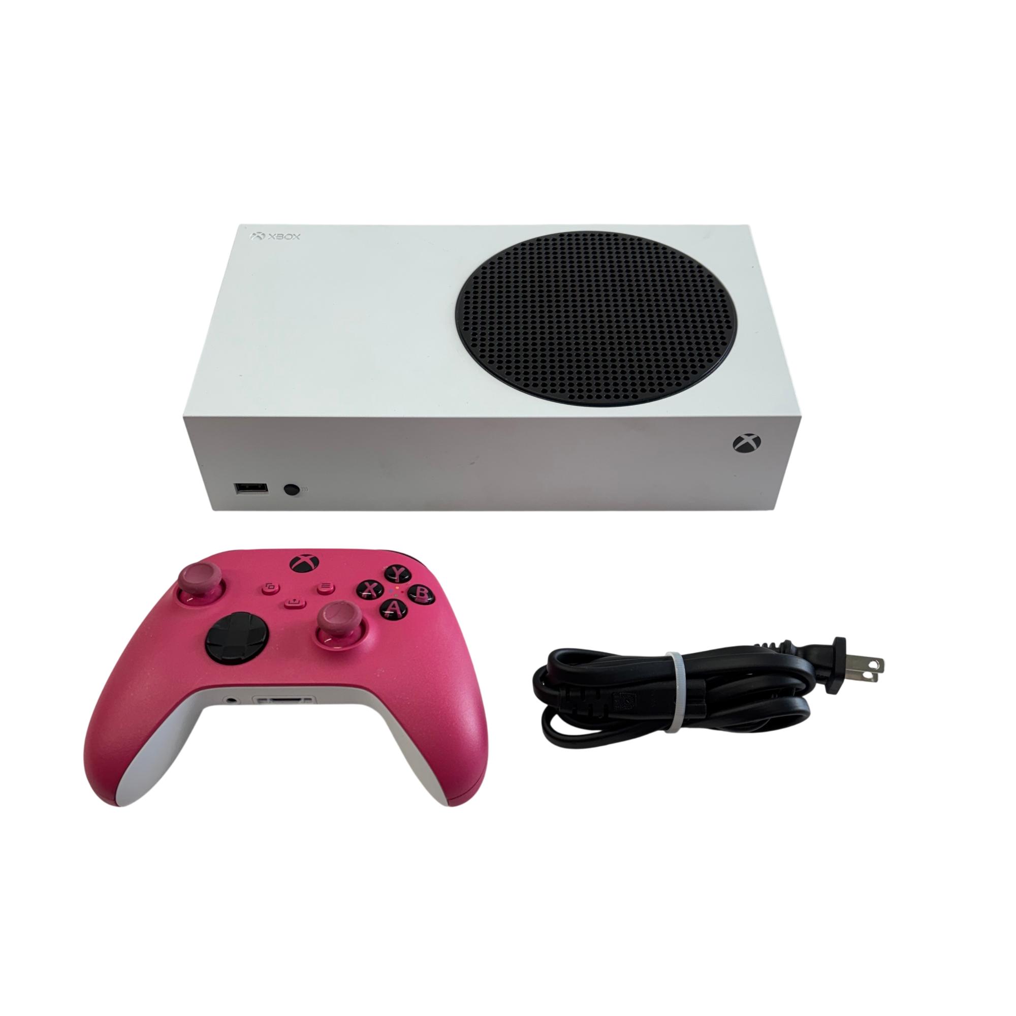 Microsoft Xbox Series S 512GB All-Digital Gaming Console model 1883 offers a compact white design optimized for next-generation gaming with fast load times and smooth performance. This console supports all-digital gameplay, featuring a sleek form factor paired with a custom pink wireless controller for enhanced comfort and control.