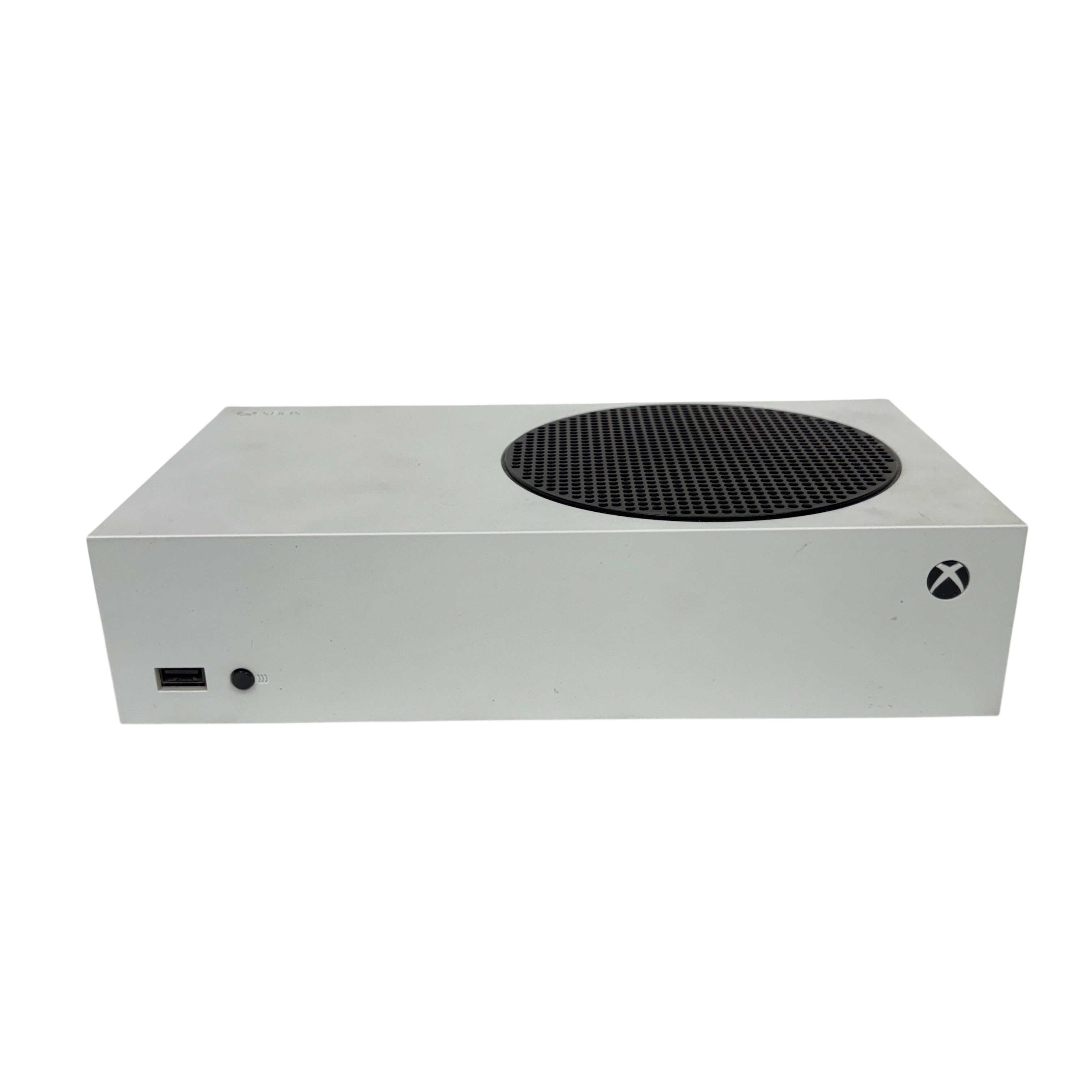 This Microsoft Xbox Series S 1883 is a compact digital-only video game console designed for next-gen gaming at 1440p resolution. Featuring a custom AMD Zen 2 processor and RDNA 2 graphics, it delivers smooth gameplay with fast load times thanks to its 512GB SSD. This set includes the console, a vibrant green wireless controller, and power cord. Ideal for gamers seeking an affordable, space-saving console with backward compatibility and quick resume features.