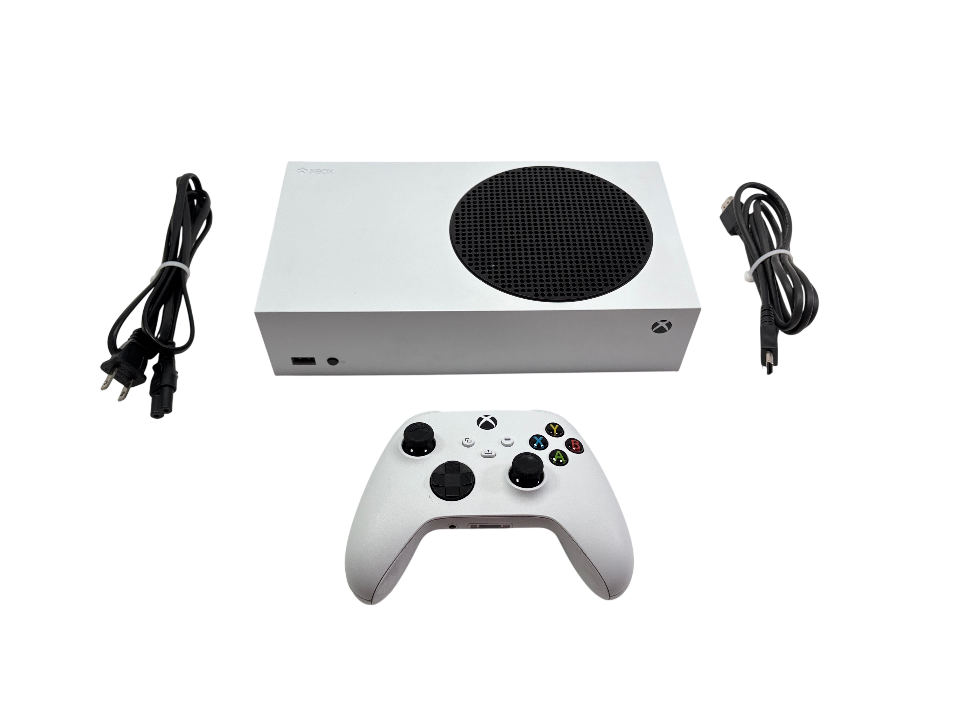 Microsoft Xbox Series S 512GB Console (Model 1883) offers a compact and sleek design in white with black accents, optimized for next-generation gaming. Featuring a 512GB internal SSD, this console delivers fast load times and smooth gameplay. The package includes the Xbox Series S console, a wireless controller, power cable, and HDMI cable, providing everything needed to start gaming right away. Its small footprint and powerful performance make it ideal for gamers seeking a high-quality experience in a space-saving form factor.