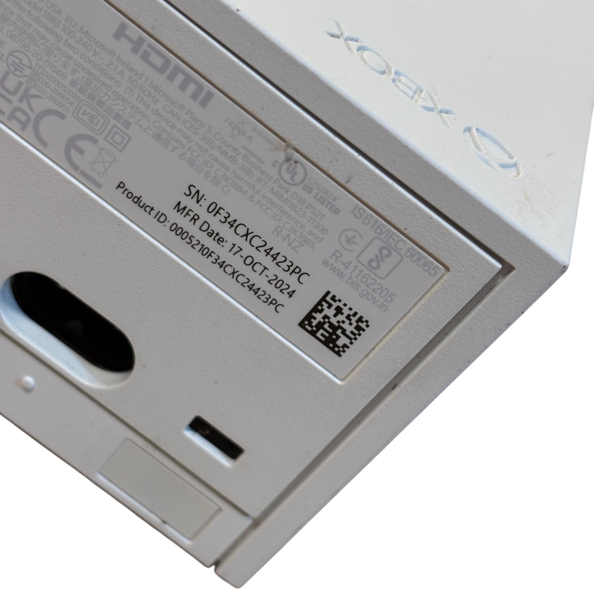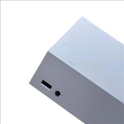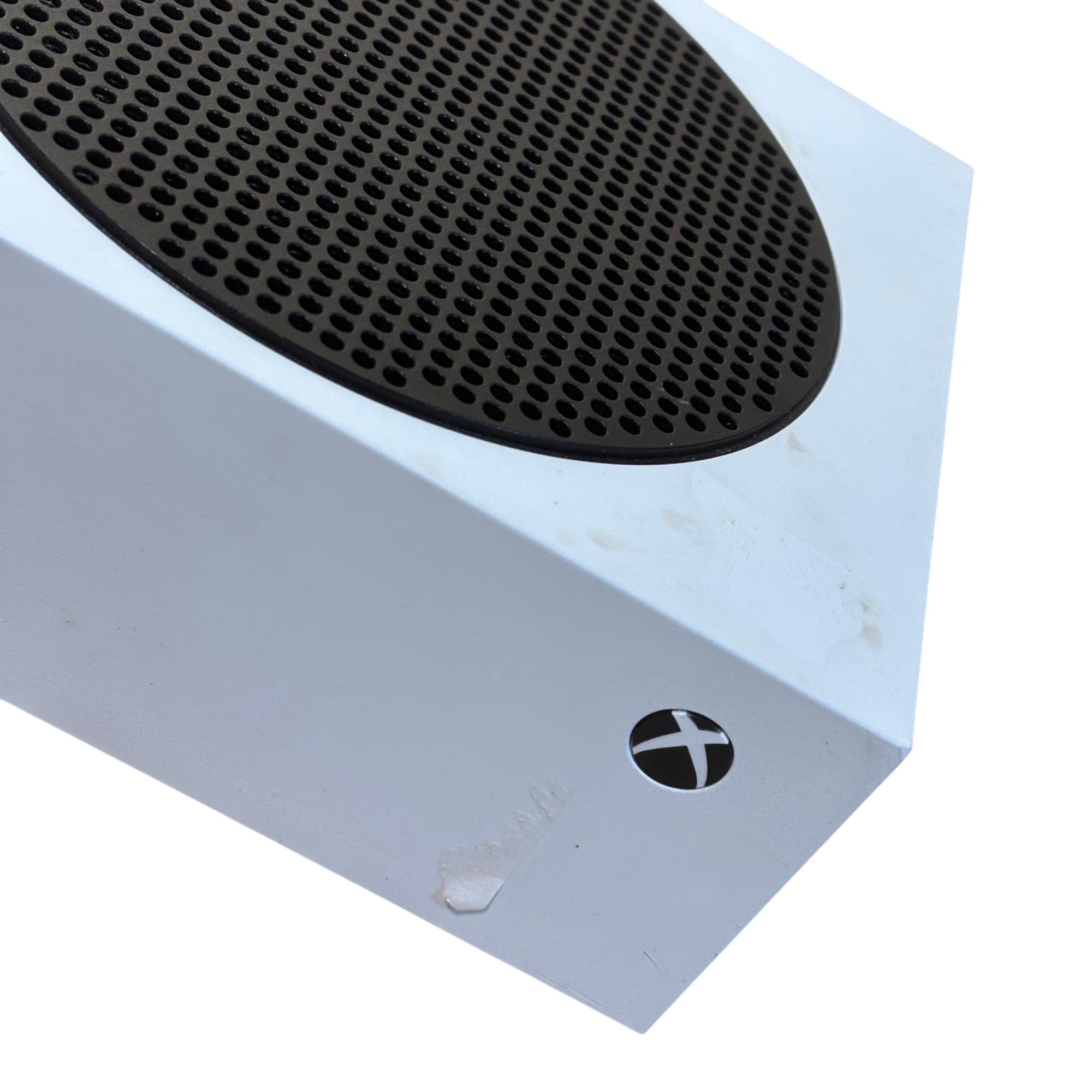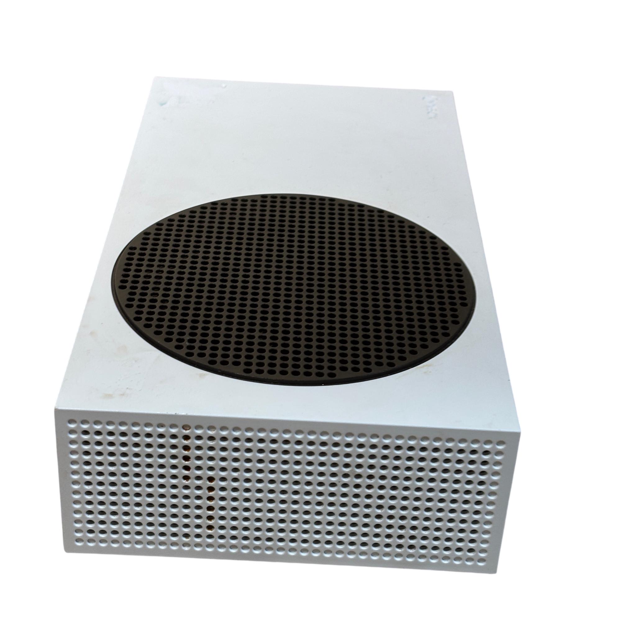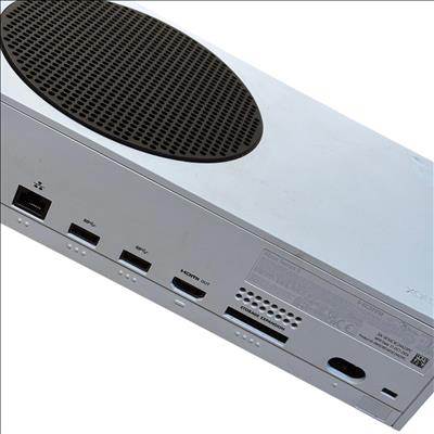 Microsoft Xbox Series S 512GB Video Game Console (Model 1883) is a compact, white gaming system designed for next-generation gaming experiences. This console features a sleek rectangular design with a distinctive black circular vent on top, supporting fast performance and high-quality HDMI output. It offers seamless integration with a wireless controller for immersive gameplay and storage expansion options.