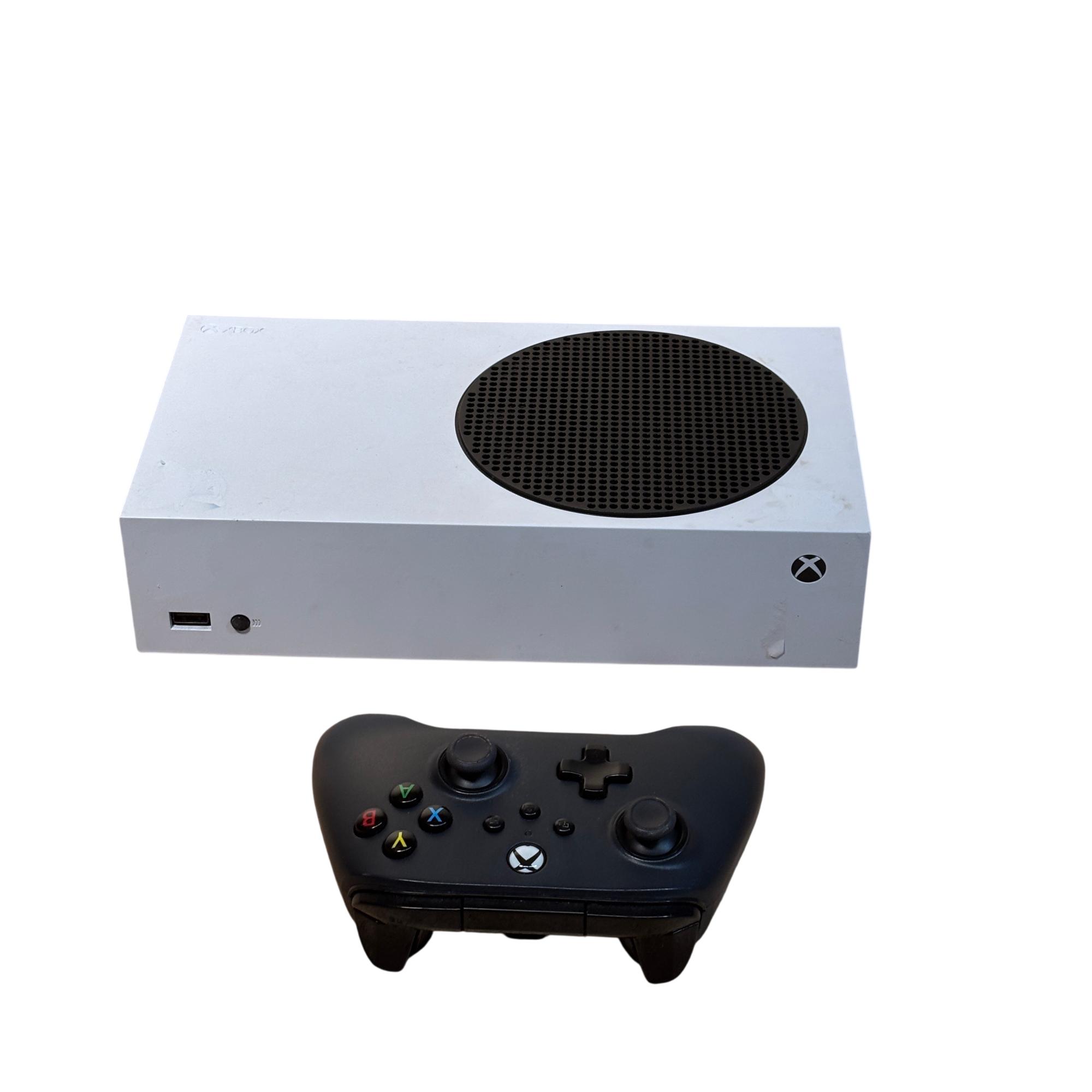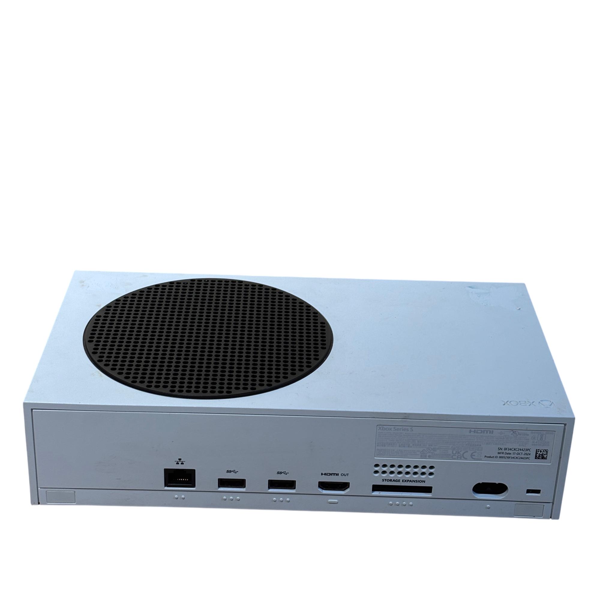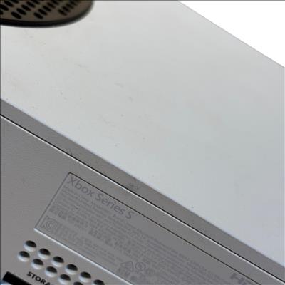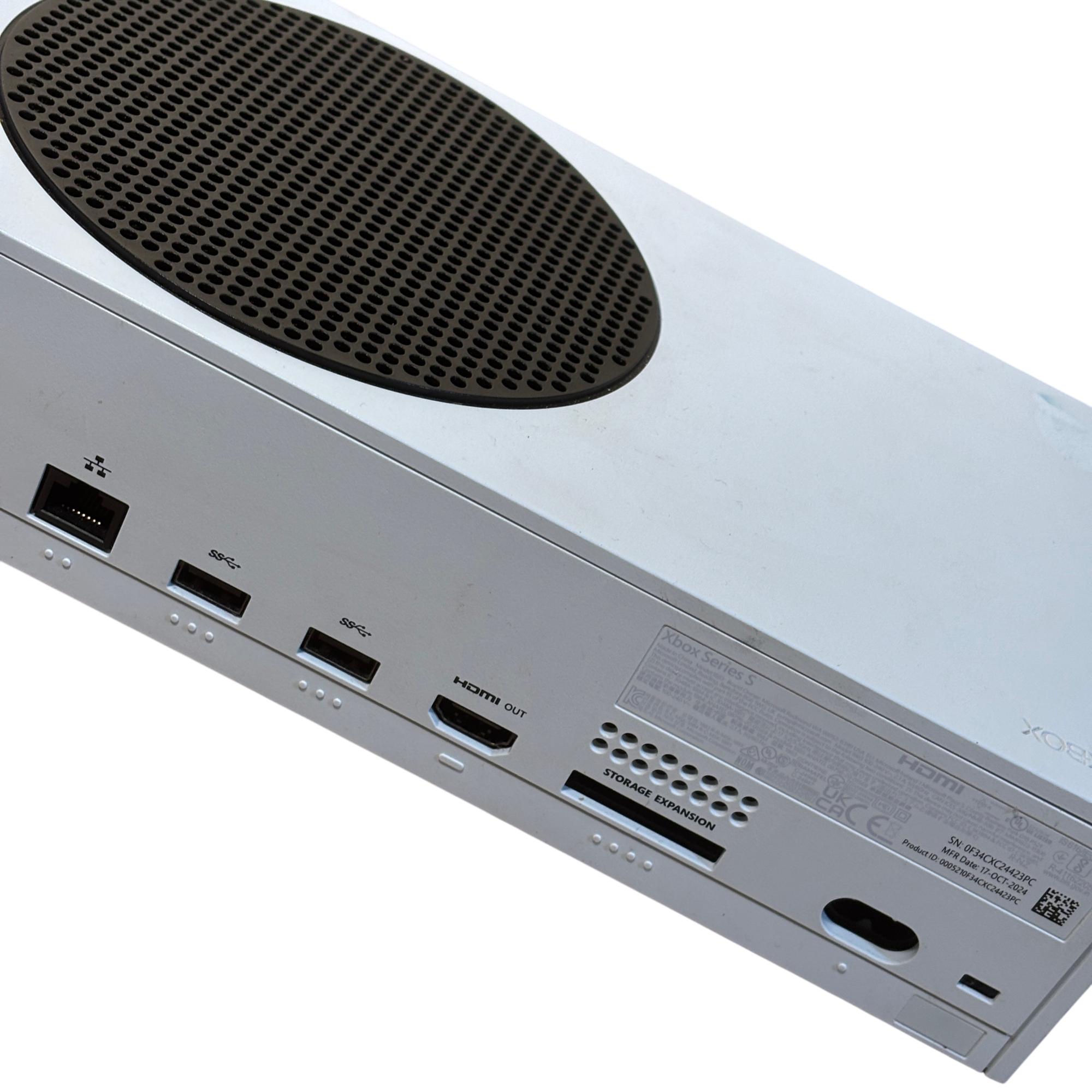 Microsoft Xbox Series S 512GB Video Game Console (Model 1883) is a compact, white gaming system designed for next-generation gaming experiences. This console features a sleek rectangular design with a distinctive black circular vent on top, supporting fast performance and high-quality HDMI output. It offers seamless integration with a wireless controller for immersive gameplay and storage expansion options.