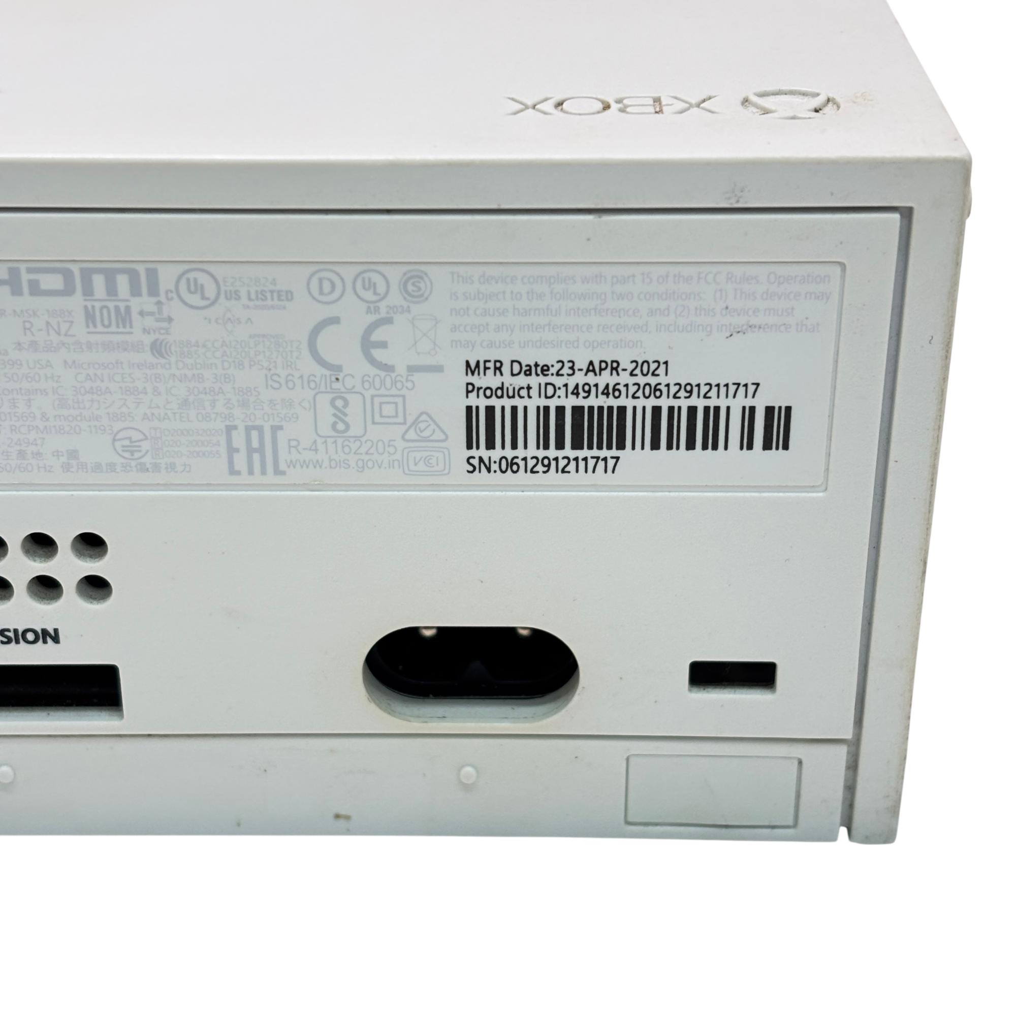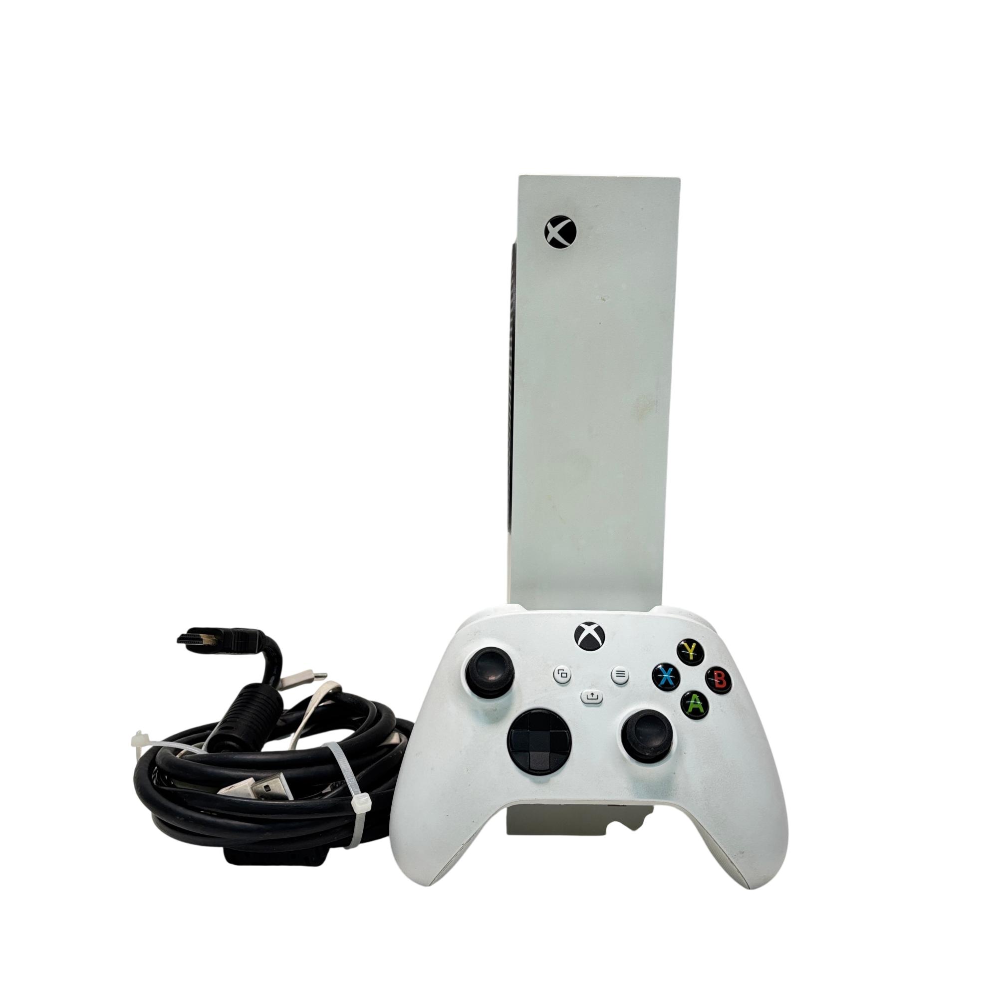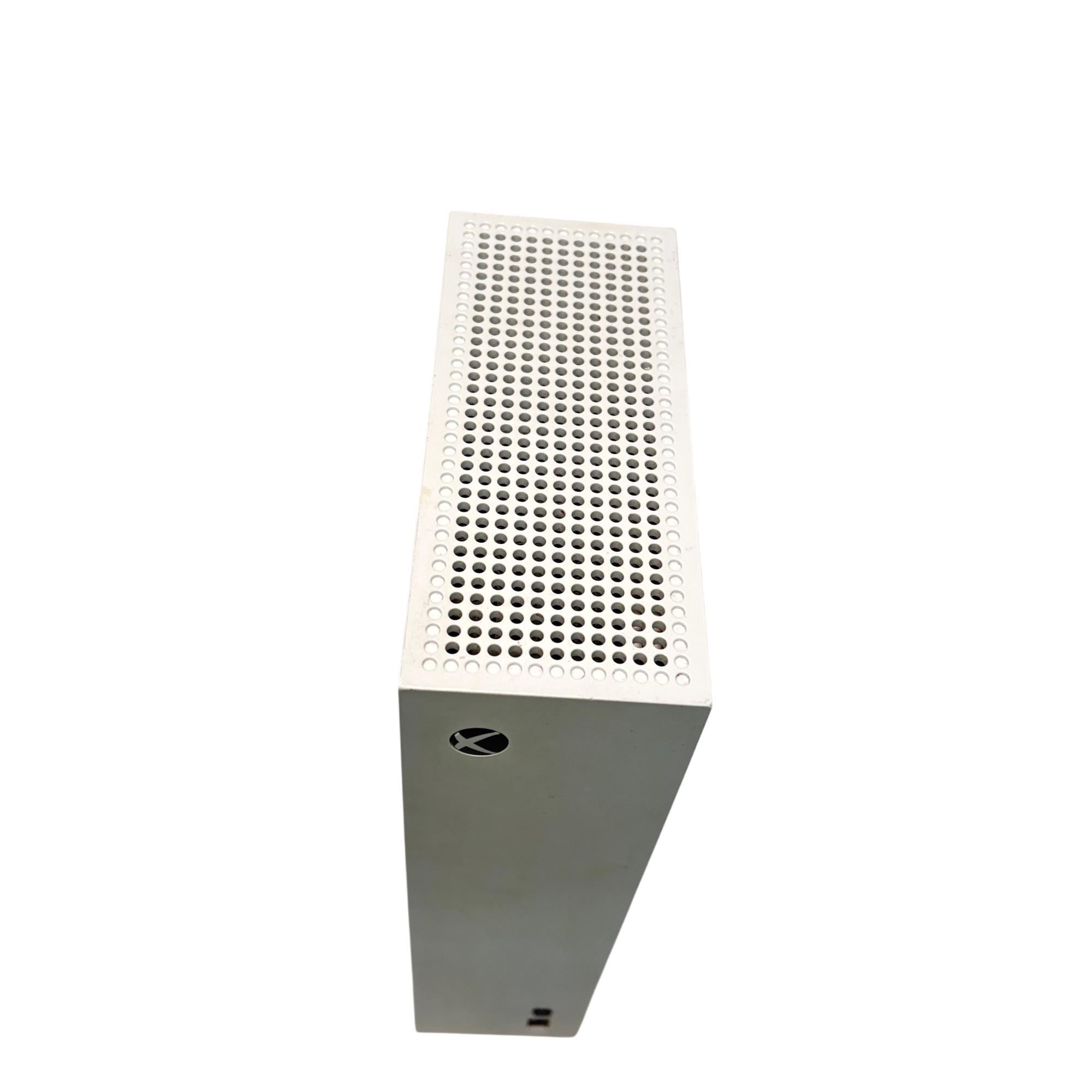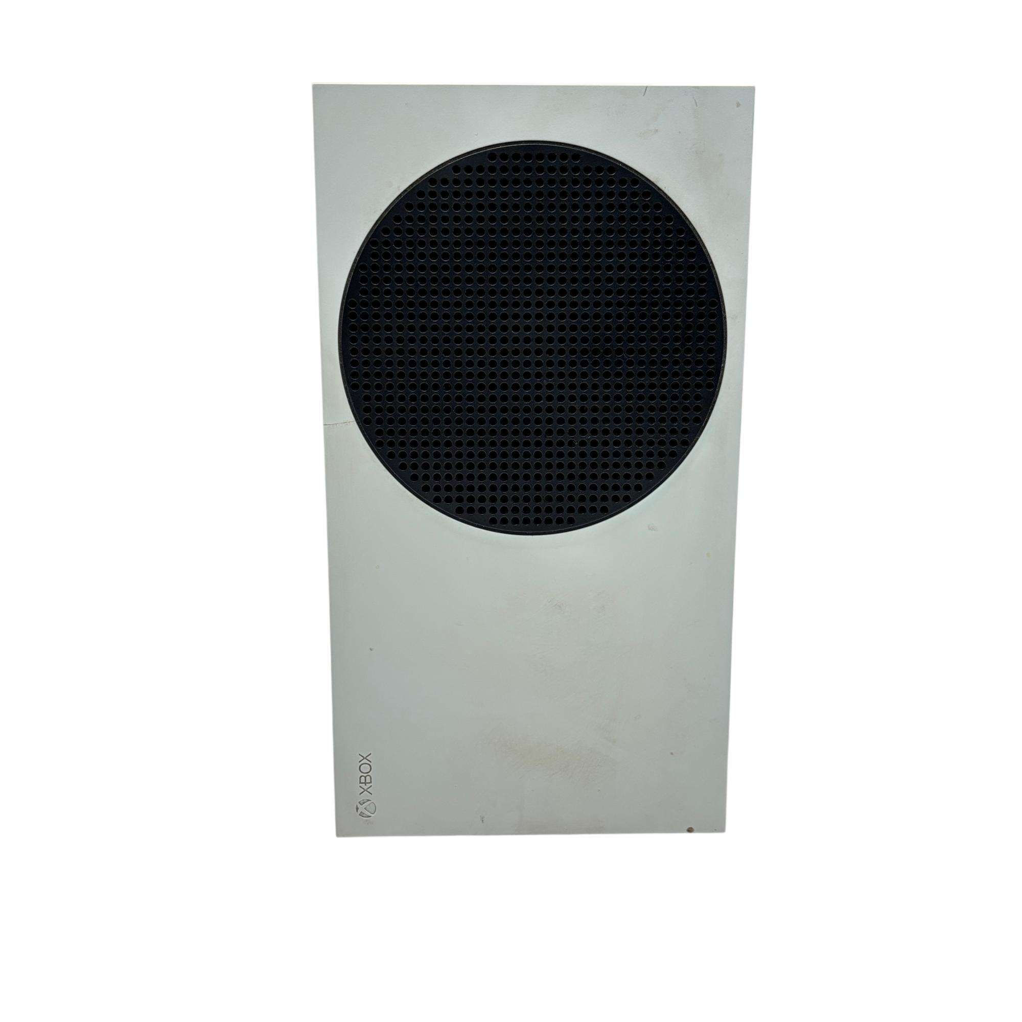 Microsoft Xbox Series S 512GB All-Digital Gaming Console (Model 1883) features a compact white design with distinctive ventilation holes and a prominent circular vent. This all-digital console offers fast load times and smooth gameplay, supporting a wide range of games with high performance in a sleek, space-saving form factor.