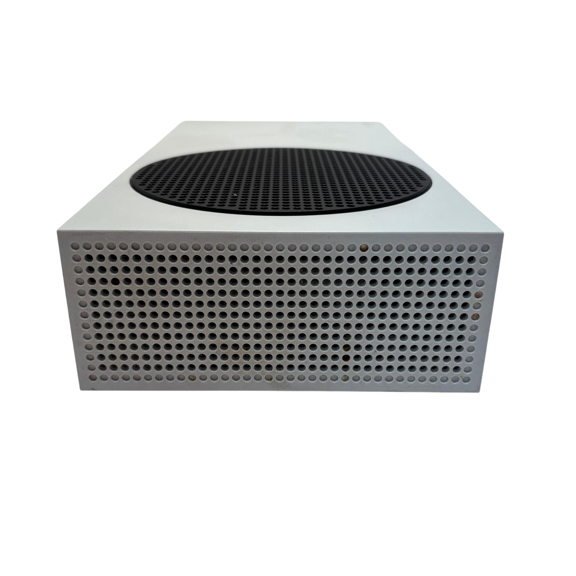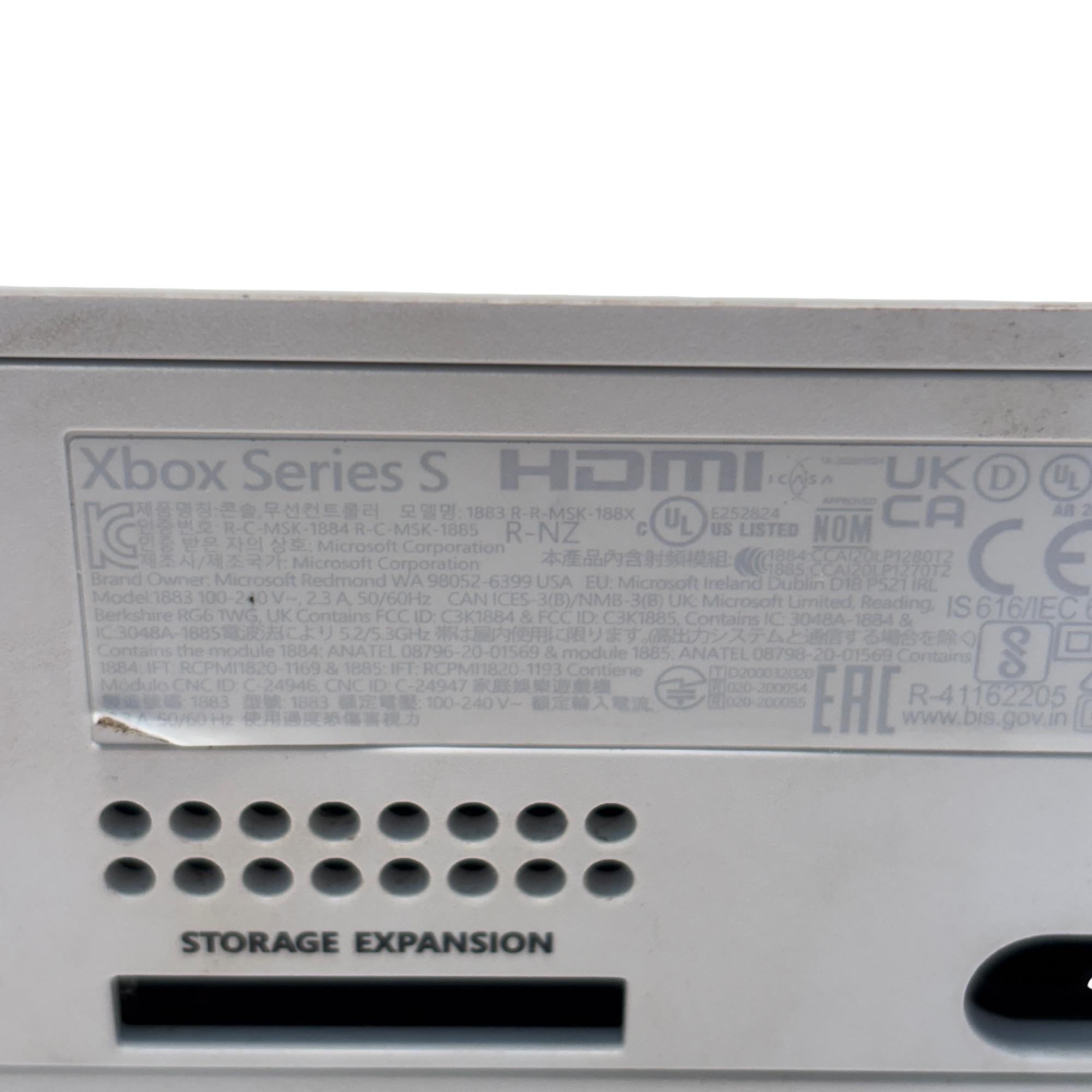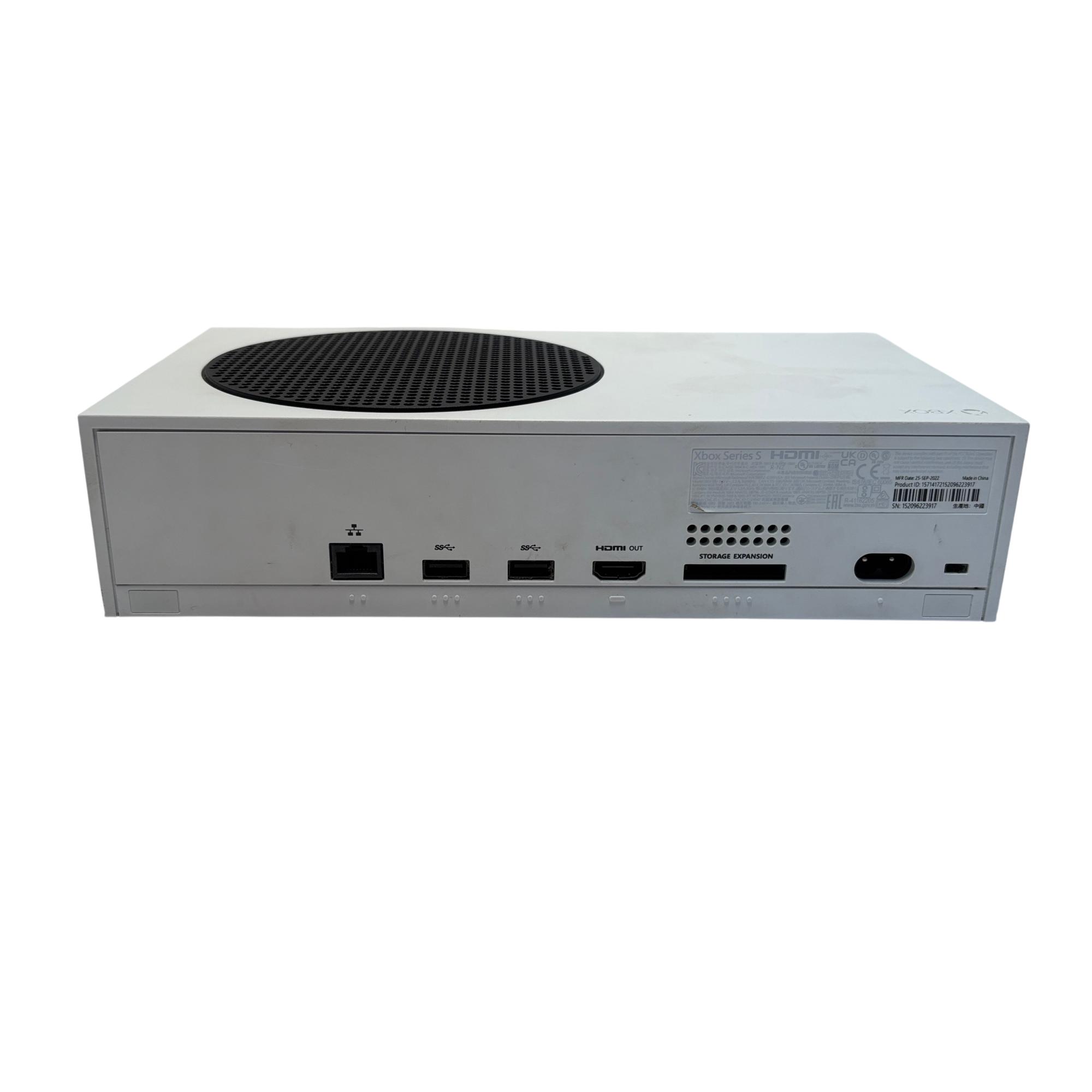 The Microsoft Xbox Series S Digital Edition Console with Green Controller offers a sleek, compact design with a white rectangular body featuring a distinct black vent and circular accent. This all-digital console delivers next-generation gaming performance with ample 512GB storage and HDMI output, optimized for seamless gameplay and fast load times. Its modern aesthetic complements any entertainment setup while providing an immersive digital gaming experience.