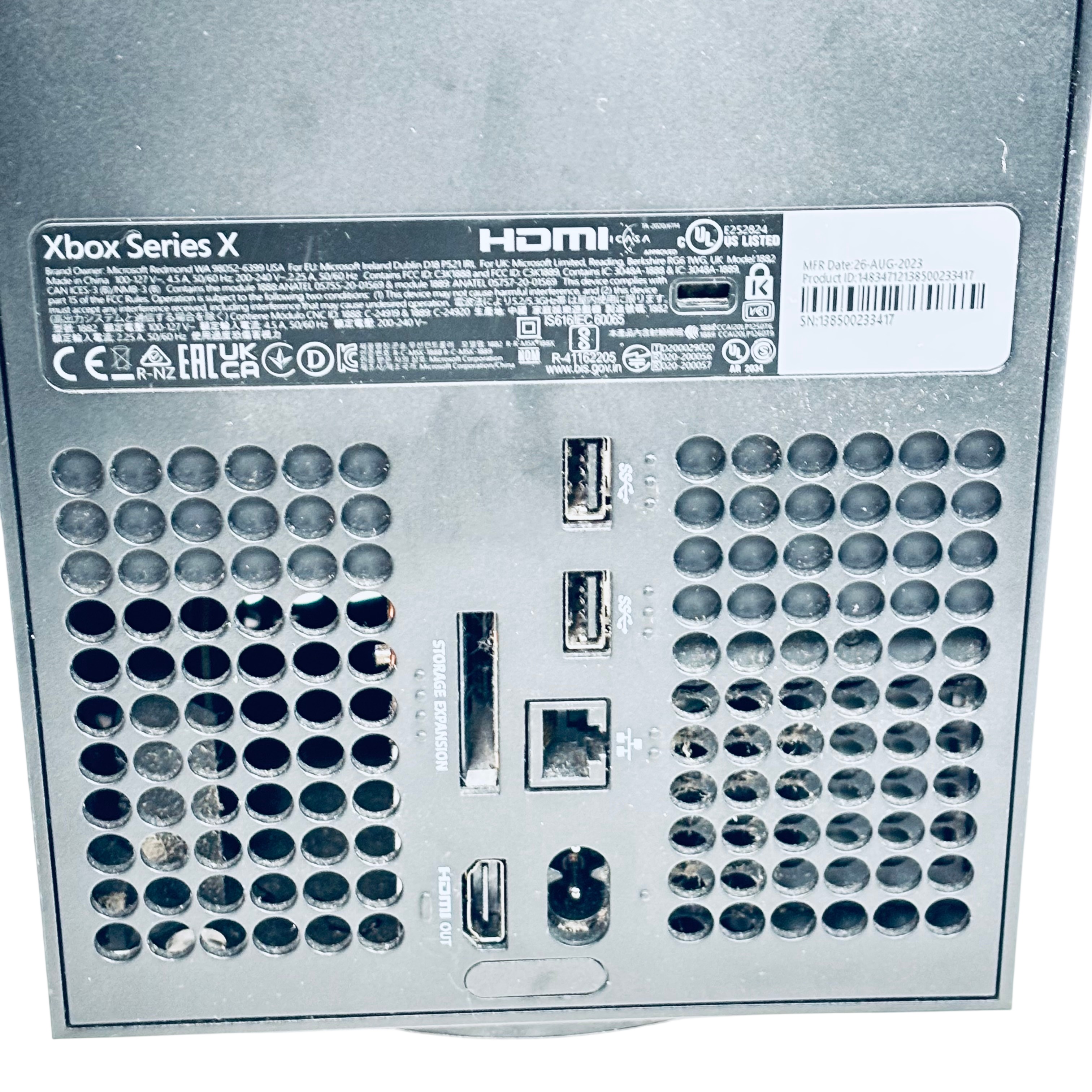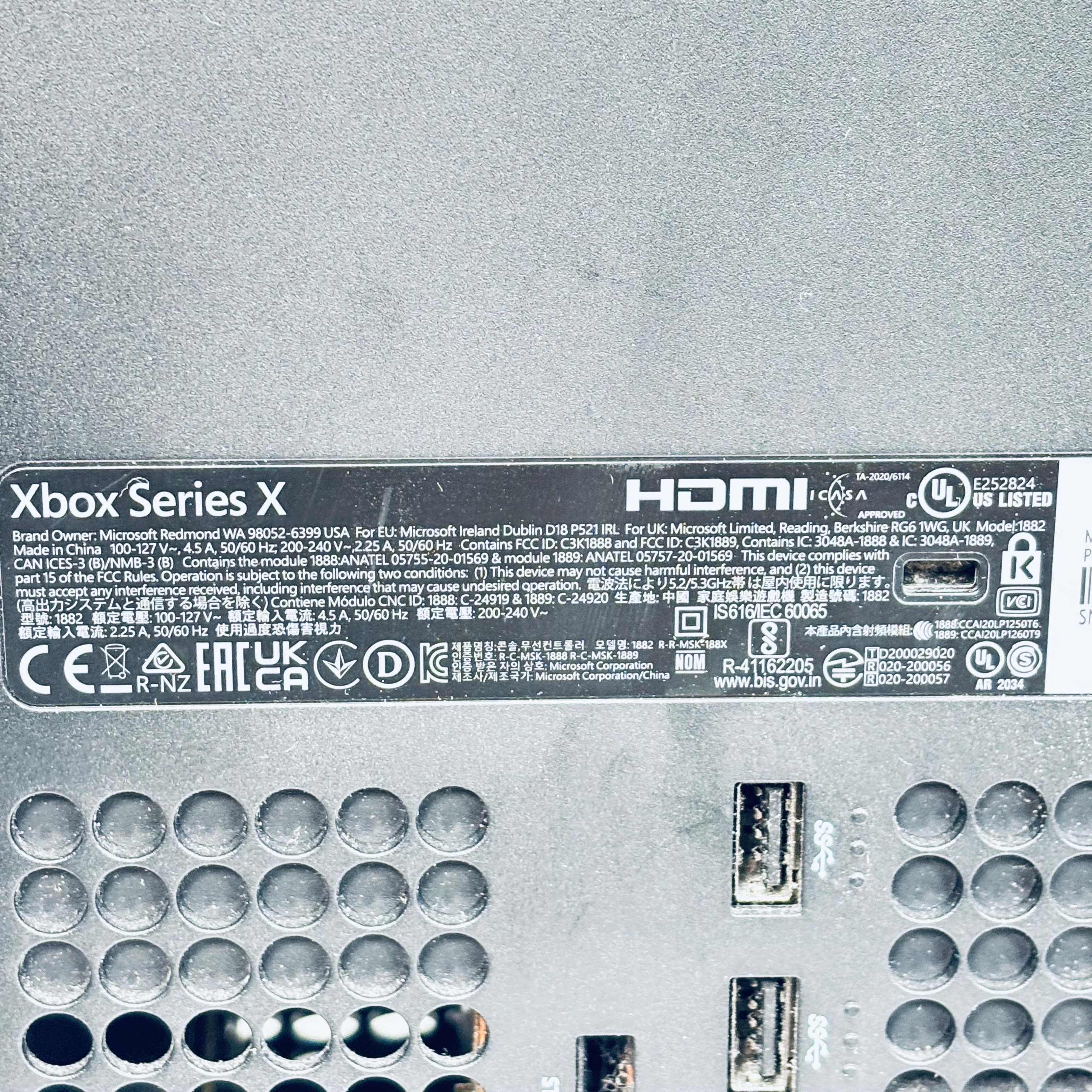 Microsoft Xbox Series X Model 1882 is a high-performance video game console designed for immersive 4K gaming experiences. This console features multiple USB 3.1 ports, Ethernet connectivity, and supports proprietary external storage expansion for additional game storage. Included in the set is the Xbox Wireless Controller, power cable, and HDMI cable, making it ready for immediate setup. With its sleek black design and powerful hardware, the Xbox Series X is ideal for gamers seeking top-tier performance and expansive game libraries.