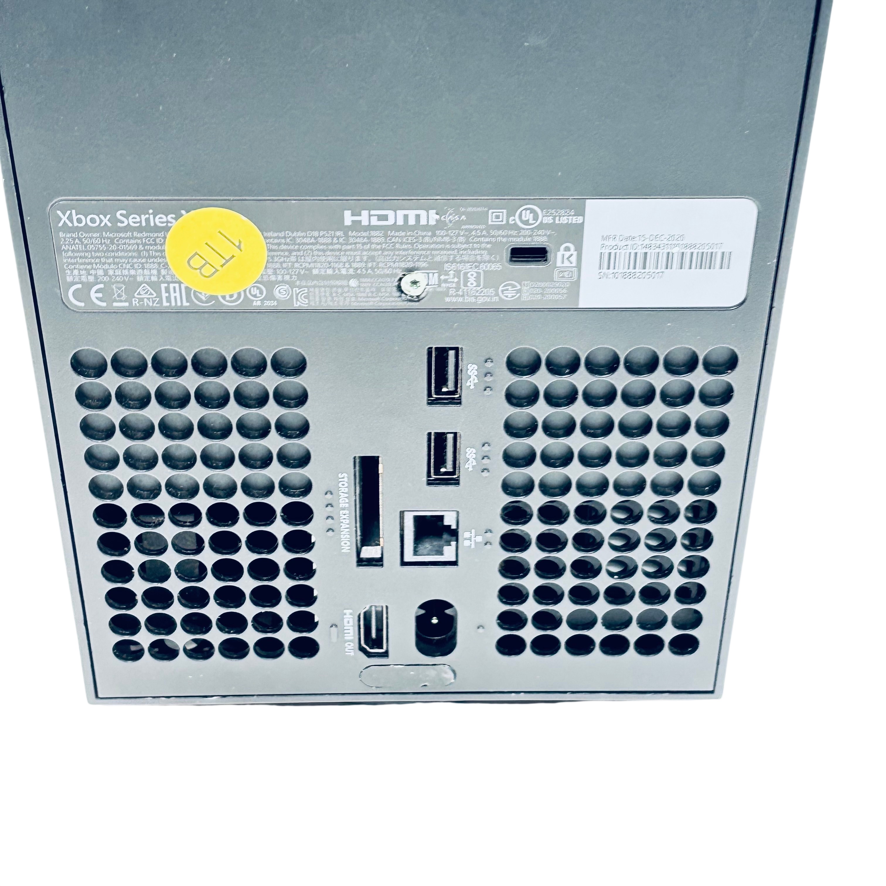 Microsoft Xbox Series X 1TB Video Game Console (Model 1882) delivers next-generation gaming performance with its powerful hardware and ultra-fast SSD storage. This black console supports 4K Ultra HD gaming and backward compatibility with thousands of Xbox One and Xbox 360 games. Included is a wireless controller and power cable, making it ready for immersive gaming right out of the box. Its compact tower design measures approximately 6 x 6 x 12 inches and weighs about 9.8 pounds, fitting well into most entertainment setups.