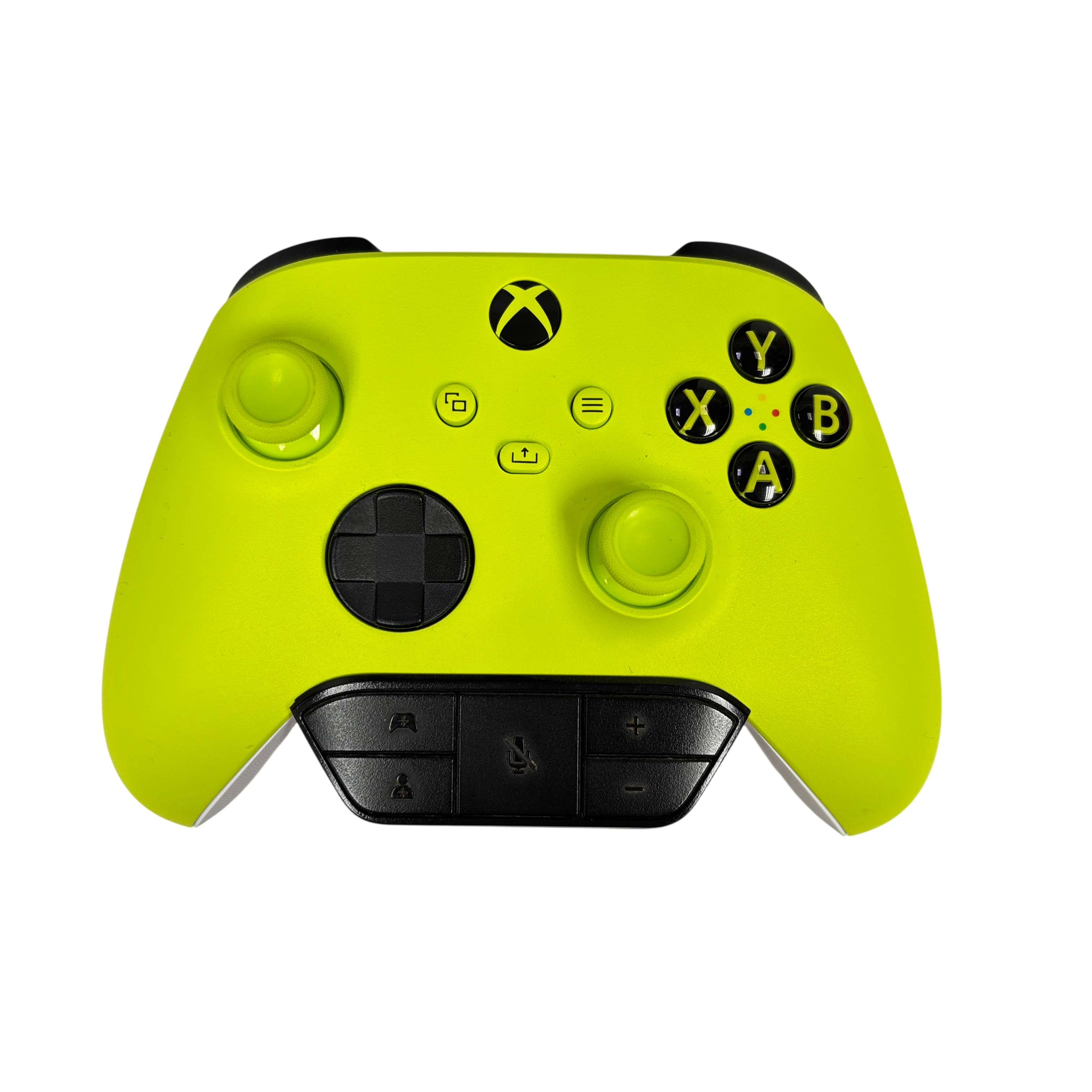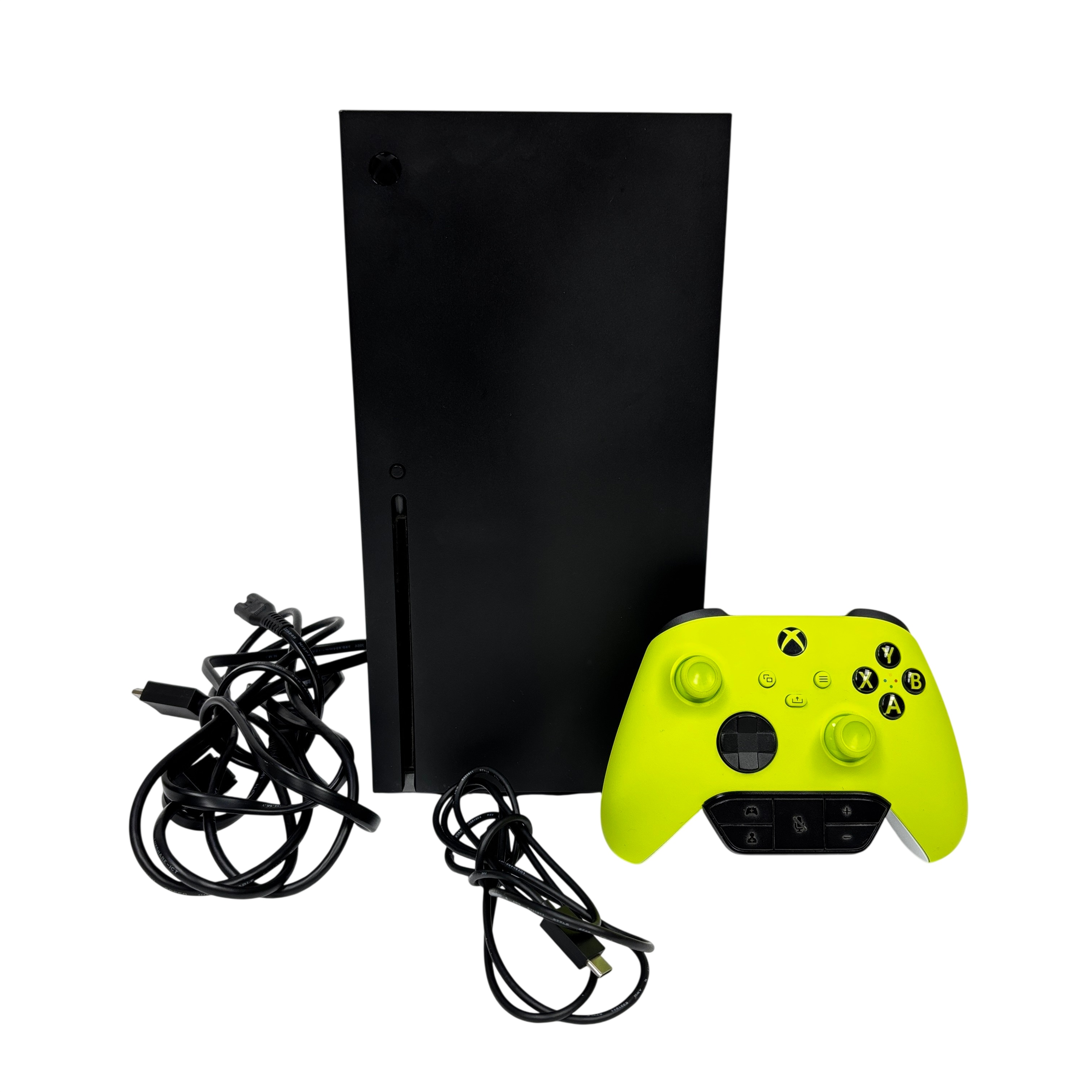 This Microsoft Xbox Series X Model 1882 is a powerful next-generation video game console designed for immersive 4K gaming experiences. This set includes the sleek black Xbox Series X console along with a vibrant neon yellow Xbox Wireless Controller, providing excellent control and comfort. The console supports HDMI output and requires 4.5A power at 200-240V, making it compatible with most home entertainment setups. Ideal for gamers looking to enjoy the latest titles with fast load times and stunning graphics.