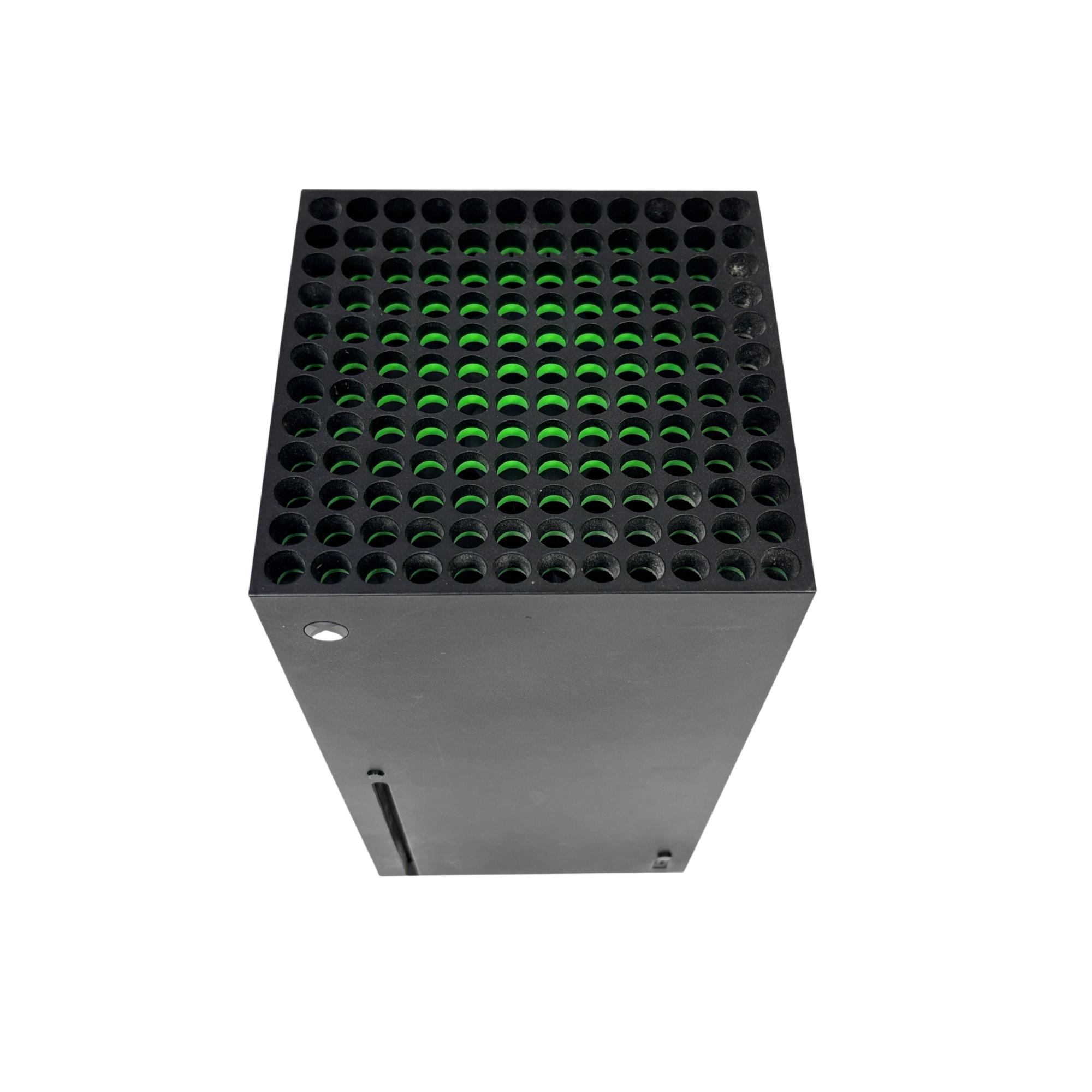 This Microsoft Xbox Series X delivers next-generation gaming performance with ultra-fast 1TB SSD storage and 4K resolution support. This sleek black console is designed for immersive gameplay and is paired with a vibrant Volt Electric Green wireless controller featuring ergonomic design for enhanced control.