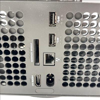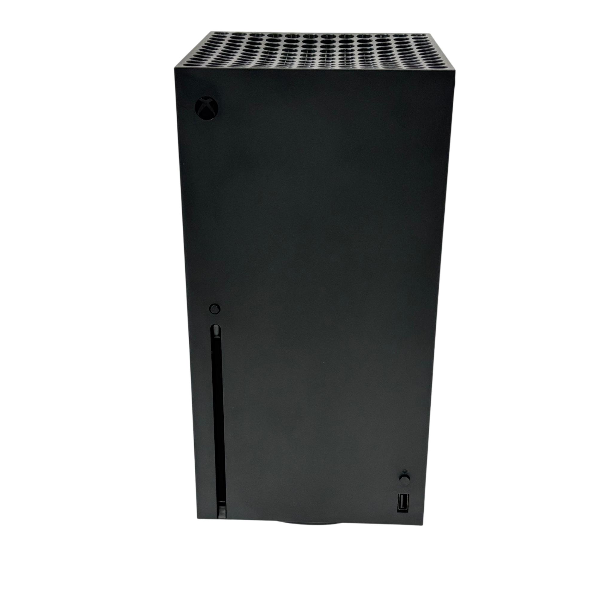 Microsoft Xbox Series X delivers powerful performance with advanced graphics capabilities and fast load times, optimized for immersive gaming experiences. Featuring a sleek black design with ventilation holes and convenient button placement, it supports 4K resolution at up to 120 frames per second and comes equipped with an SSD for enhanced speed and responsiveness.