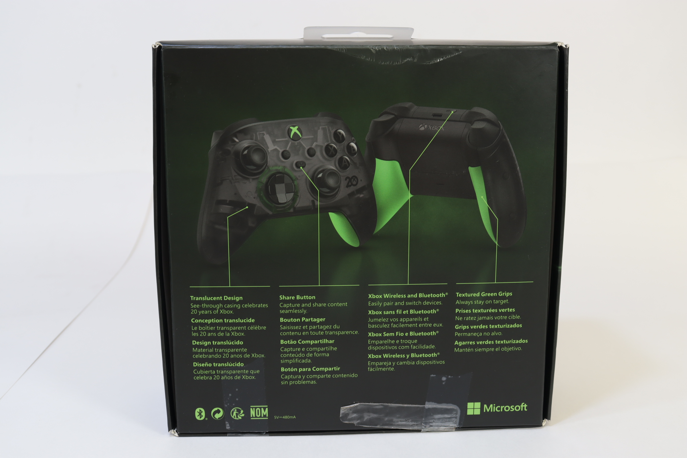 Celebrate 20 years of Xbox with the Xbox Wireless Controller – 20th Anniversary Special Edition in classic black with green touches that go back to the beginning, and so much more. Travel through time with the green and translucent black controller colors to the moment the original, translucent green Xbox console launched. Look through the translucent black top to see interior silver details representing 20 years of Xbox technology carried forward. Harkening back to when the first green X burst through a black field—the iconic, green Xbox button, D-pad highlights, and back grips celebrate the beginning while looking forward.