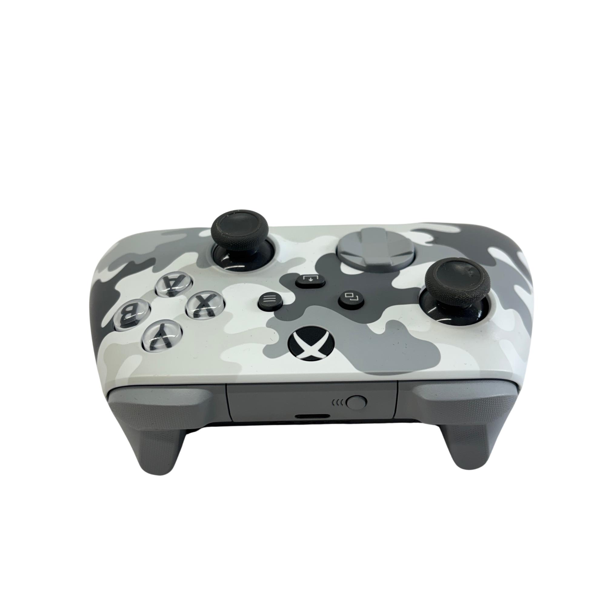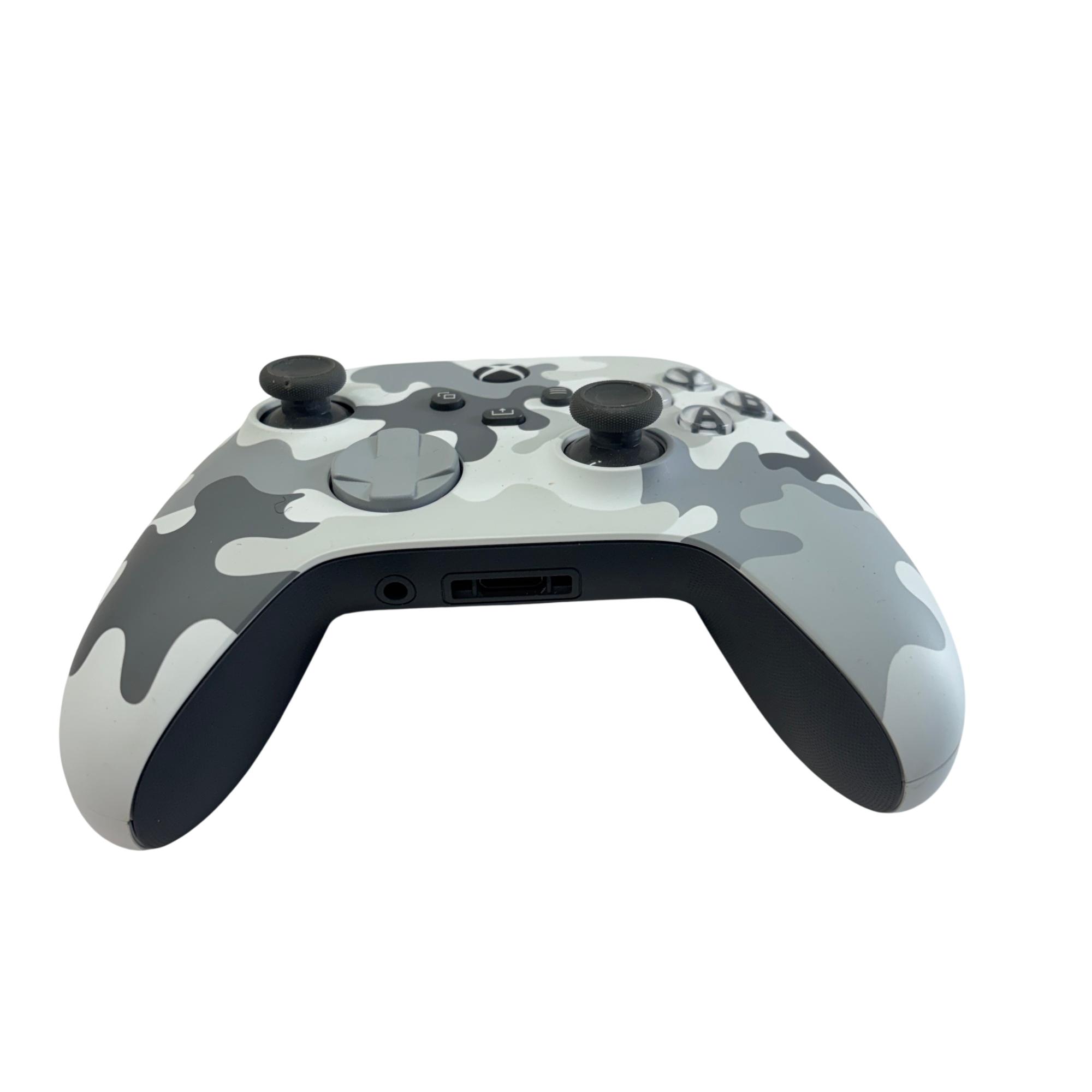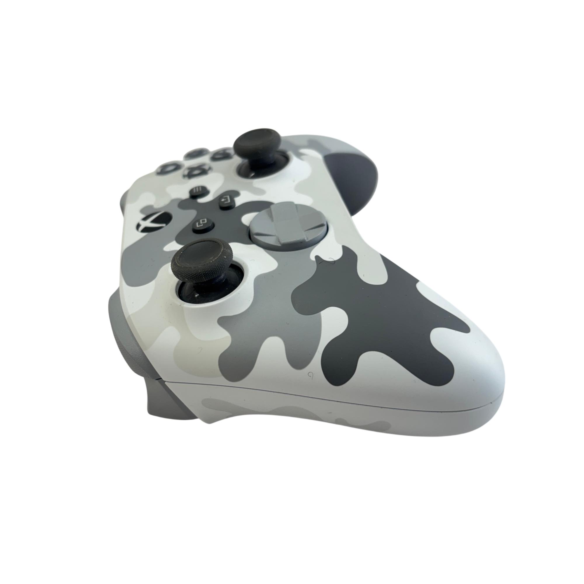 Microsoft Xbox Wireless Controller - Arctic Camo Special Edition features a distinctive white and grey camouflage design that enhances grip and style during gameplay. This wireless controller offers precise button responsiveness and a comfortable ergonomic shape, making it ideal for extended gaming sessions on Xbox consoles.