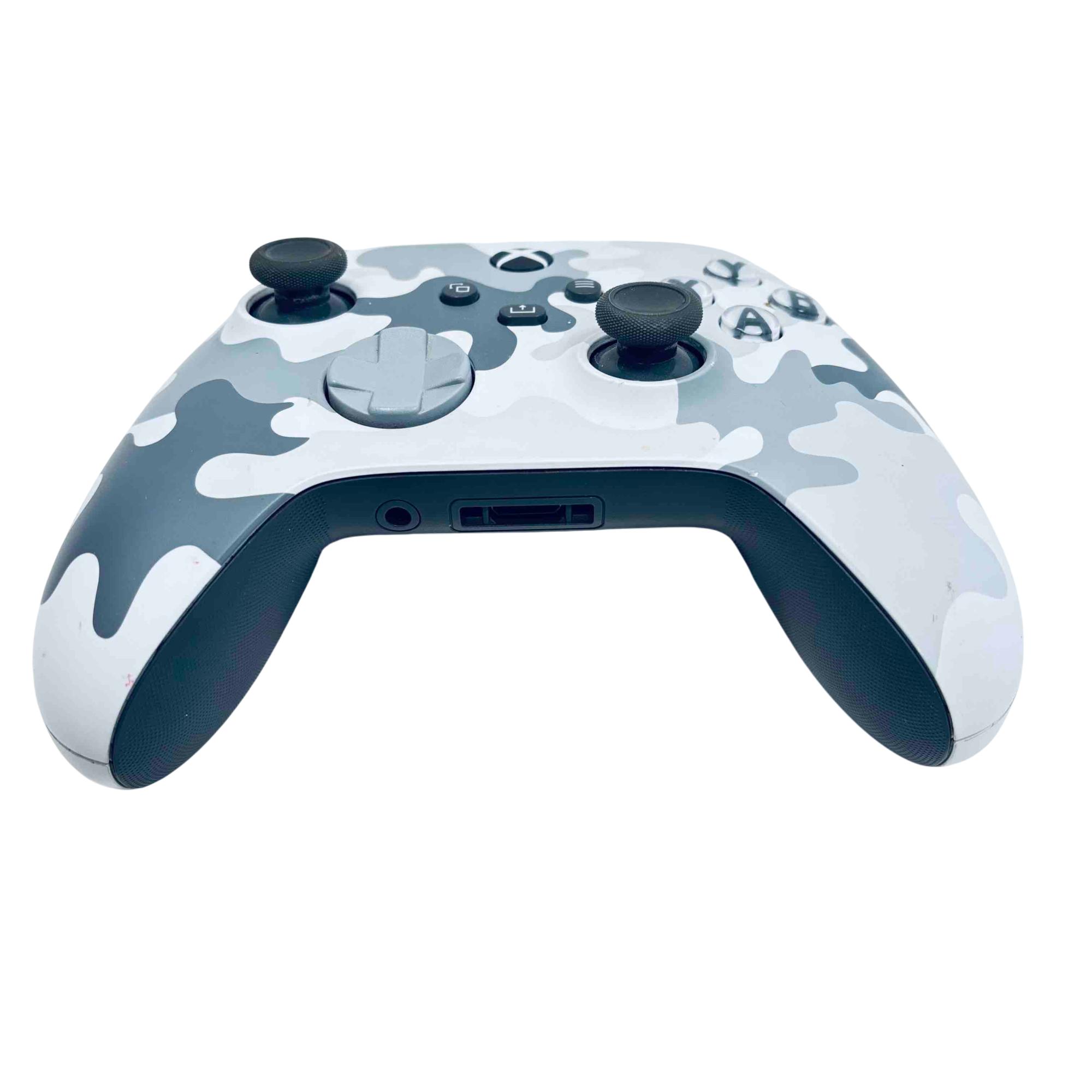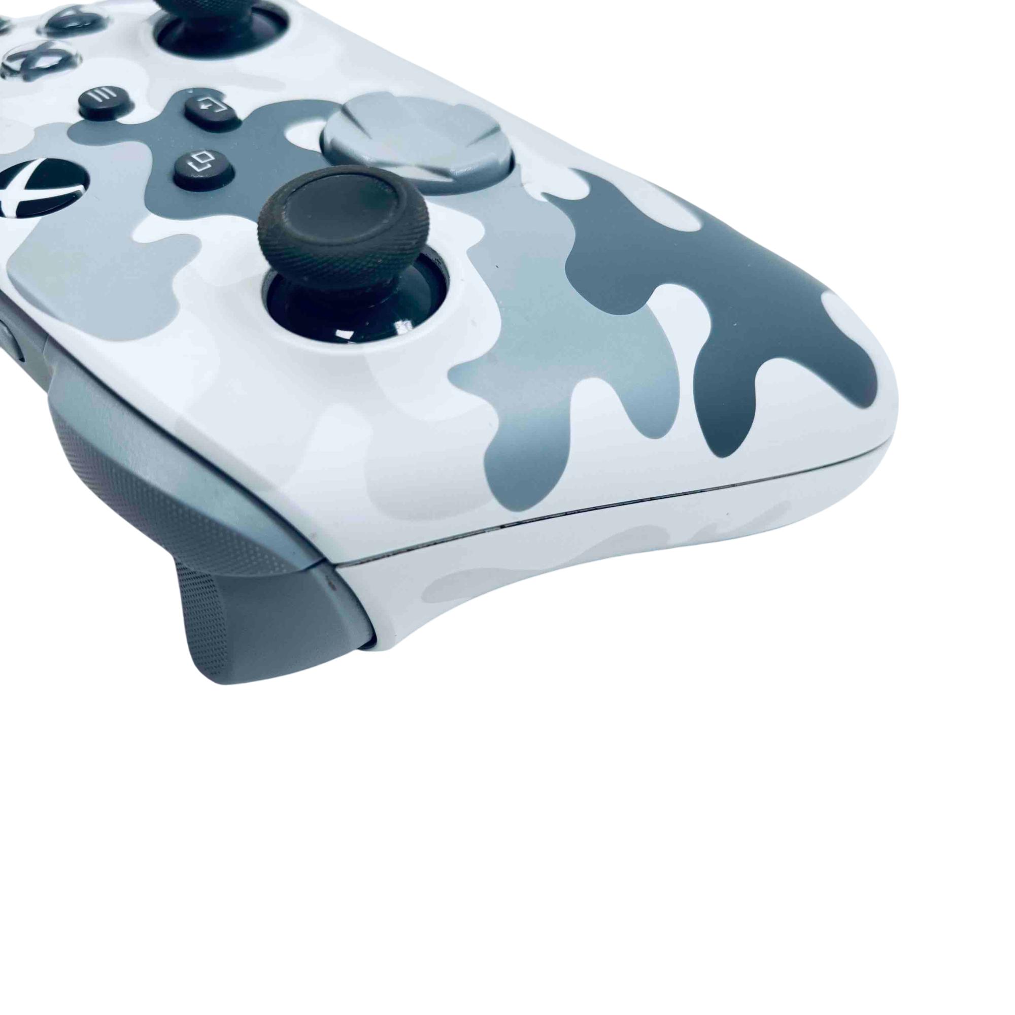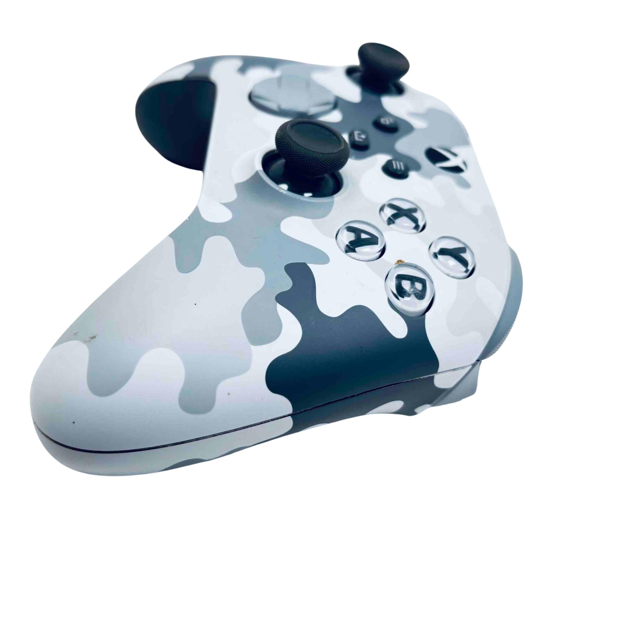 Microsoft Xbox Wireless Controller - Arctic Camo Special Edition (Model 1914) features advanced wireless technology delivering seamless connectivity and precise control for Xbox One and PC gaming. Designed with a distinctive Arctic Camo finish, this ergonomic controller offers responsive buttons, textured grips, and a USB-C port for charging and connectivity.