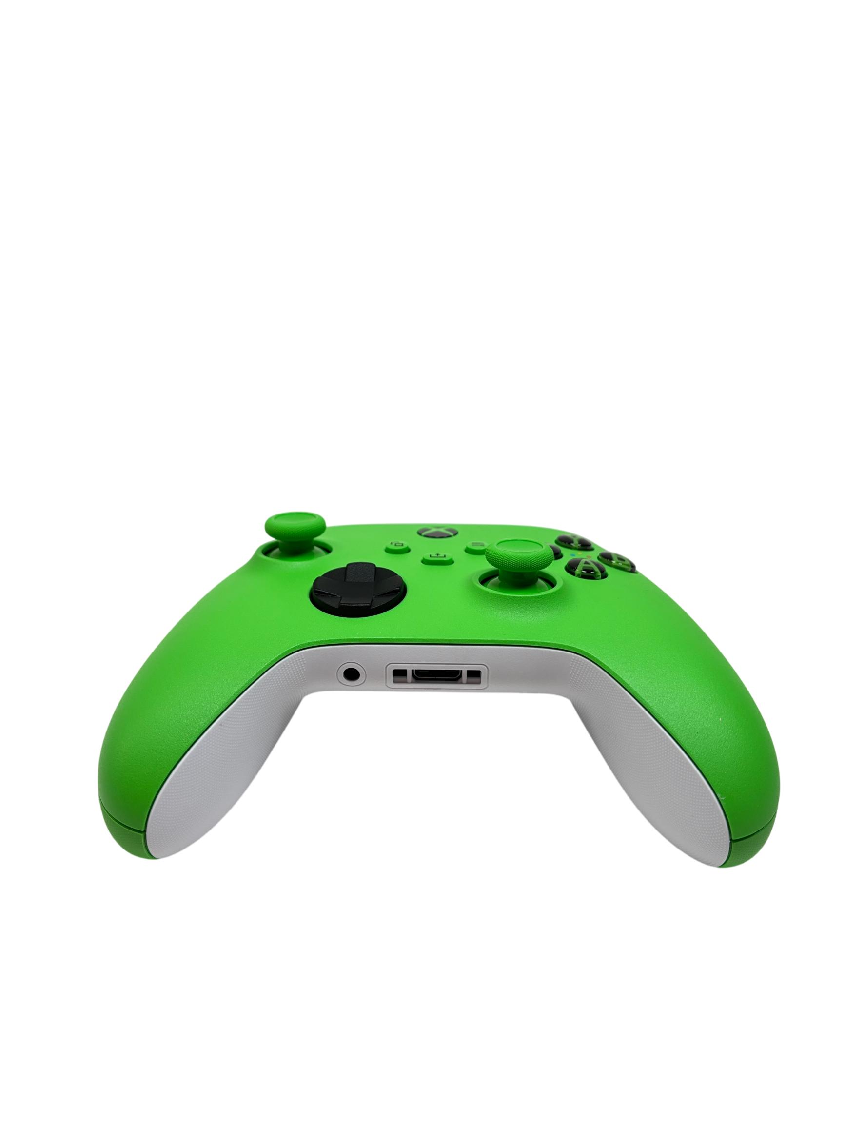 Microsoft Xbox Wireless Controller – Velocity Green (Model 1914, Xbox Series X/S Compatible) features a sleek green and white design optimized for comfortable gaming sessions. This wireless controller includes responsive A, B, X, and Y buttons along with a precision joystick and ergonomic grips, making it ideal for both casual and competitive gameplay on Xbox Series X and S consoles. Its vibrant Velocity Green finish adds a unique style while maintaining seamless compatibility with Xbox and PC platforms.