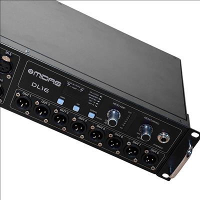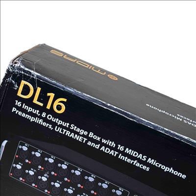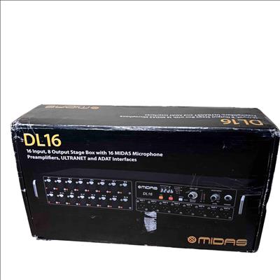 The Midas DL16 Digital Stage Box is a professional-grade audio interface featuring 16 award-winning MIDAS microphone preamplifiers and 8 analog XLR outputs. Designed for seamless integration with digital mixing consoles, the DL16 offers high-quality sound, robust build, and flexible connectivity with Ultranet and ADAT interfaces. Perfect for live sound engineers and studio professionals seeking superior audio clarity and reliability.