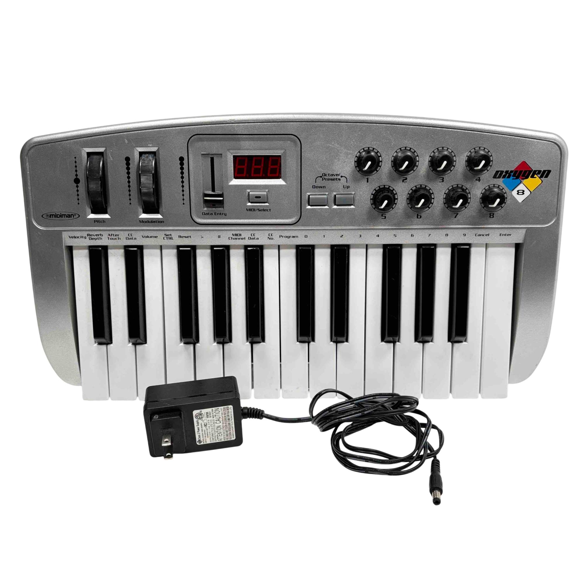 Discover the Midiman Oxygen 8, a versatile 25-key MIDI keyboard controller perfect for music producers of all levels. Packed with customizable knobs and sliders, this compact yet powerful controller offers unparalleled control over your software instruments, making it a must-have tool for creating captivating melodies and beats.